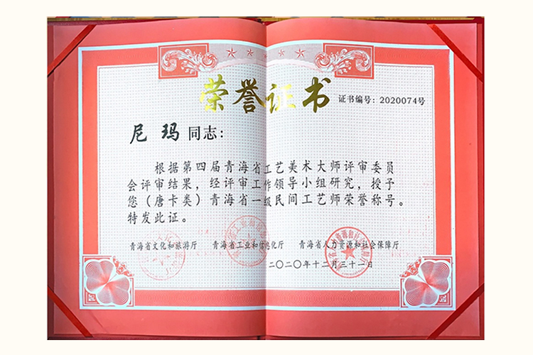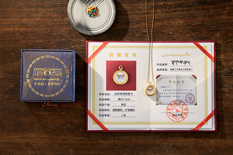 每一件都有相对应唐卡画师的珍藏证书,证书统一由青海藏文化博物院盖章认证。