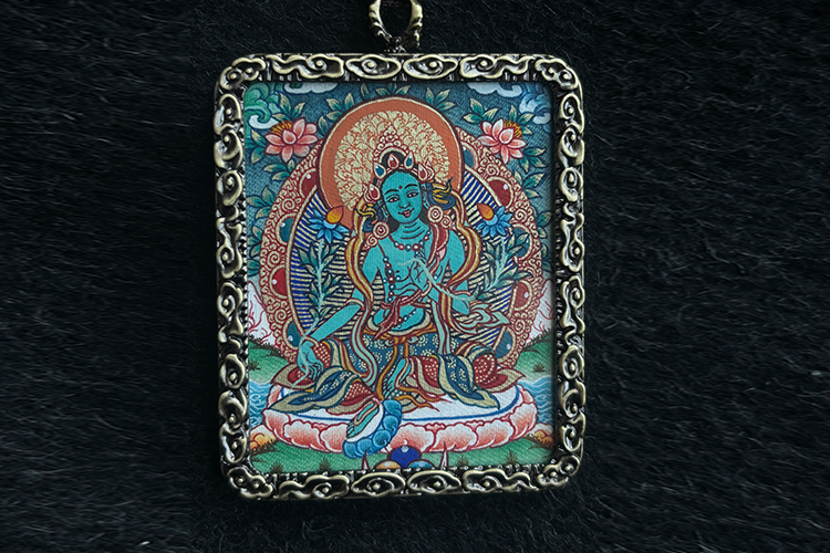 以蓝色为本尊色,在藏文化里代表蓝天,寓意光明透彻、清净无染,非常舒圣,很适合给家中长辈恭请。