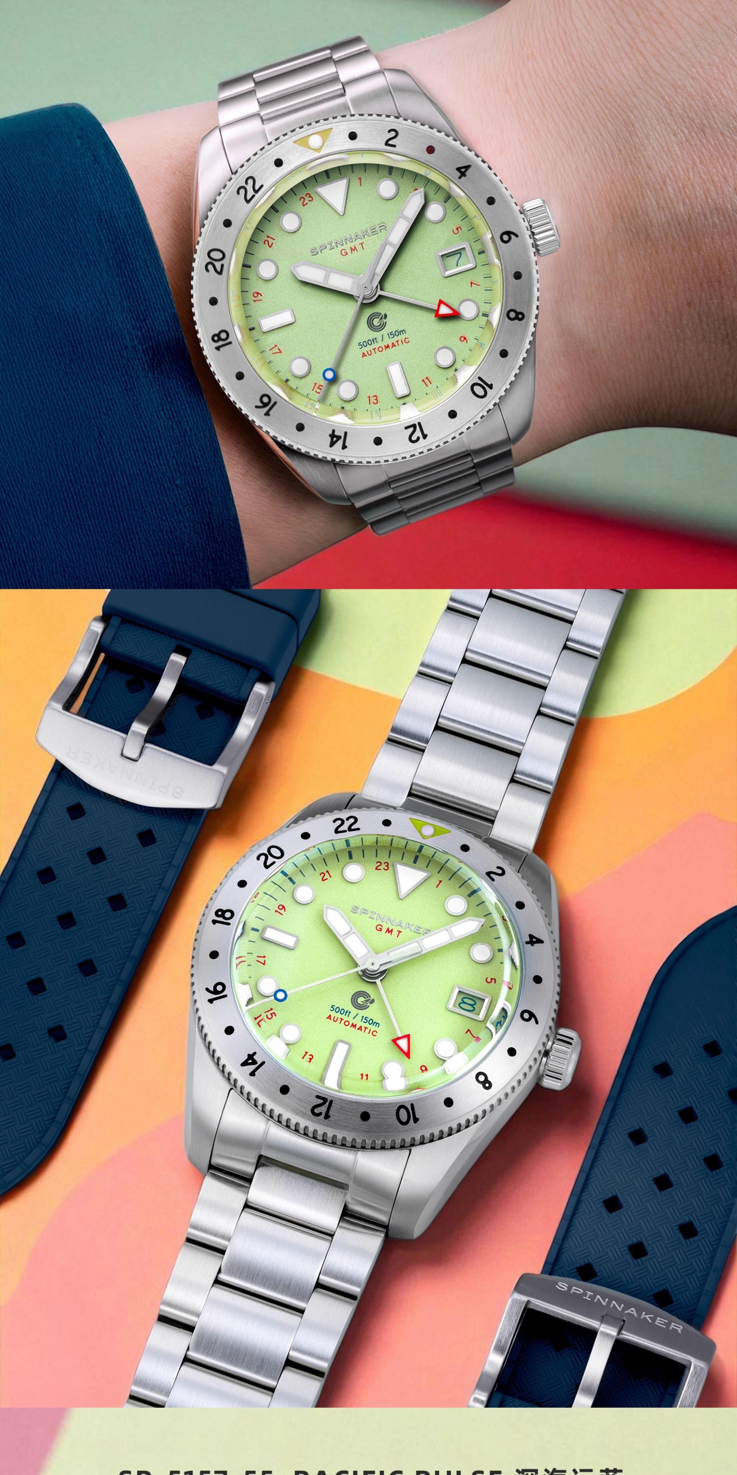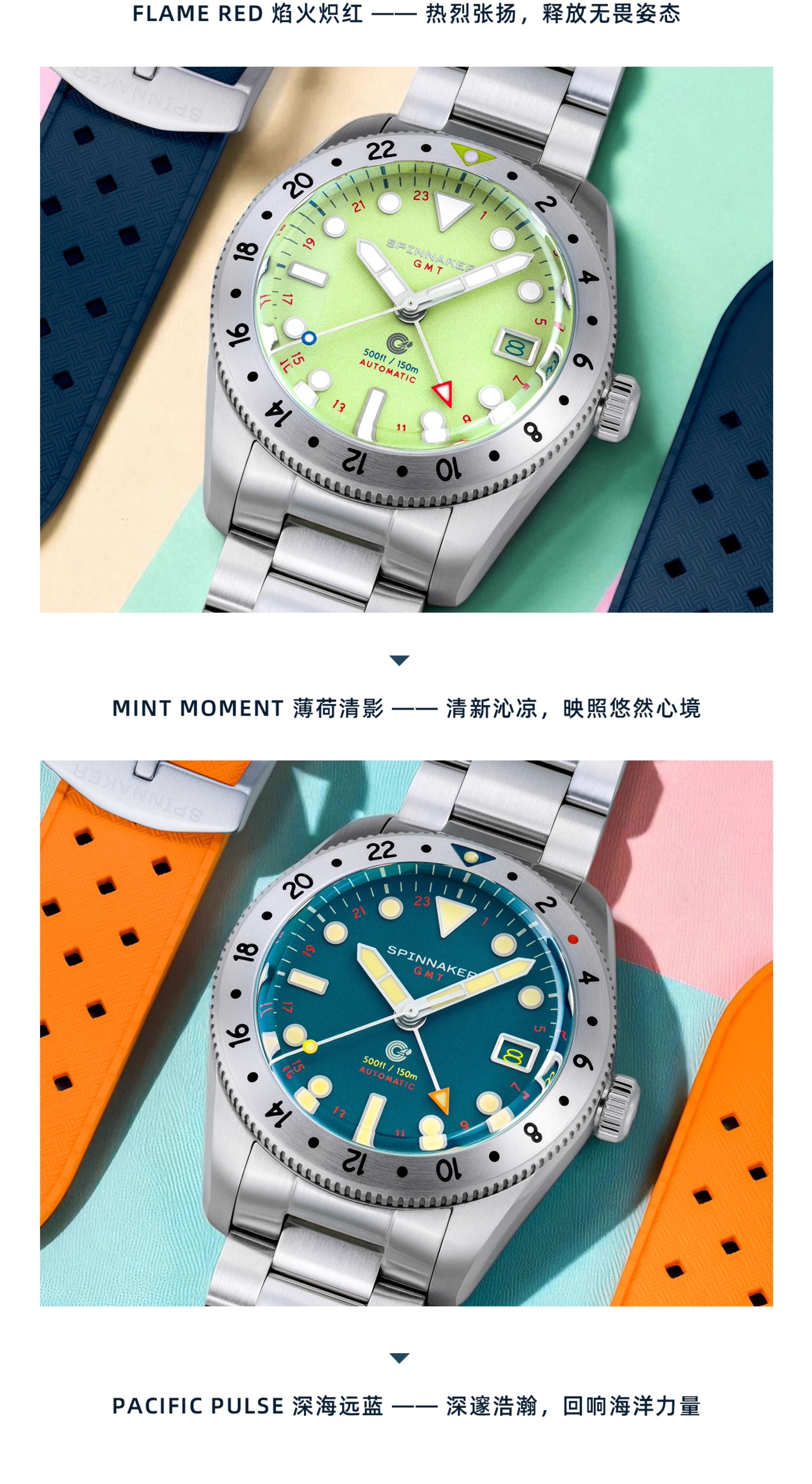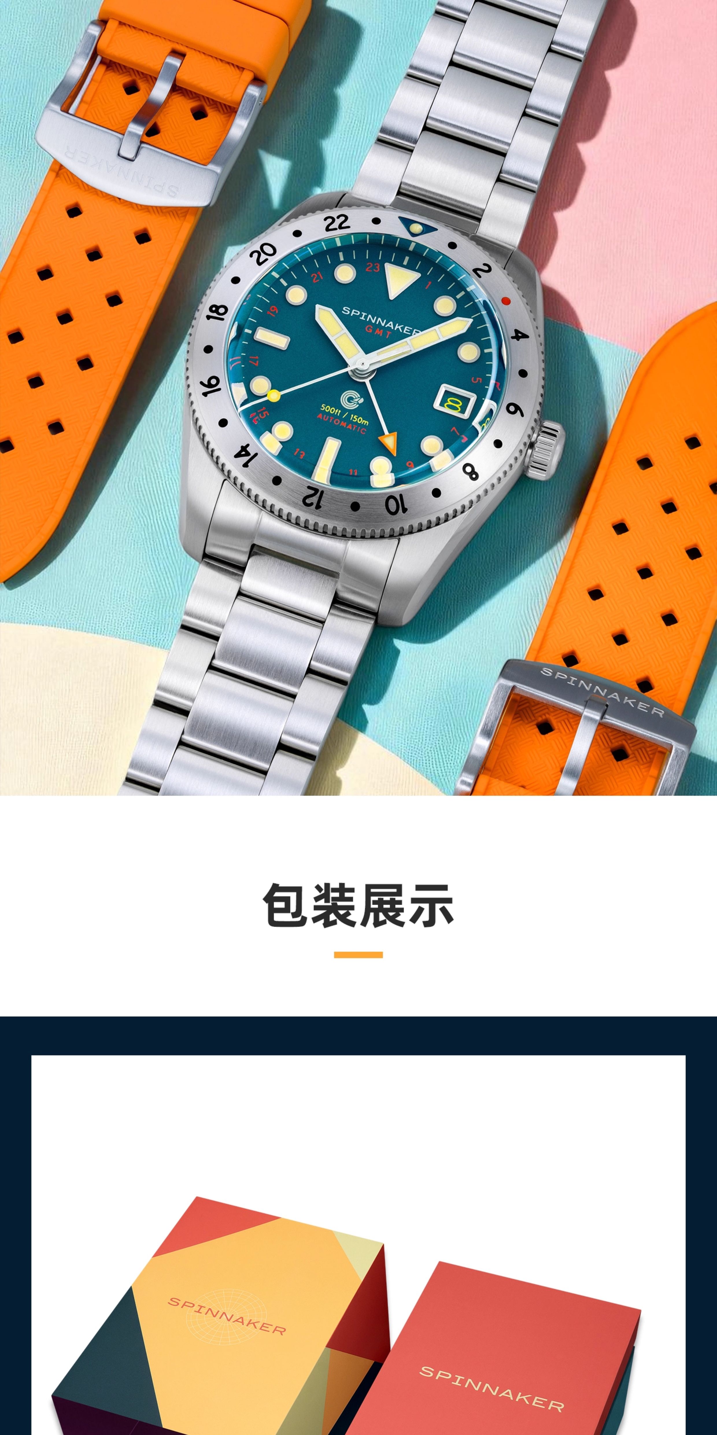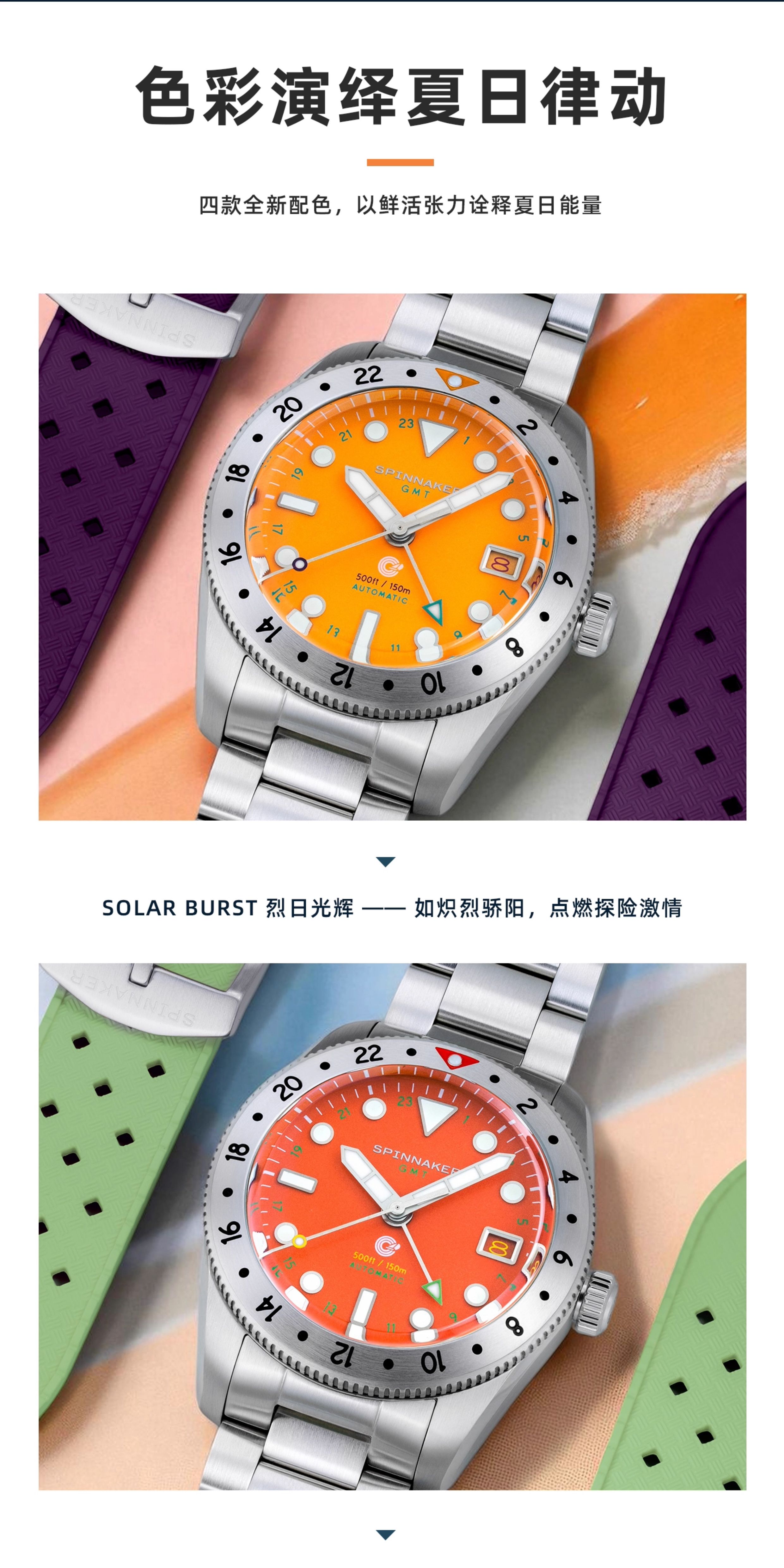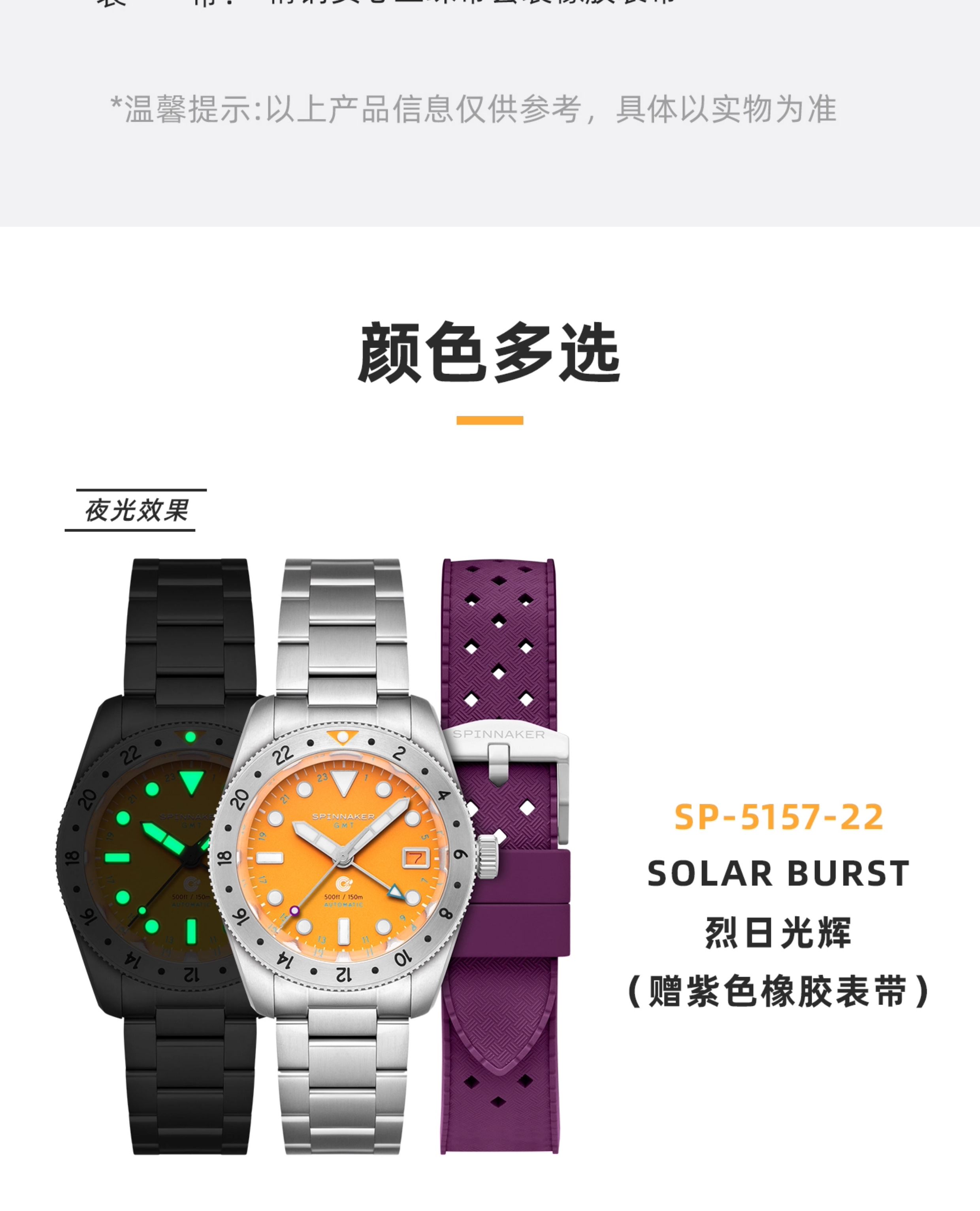 SPINNAKER三角帆39毫米复古GMT两地时自动机械手表5157夜光防水