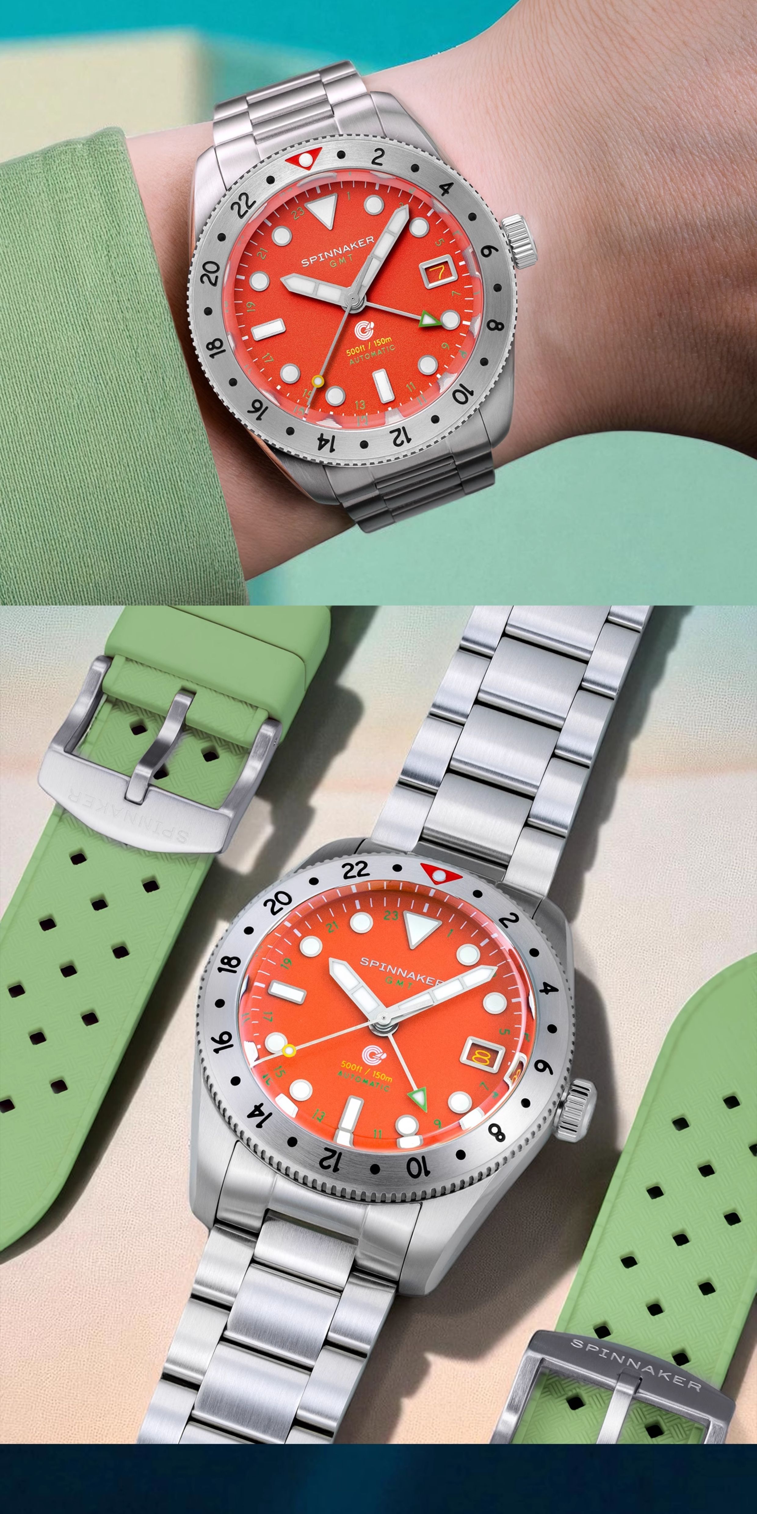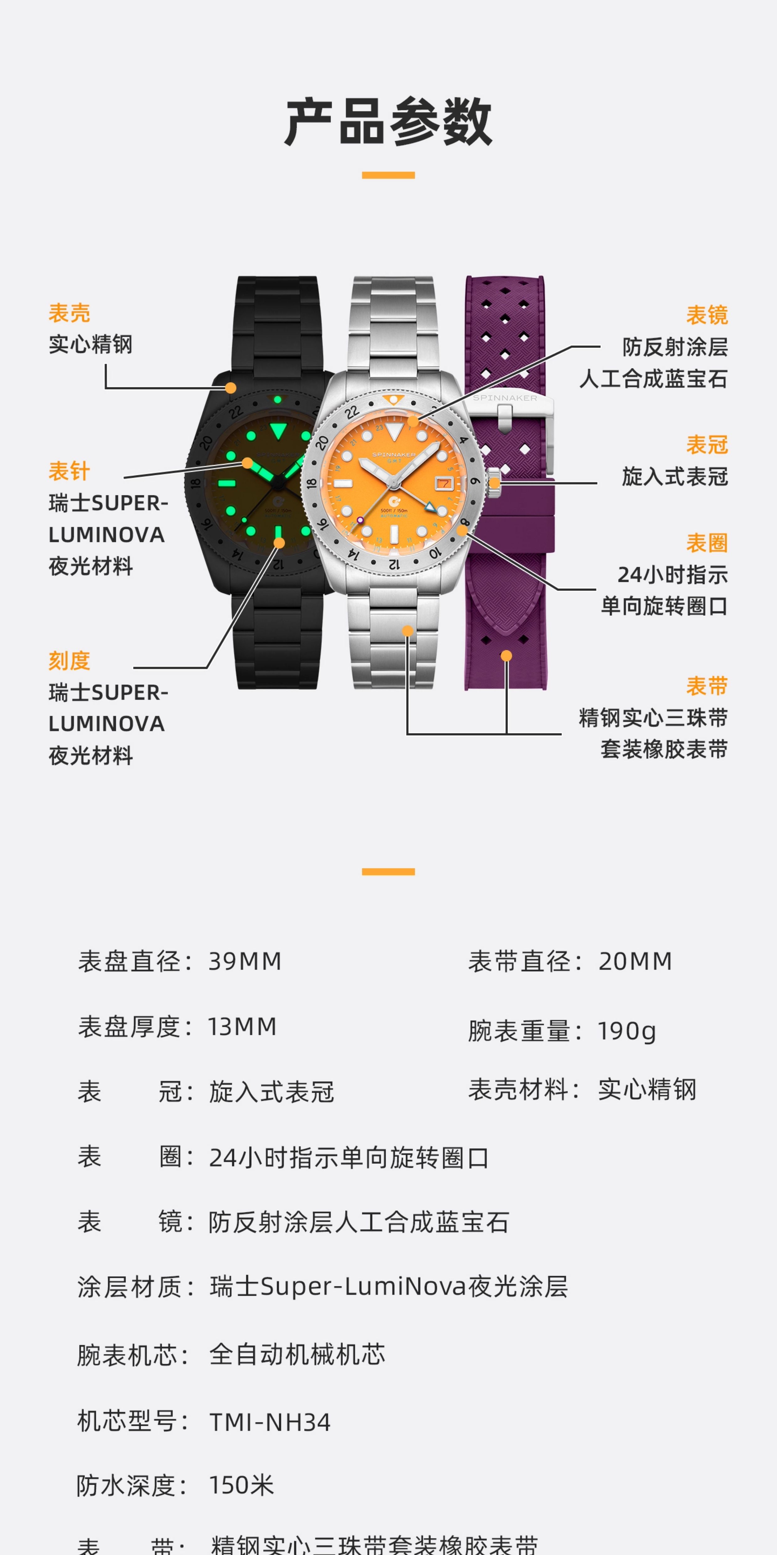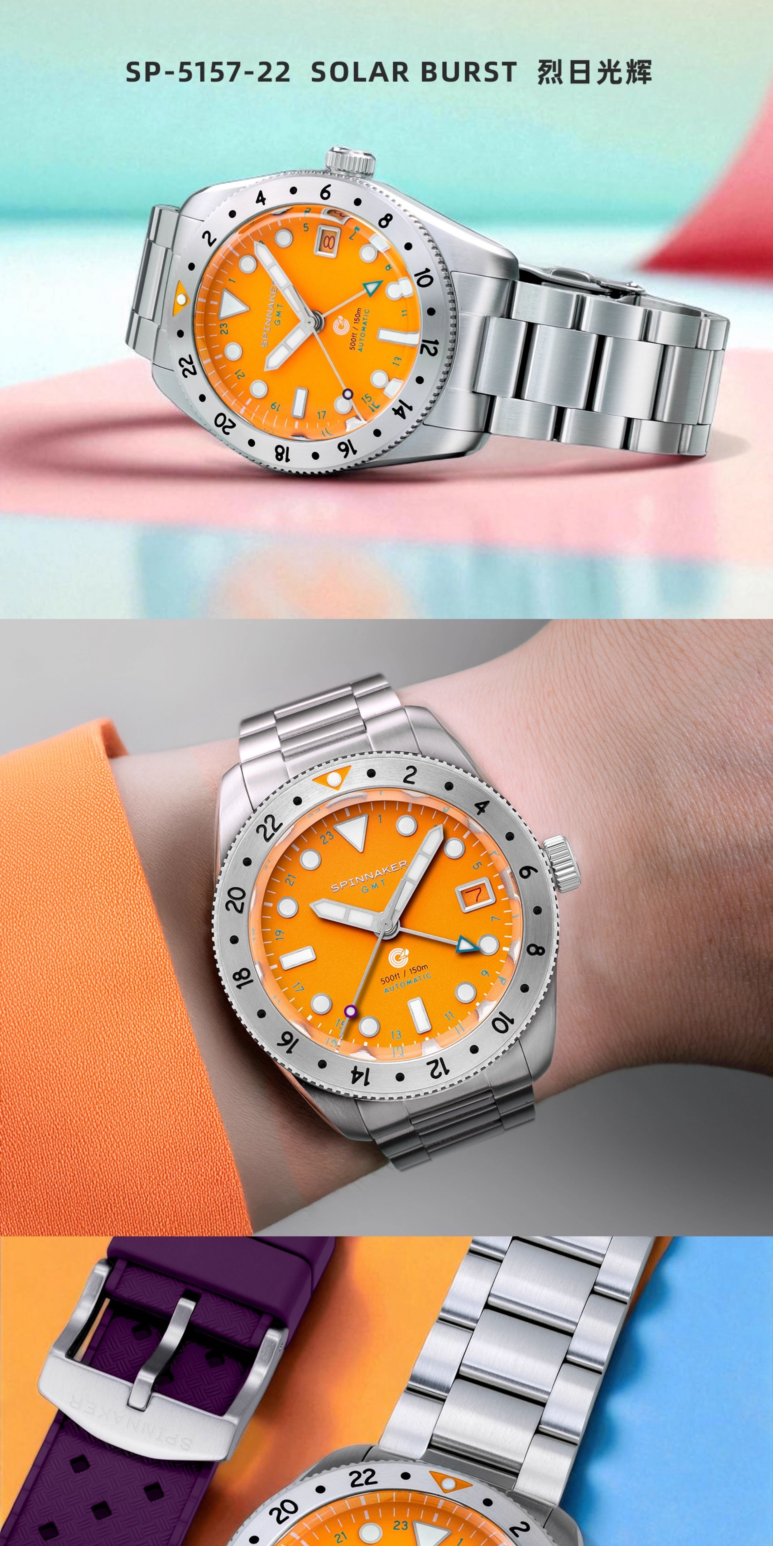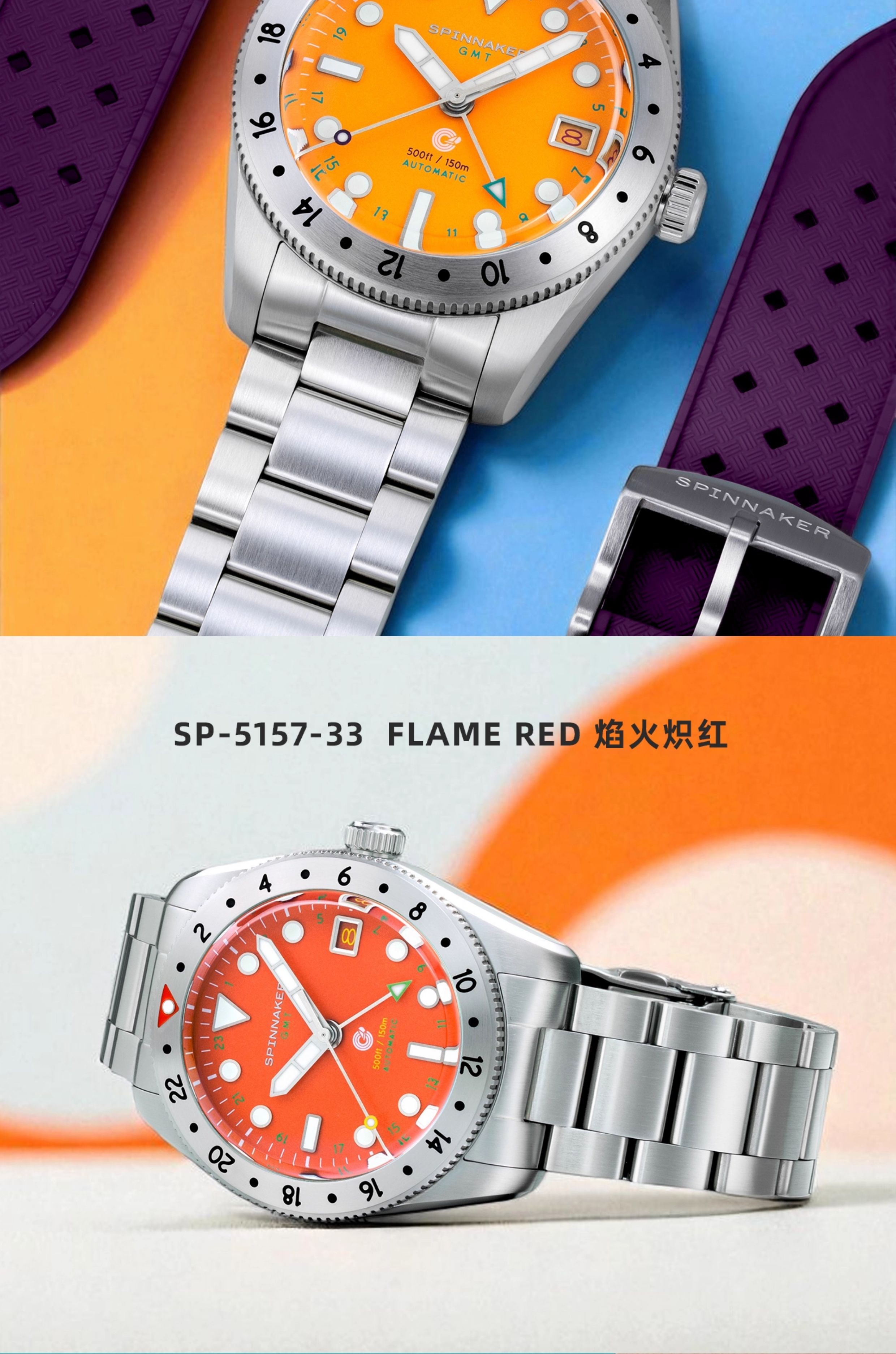 SPINNAKER三角帆39毫米复古GMT两地时自动机械手表5157夜光防水