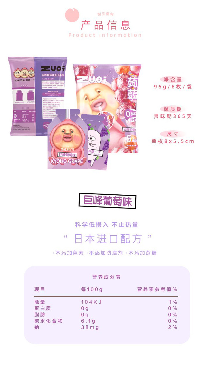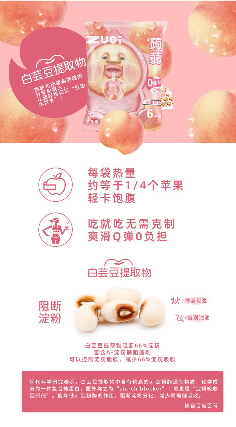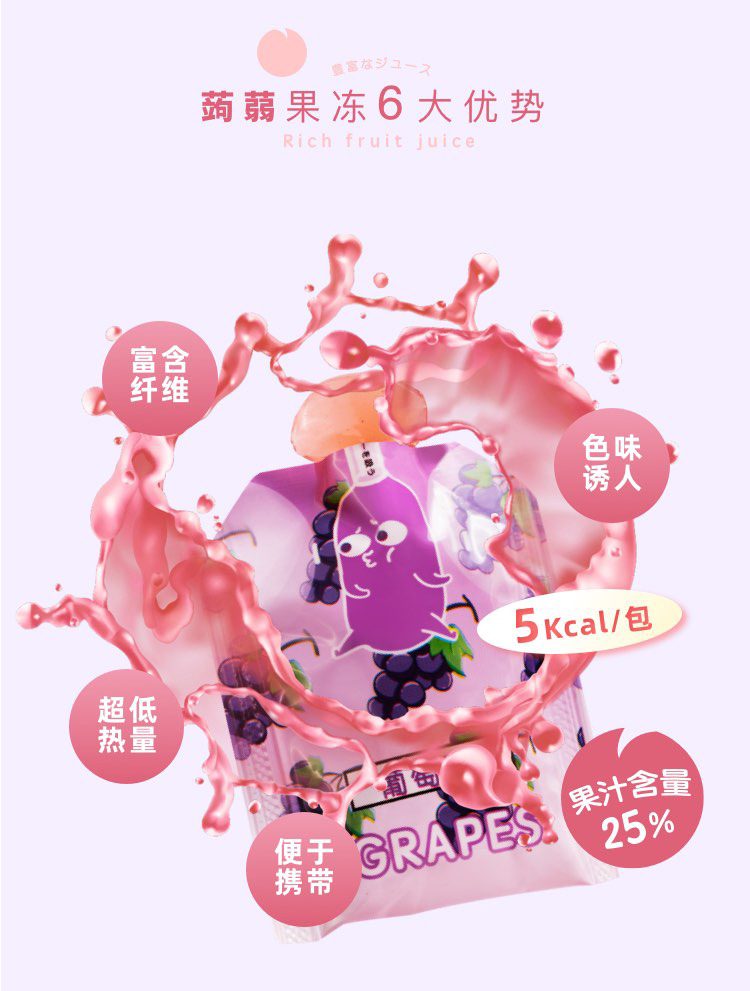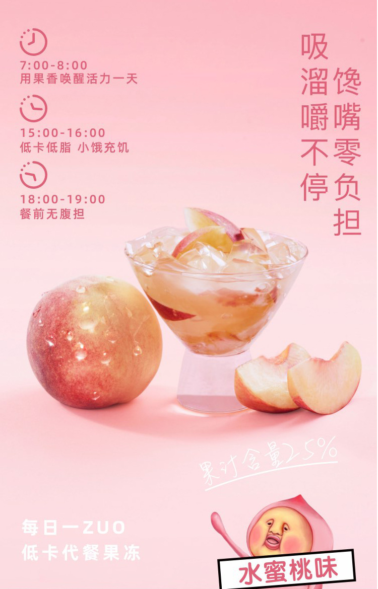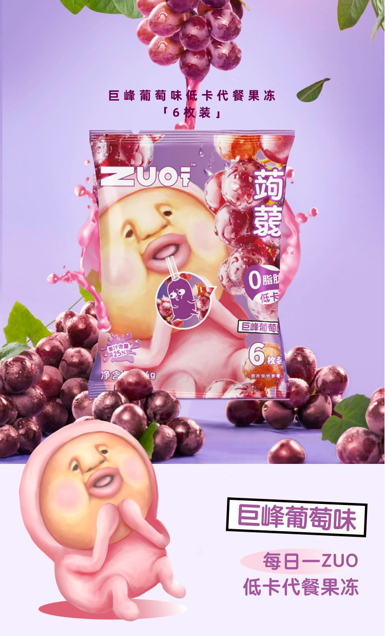 zuo一下屁桃蒟蒻网红0脂低卡果汁果冻6枚樱花荔枝口味96g