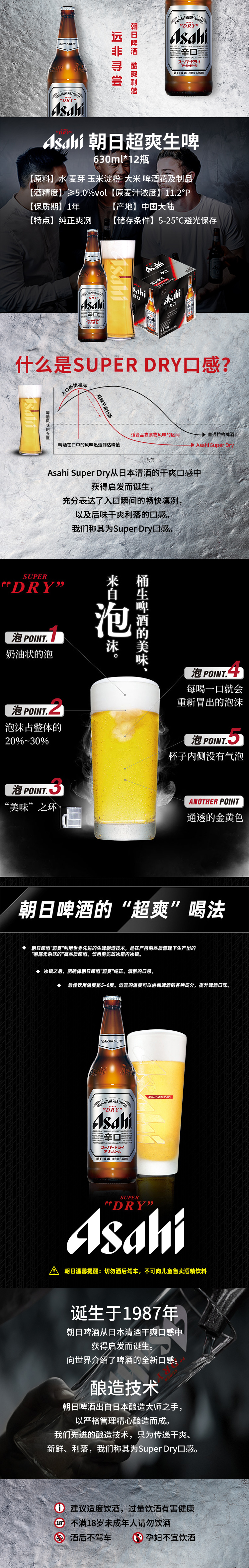 Asahi/朝日啤酒超爽系列630mlx6瓶 生啤酒鲜啤酒 新老包装随机发