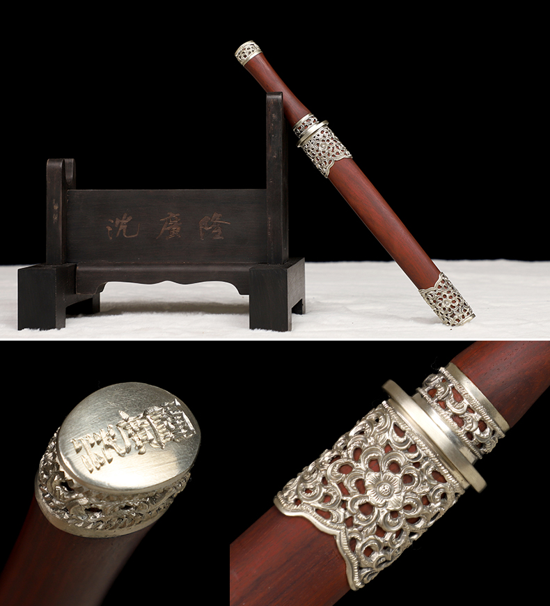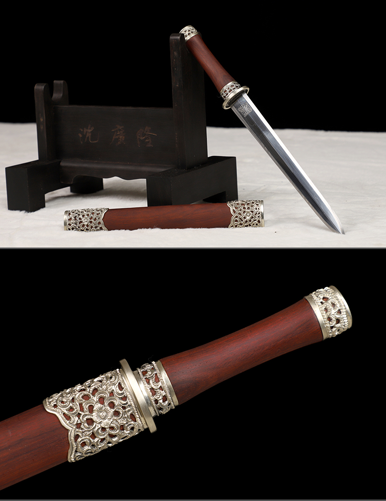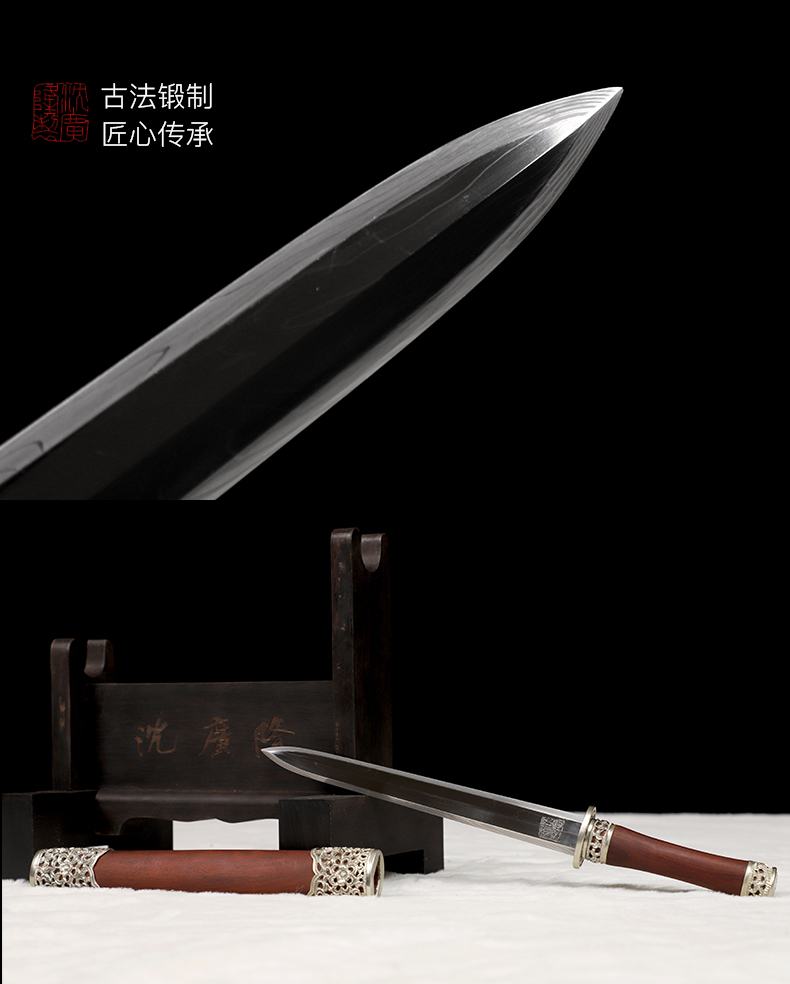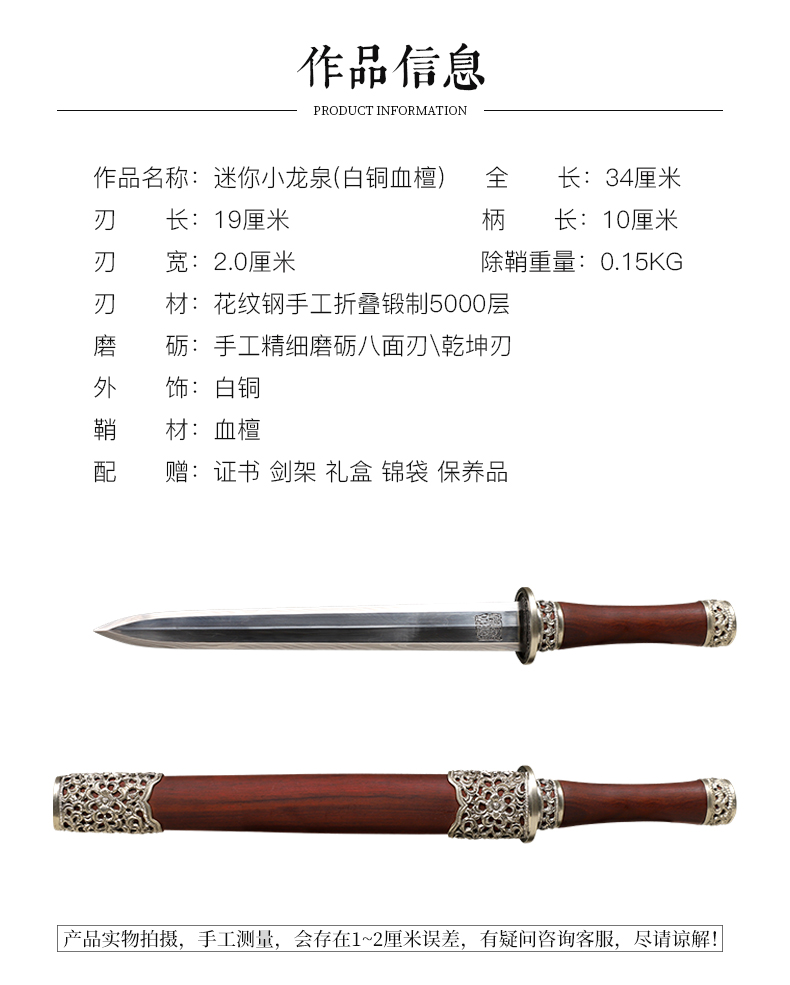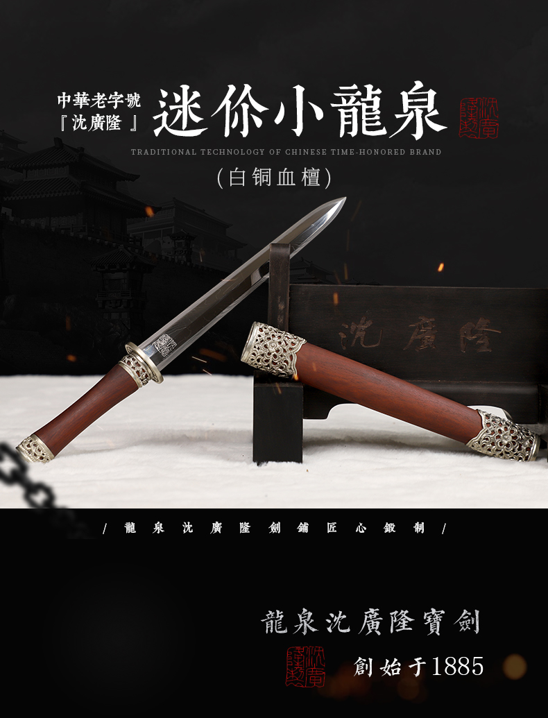 迷你小龙泉白铜血檀 花纹钢短剑 龙泉沈广隆宝剑 未开刃