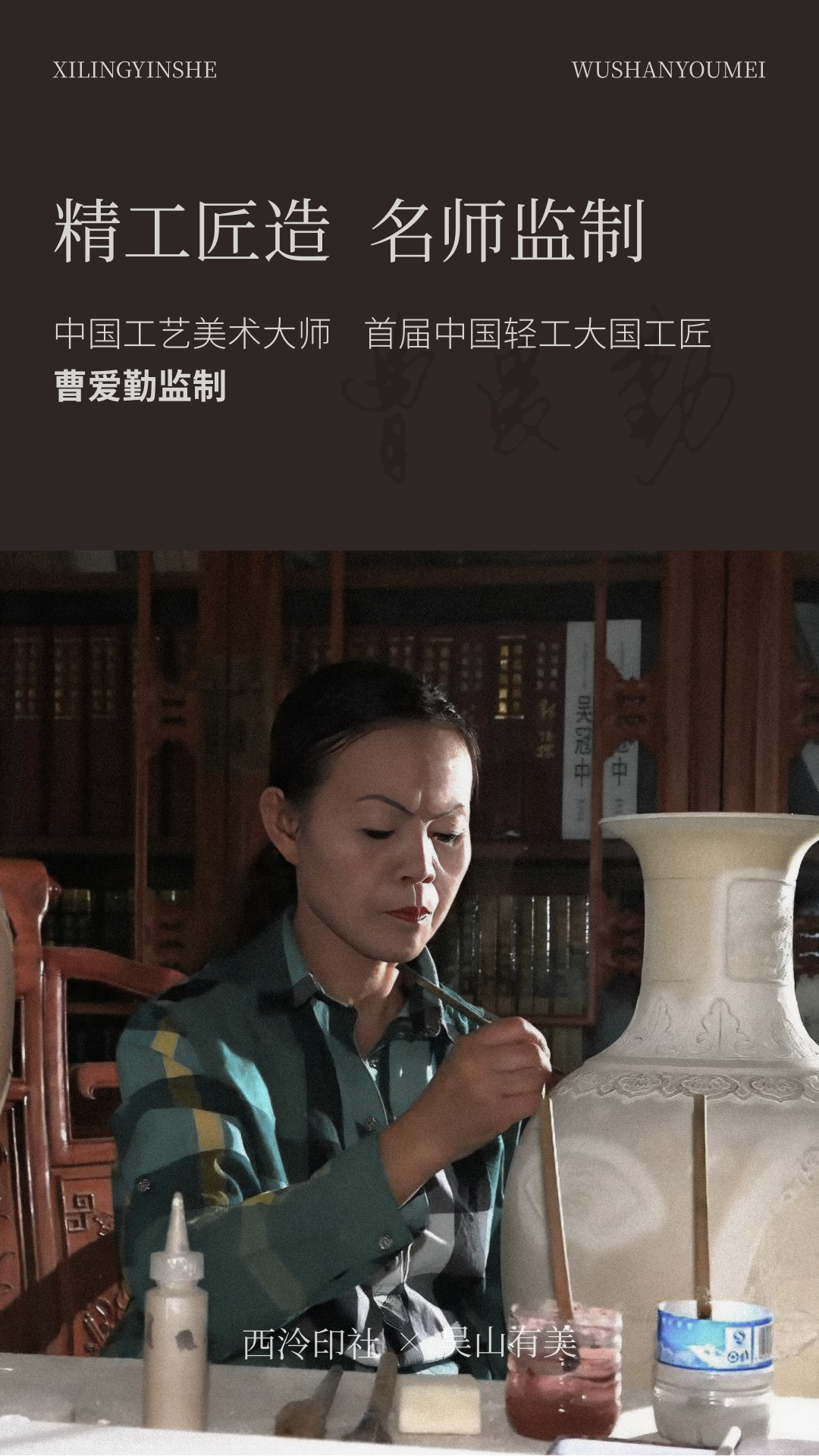 阴刻工艺,创新传承: 阴刻是通过手工刻除陶瓷胚体表面的部分材质来塑造凹陷效果。画面立体生动,将传统技艺与现代审美完美结合。