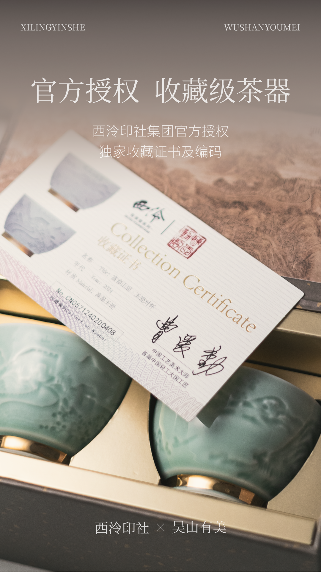 独立编码,收藏价值: 每套对杯均附有大师授权独立编码收藏证书,限量发售,极具收藏价值。