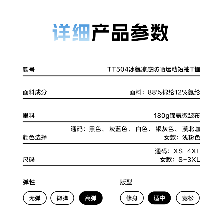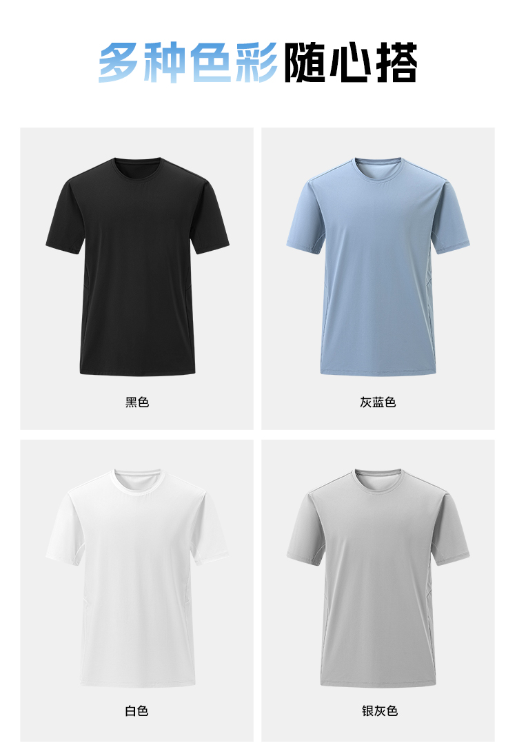 【冰氨凉感防晒运动短袖T恤】男女款圆领短袖T恤弹力休闲半袖上衣TT504