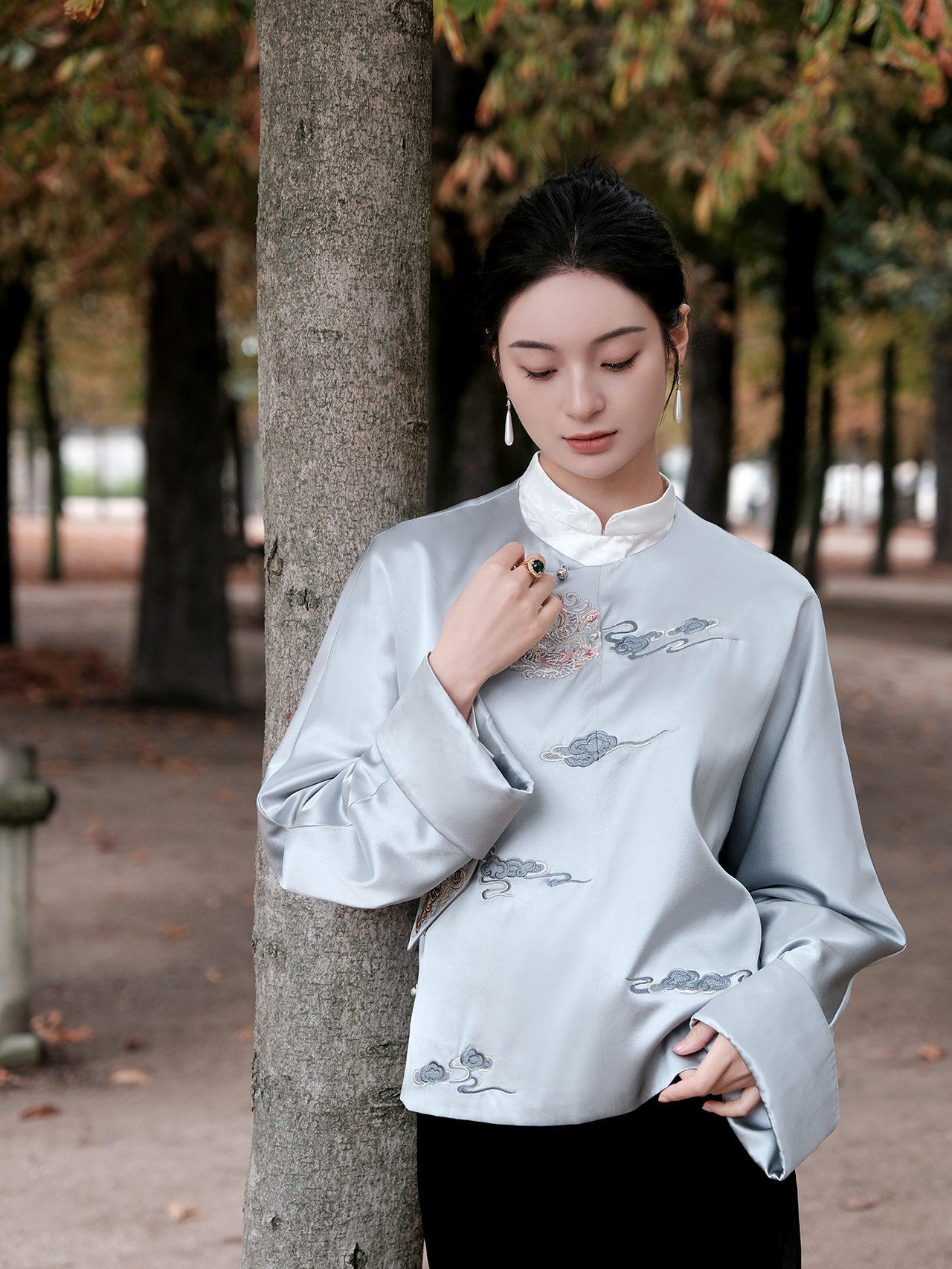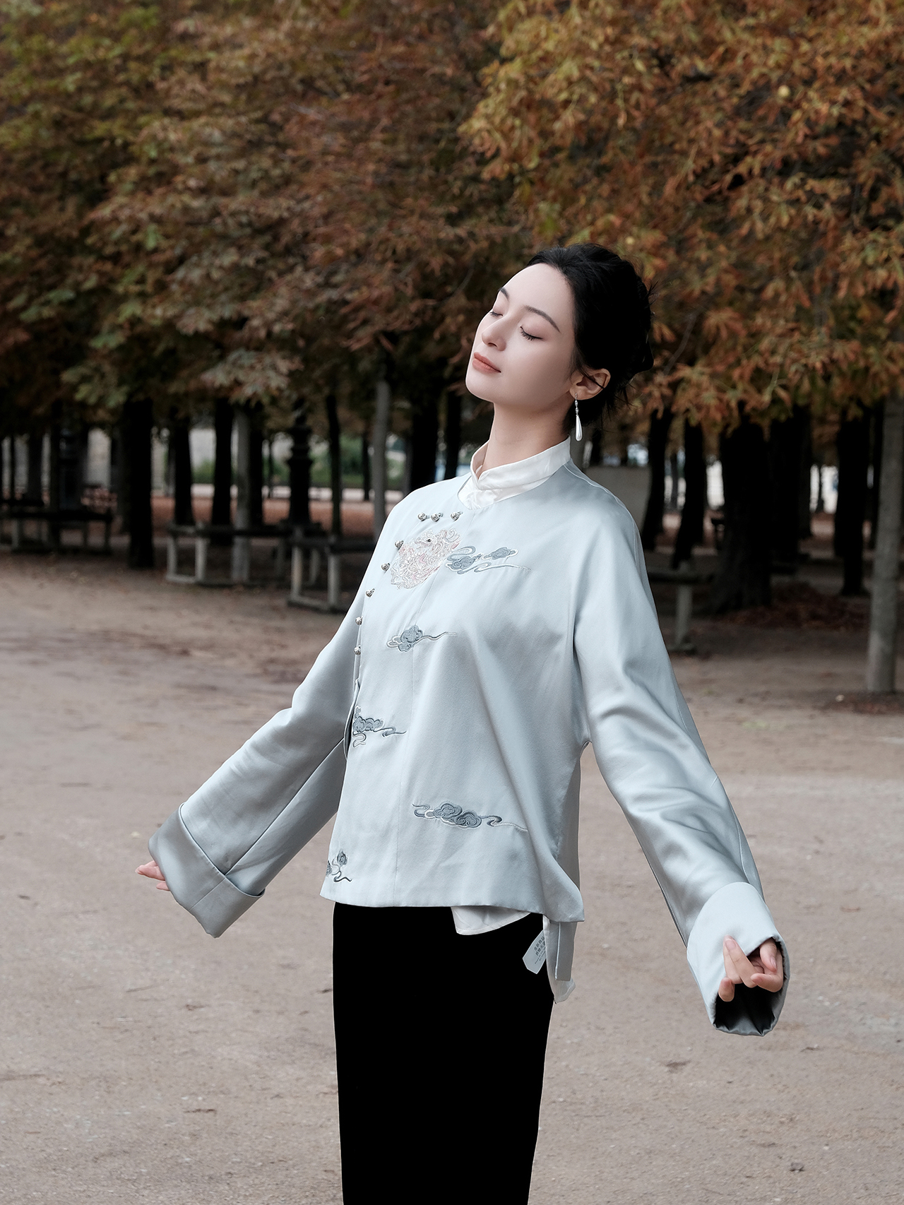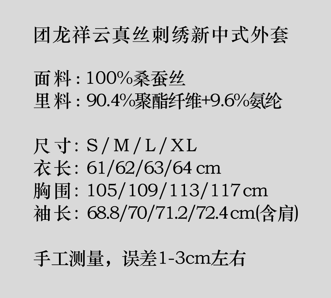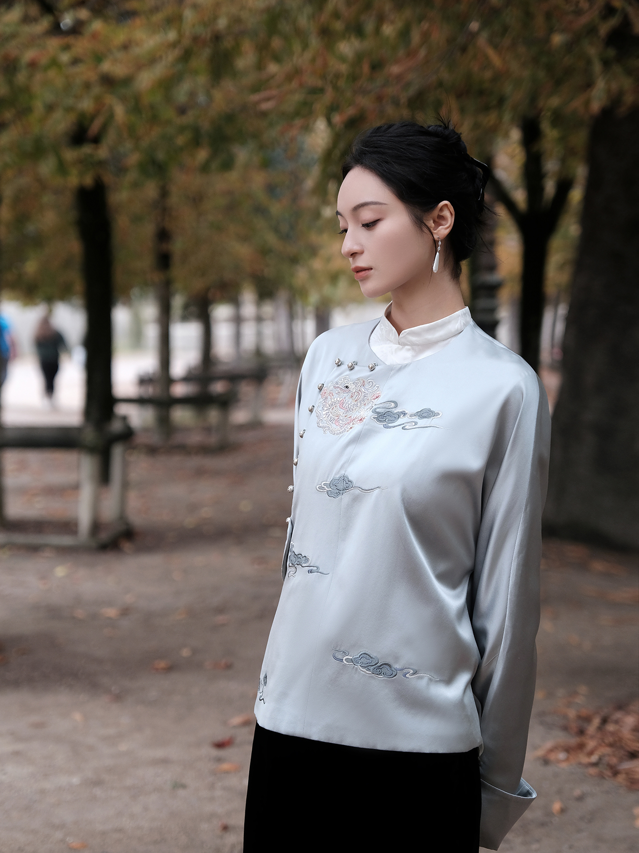 东方境X郭培| 团龙祥云真丝刺绣新中式外套-蓝色