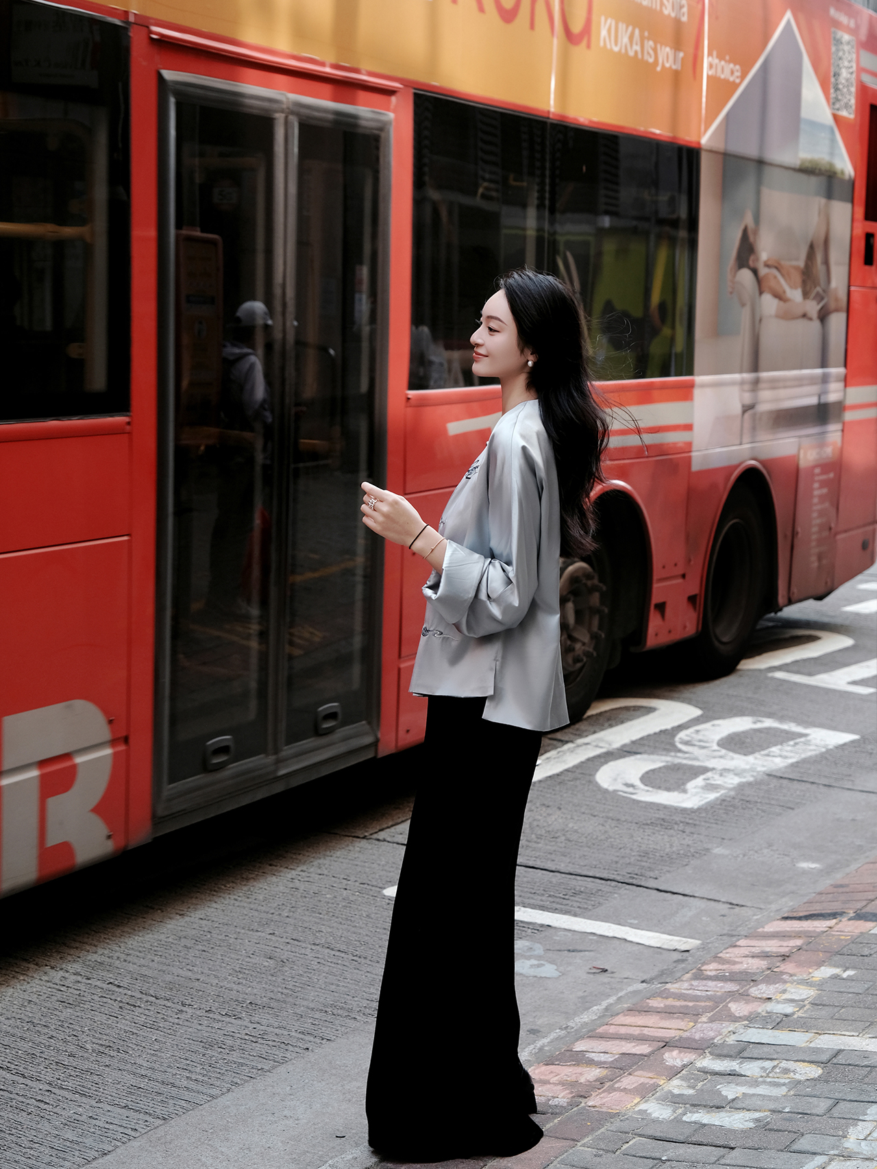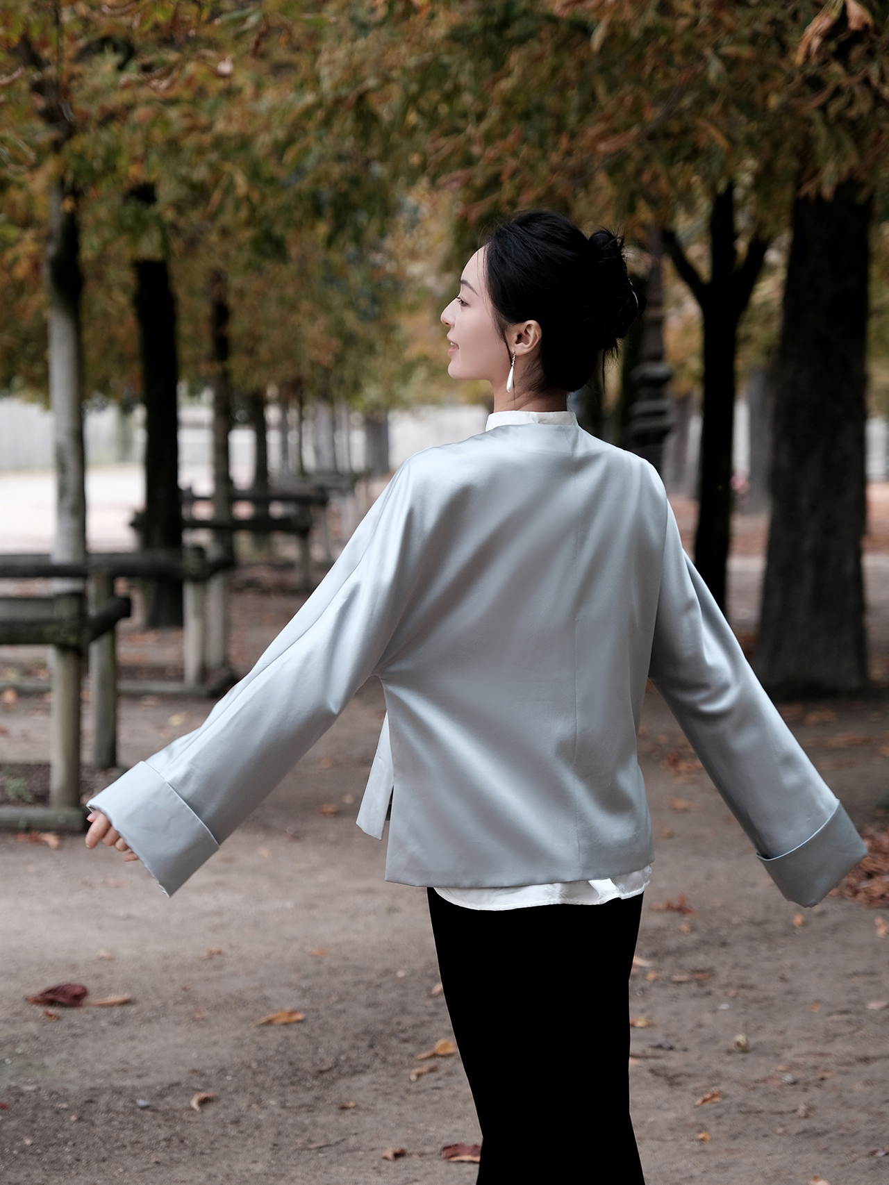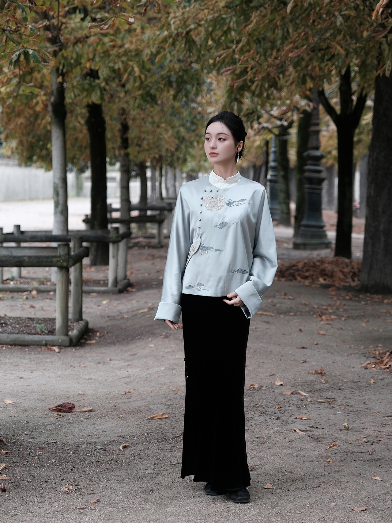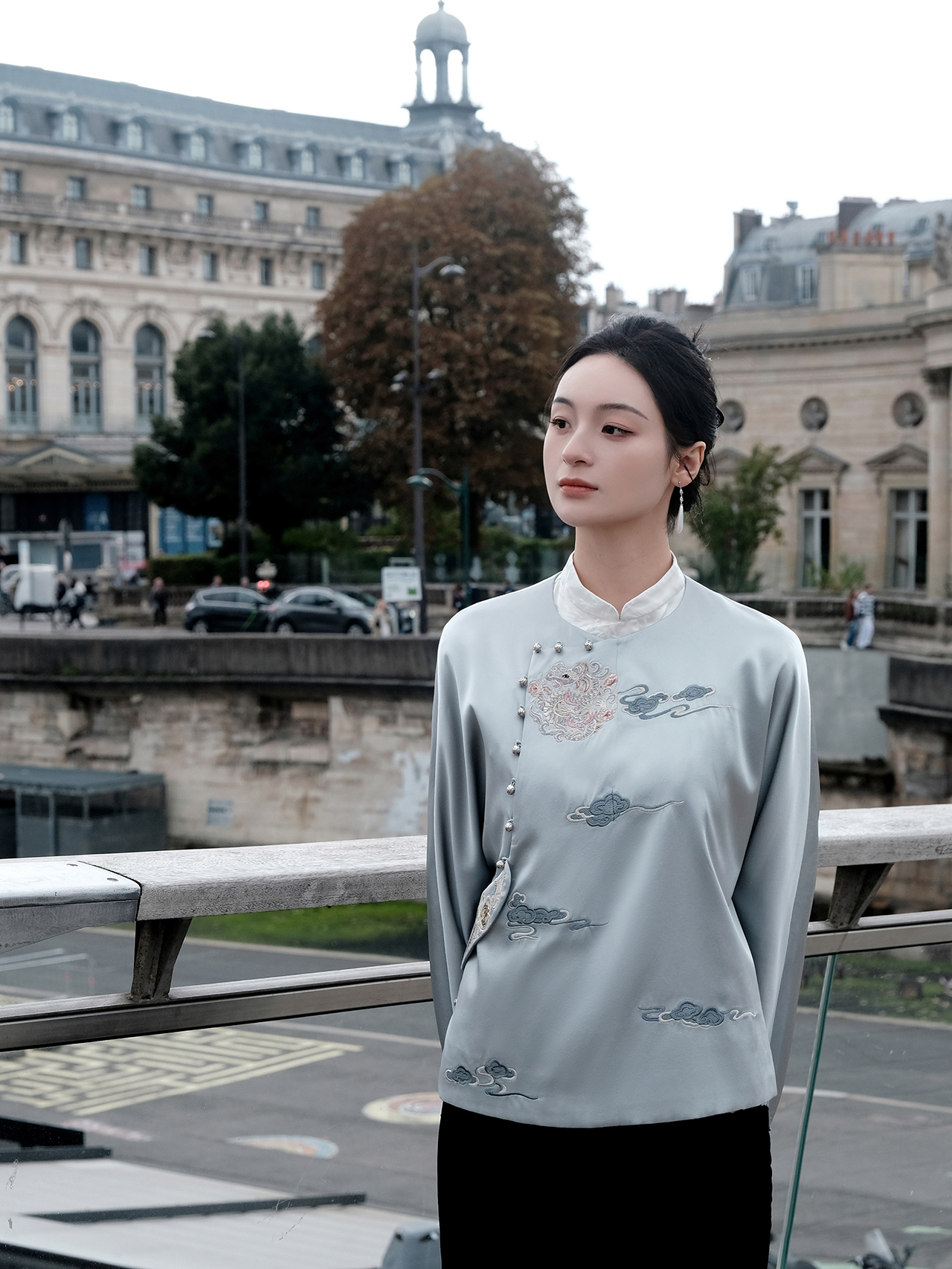 东方境X郭培| 团龙祥云真丝刺绣新中式外套-蓝色