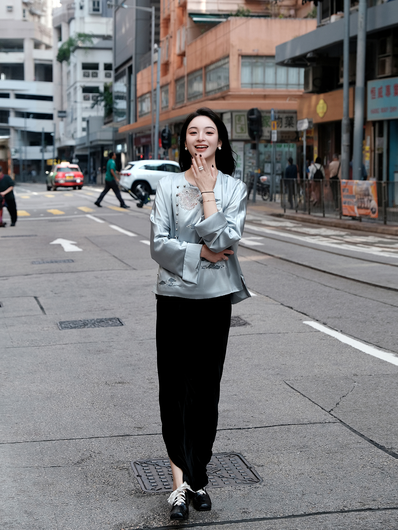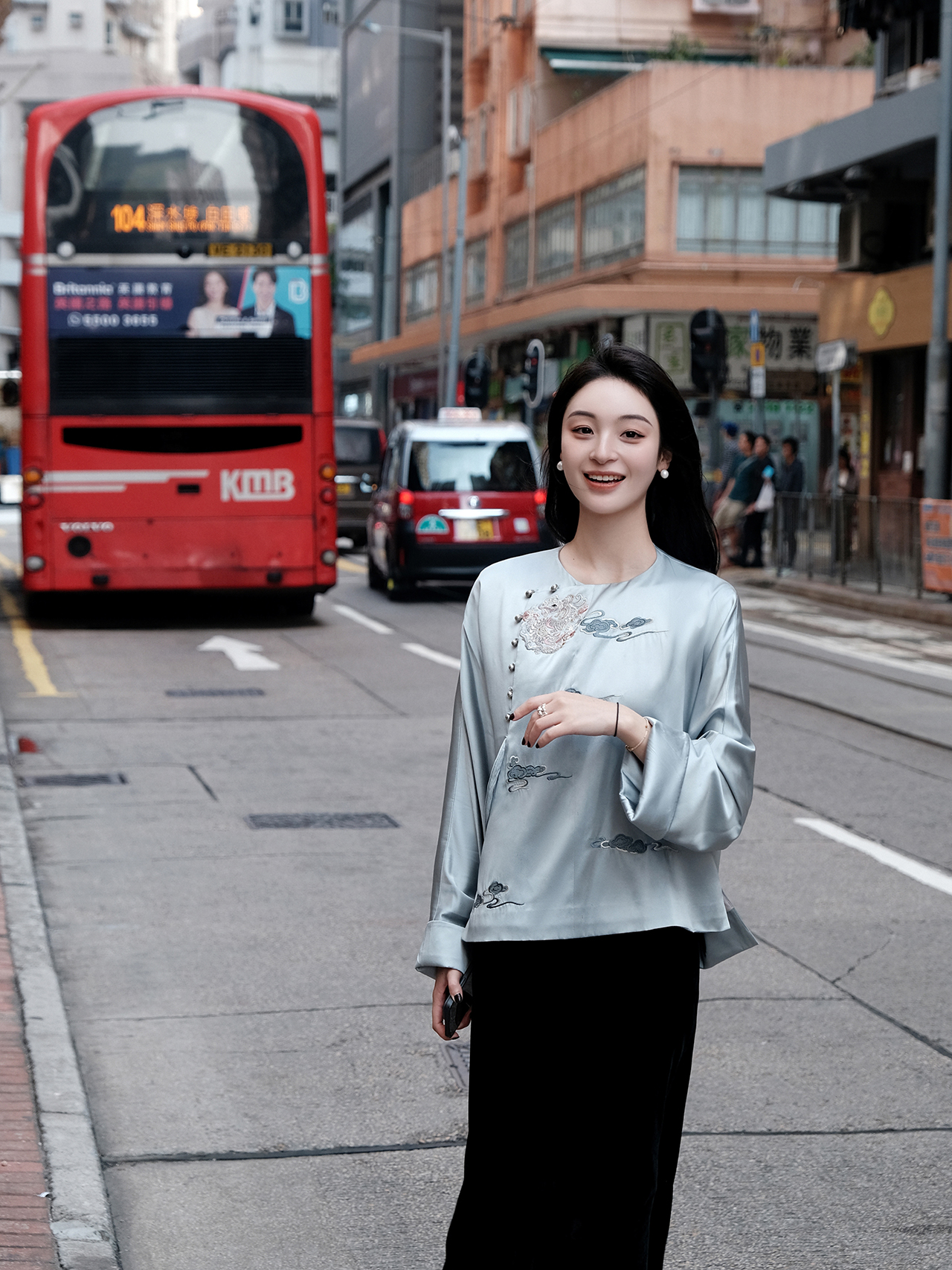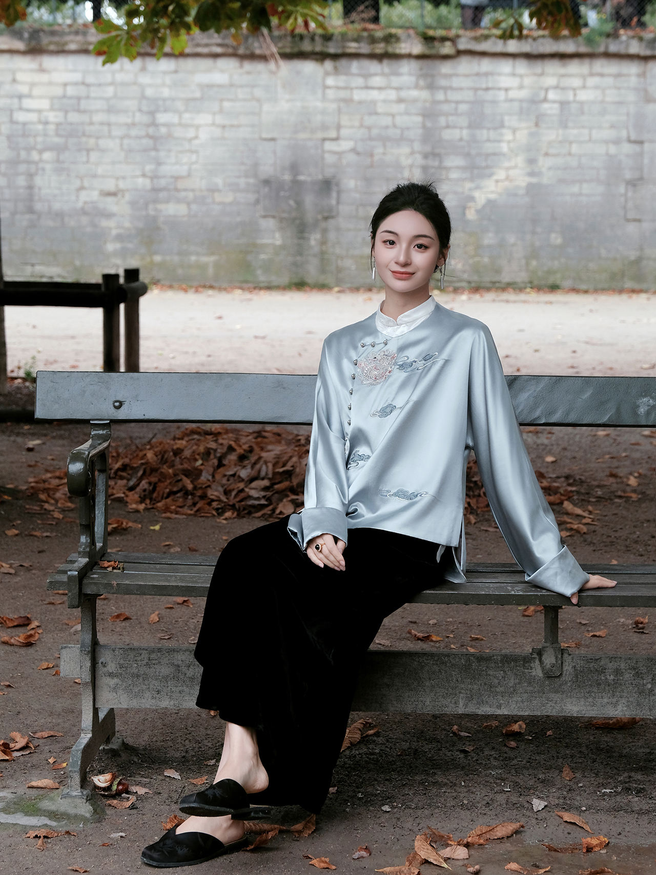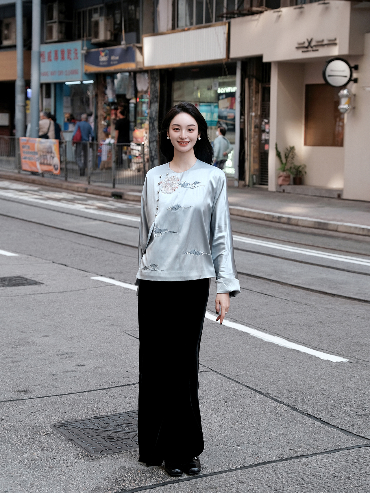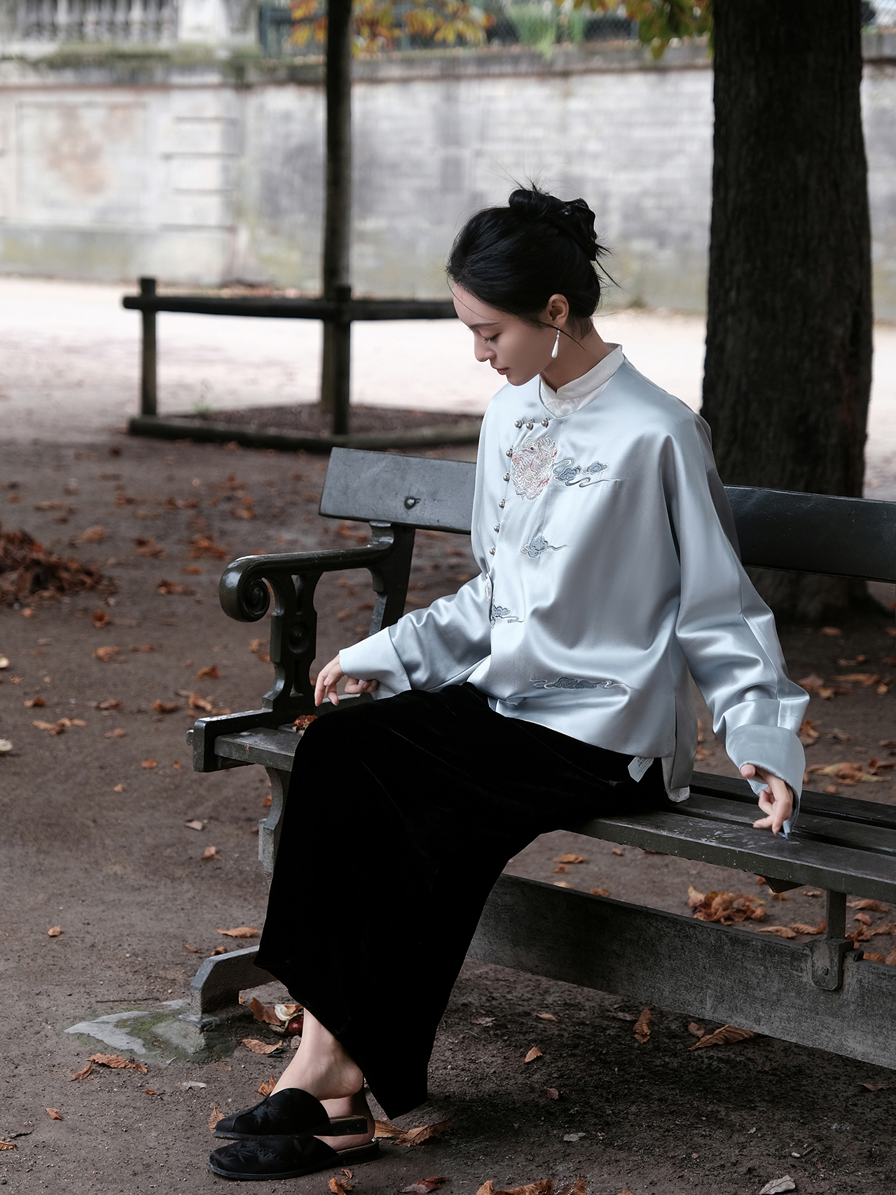 盛唐牡丹 | 真丝绸缎圆领上衣