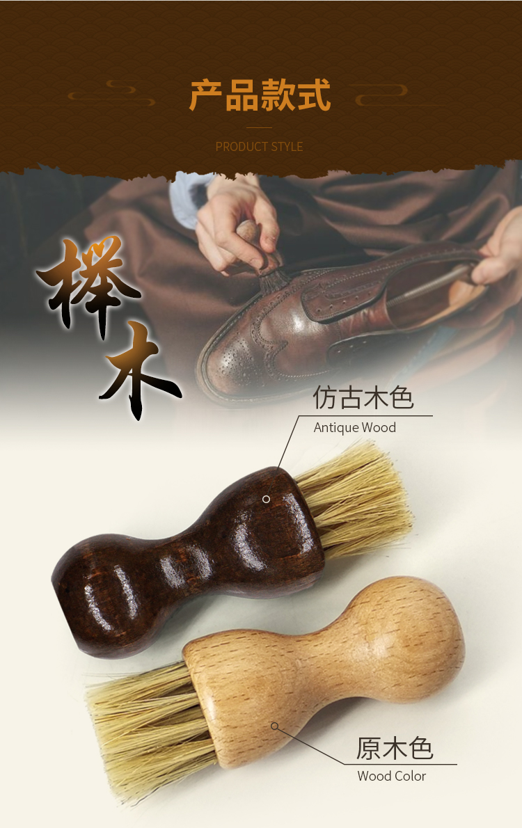 榉木猪毛刷手柄刷清洁刷鞋刷上油打蜡刷