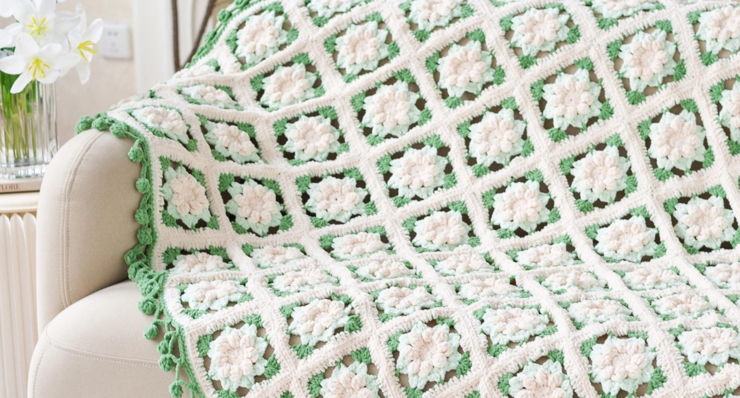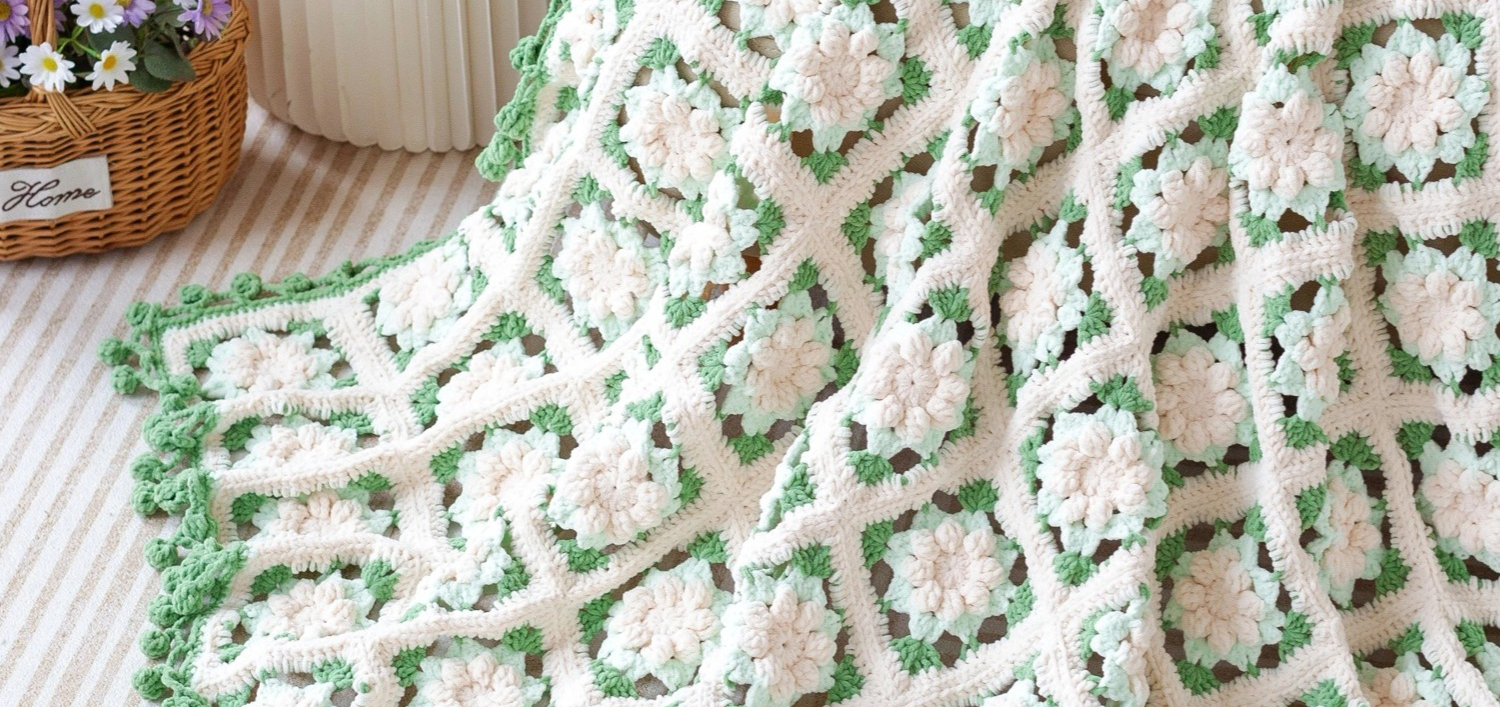 苏苏姐家雪绒花毯云小朵版手工编织自制DIY钩针毯子毛线团材料包