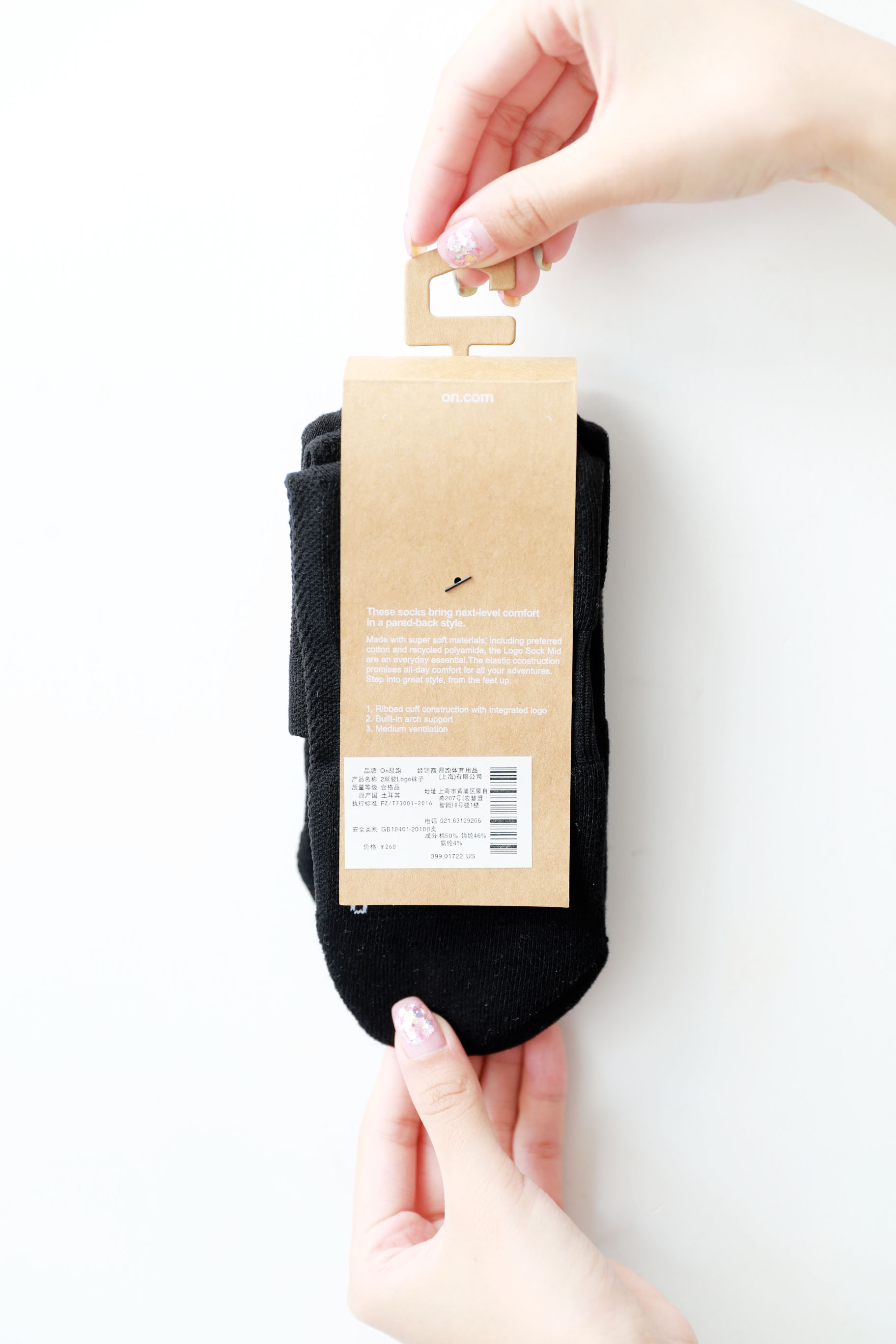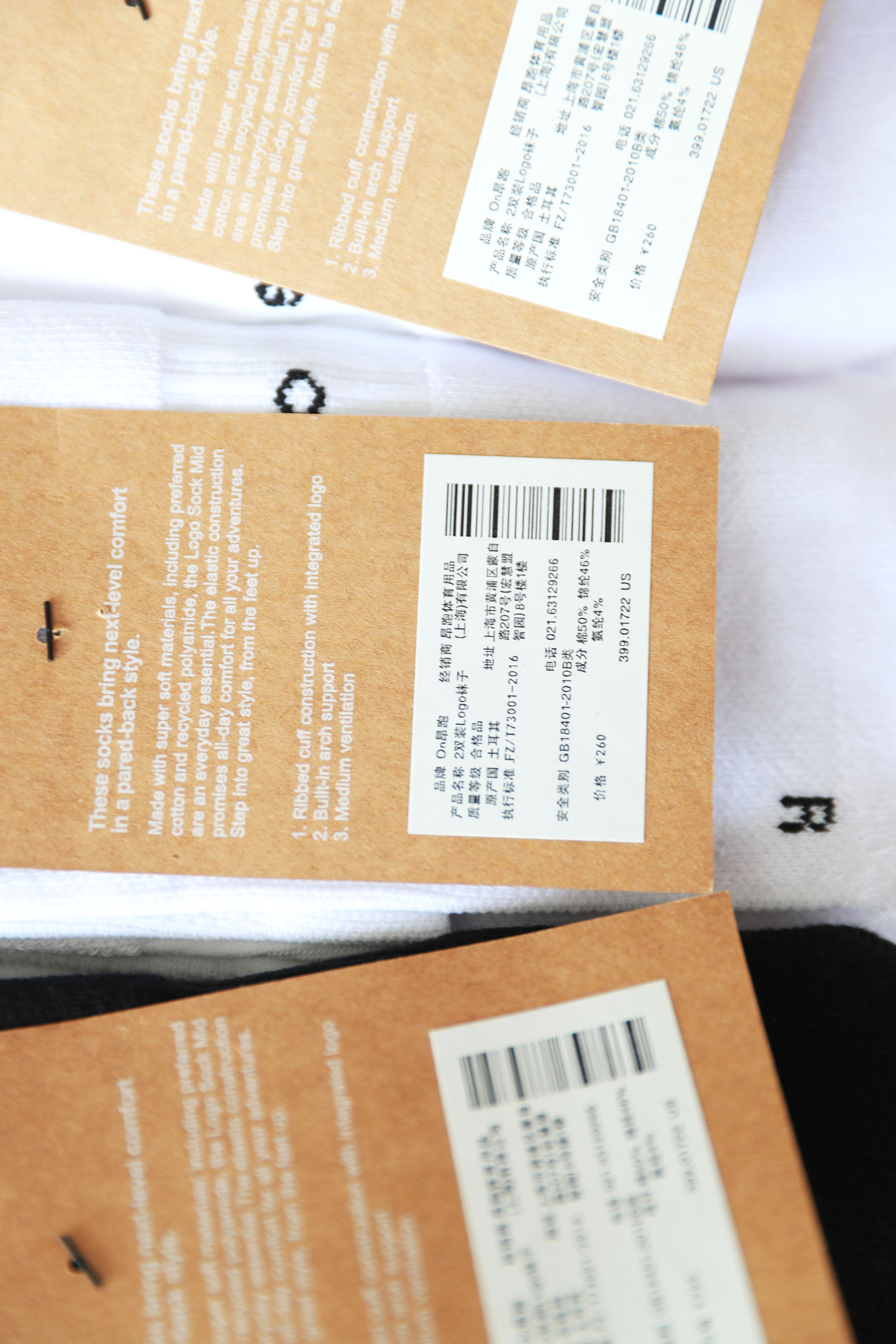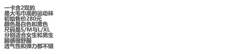 大毛巾底袜,一卡2双装。原包装+原衣架の短筒运动跑步袜C041760
