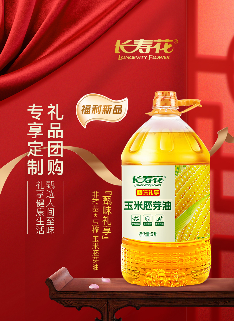 【甄选&全网比价】长寿花甄味礼享 玉米胚芽油5L 食用植物油 非转基因 传统物理压榨工艺 保留玉米胚芽天然营养 适合家庭烘焙烹饪 健康又美味