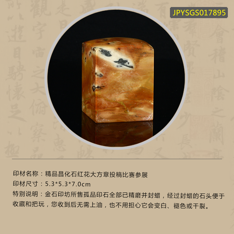 孤品17895精品昌化石红花大方章投稿比赛参展5.3*5.3*7.0cm