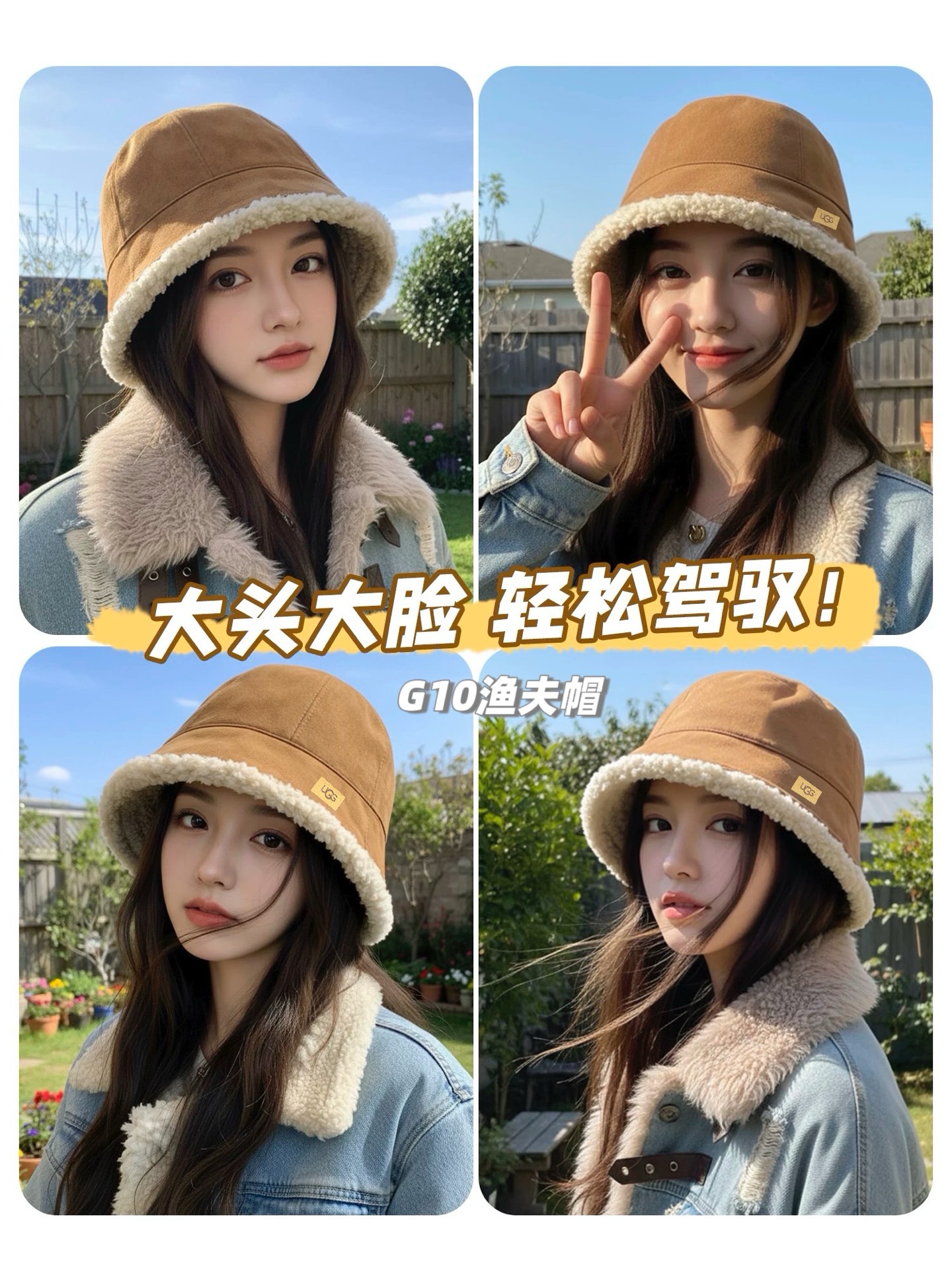 UGG麂皮绒加厚加绒款渔夫帽!加深加宽,又到了戴加绒渔夫帽的季节了,氛围感神器,适合圆脸!显脸小!冬天谁能拒绝一顶毛绒绒奶呼呼的帽子呢!不想洗头直接戴这顶出门!