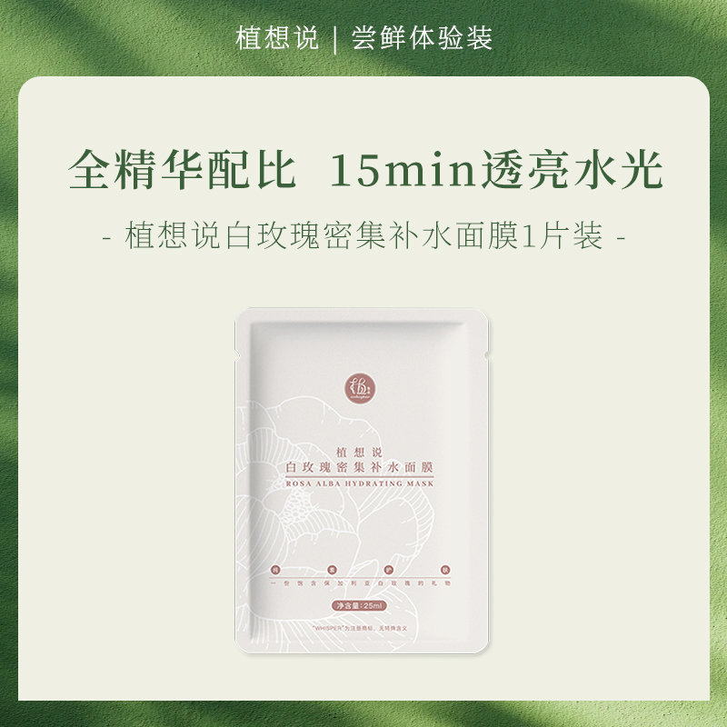 【尝鲜体验装】植想说白玫瑰密集补水面膜1片装,密集补水,非质量问题不退不换,不支持修改地址