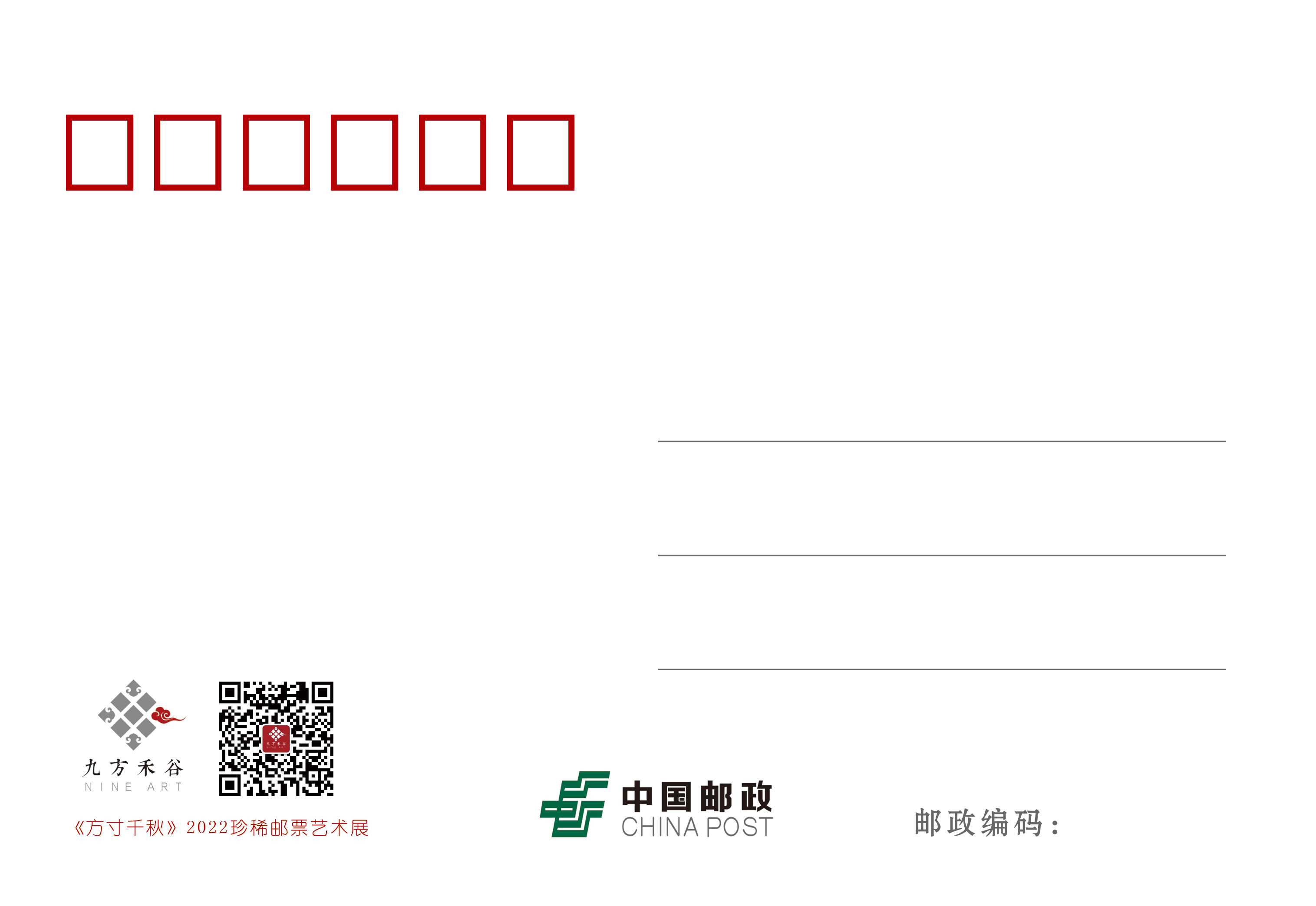 《方寸千秋》2022珍稀邮票艺术展纪念明信片,一套八张,并提供活动过程中数枚当天机戳和纪念戳。