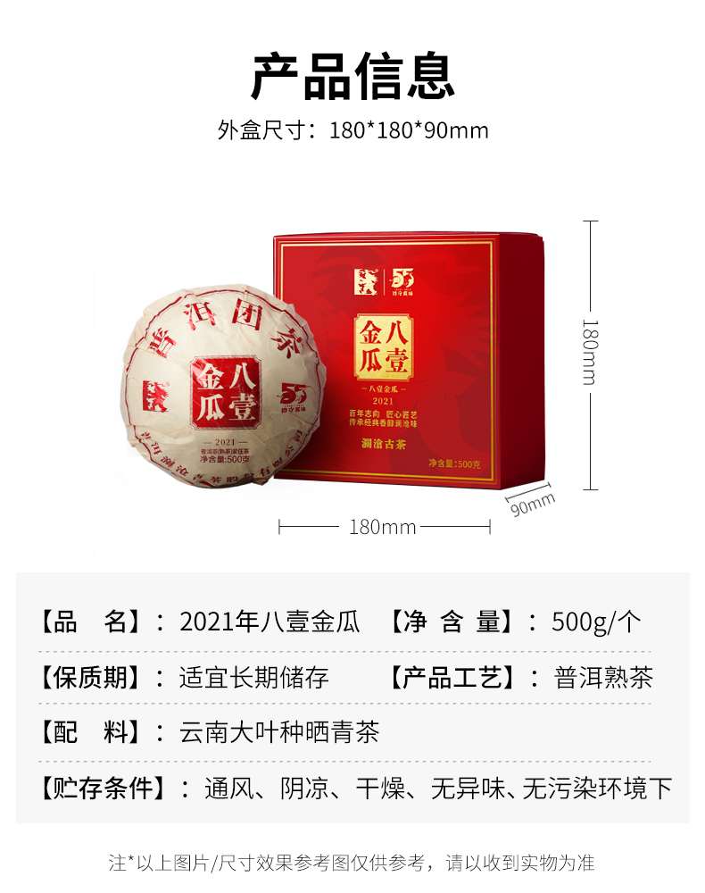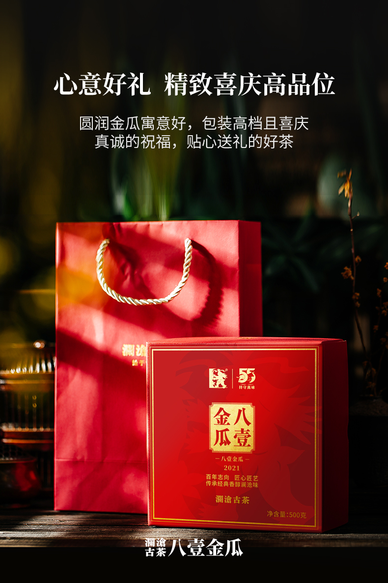 澜沧古茶岩冷2021年八壹金瓜普洱熟茶古树礼盒送礼