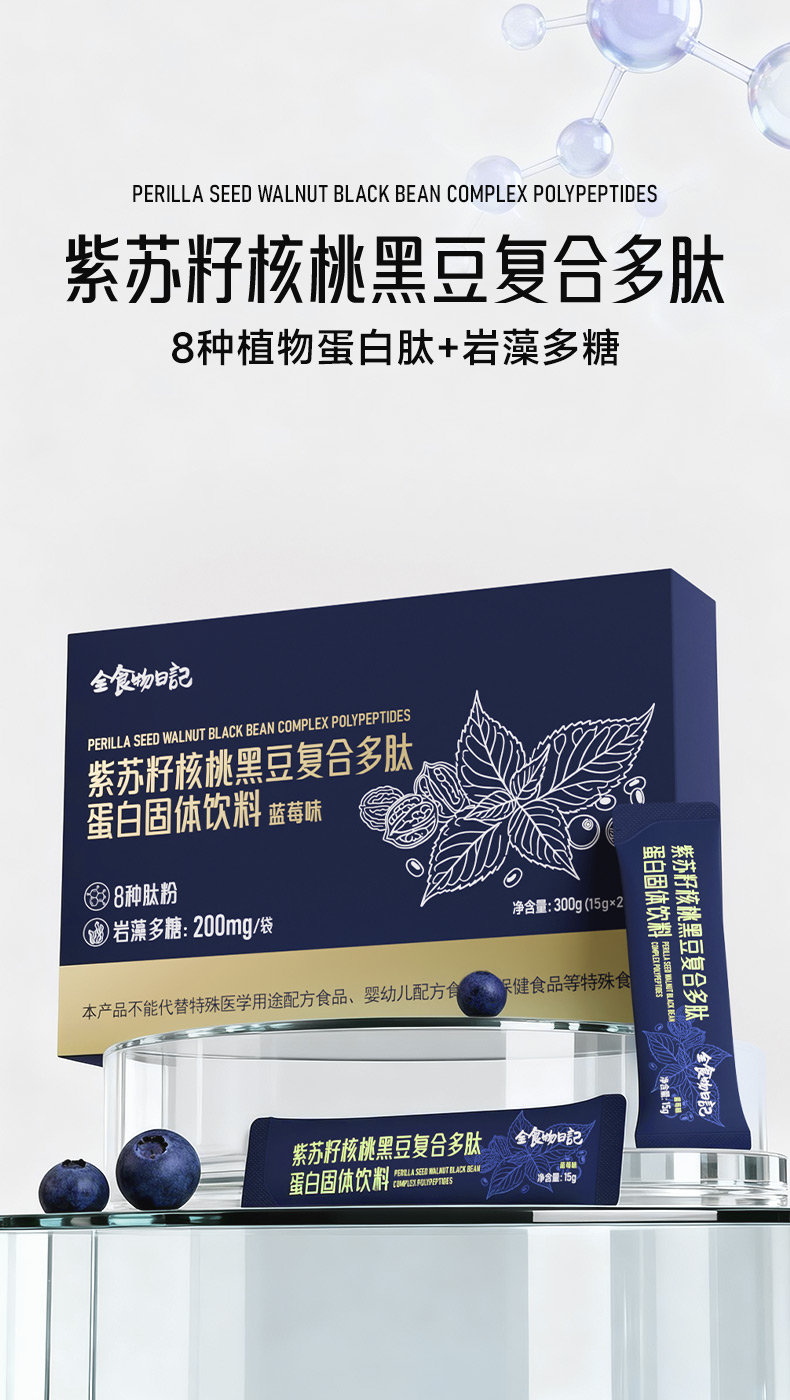 全食物日记紫苏籽核桃黑豆复合多肽蛋白固体饮料(蓝莓味)300g