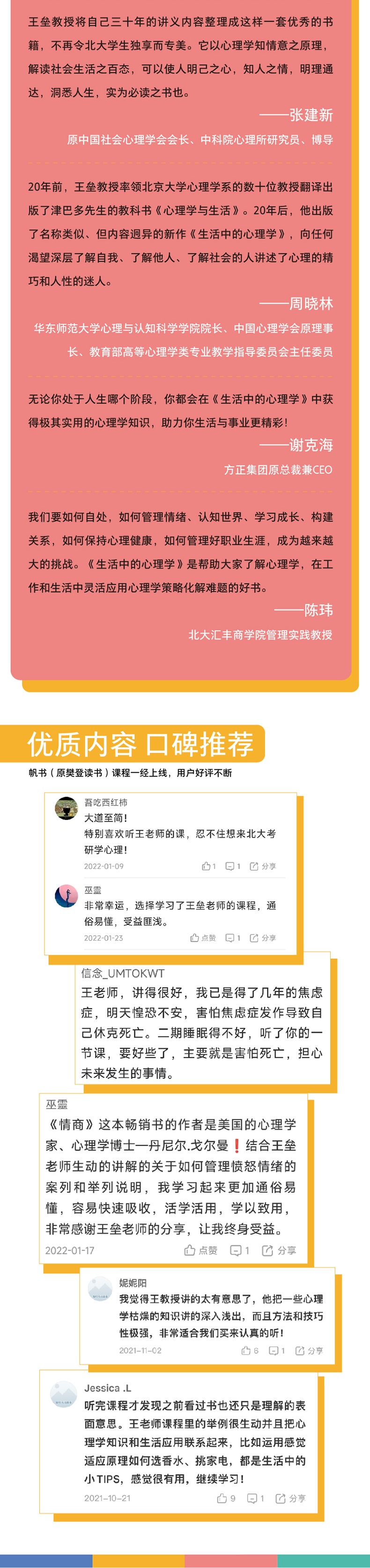 王垒 北京大学心理与认知科学学院教授、博导,任教30余年。牛津大学访问学者,加州大学伯克利分校访问教授,中国社会心理学会副会长。 曾任北京大学心理学系主任、*高等学校心理学教学指导委员会主任、*应用心理专业学位研究生教育指导委员会主任。 从事社会心理学、管理心理学、消费心理学、情绪心理学等领域的教学、科研、企业应用,曾为上百家企业包括很多世界500强企业及媒体提供心理学相关的培训、研究、咨询。 著有《组织管理心理学》《实用心理与人事测量》《管理者》《青年心理学》等,主持翻译心理学读物《心理学与生活》《心理资本》《组织行为学》等。