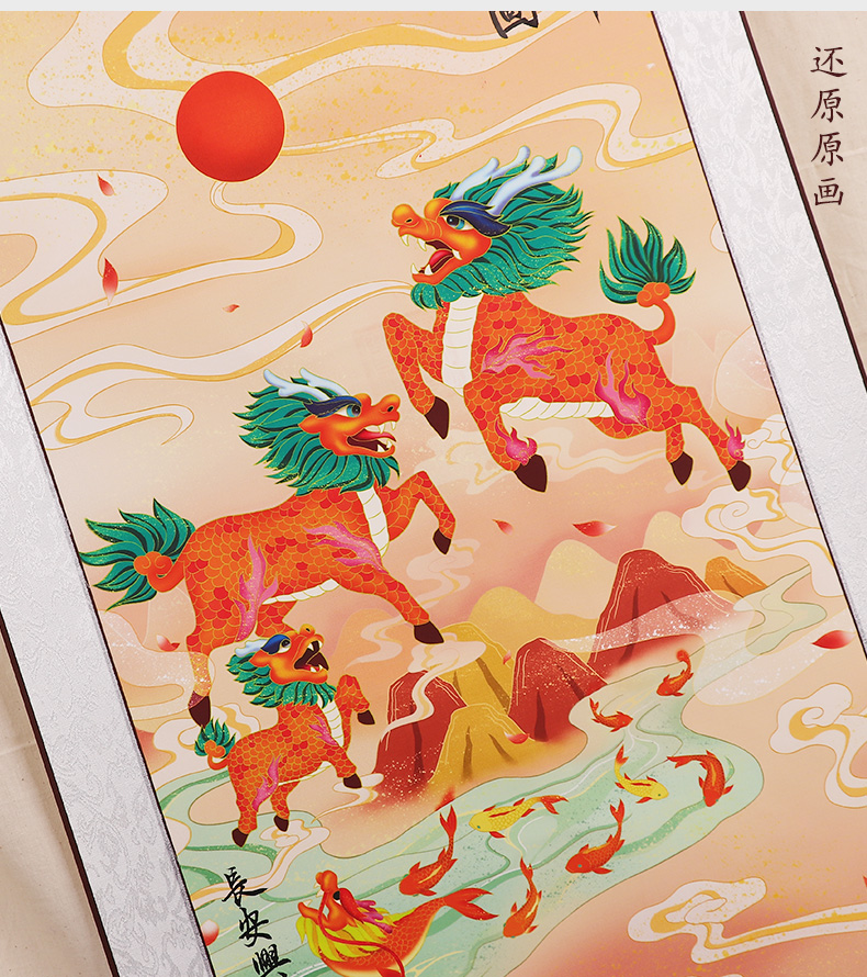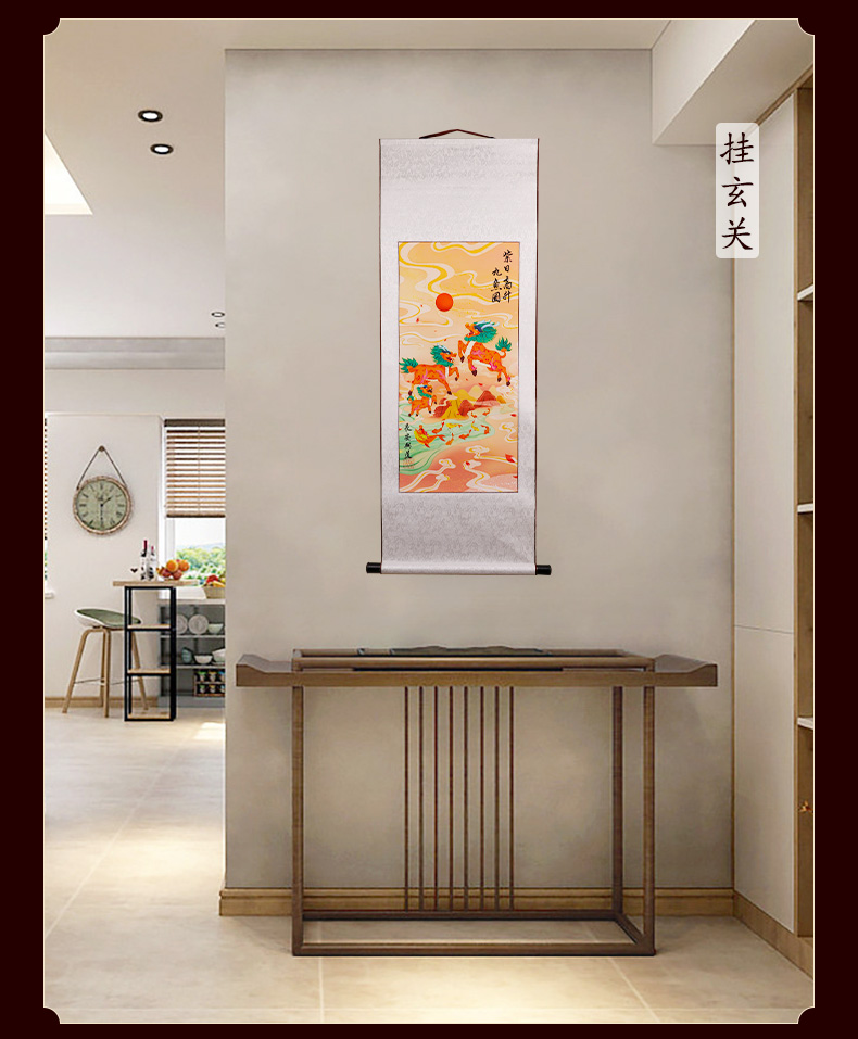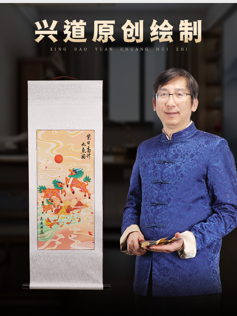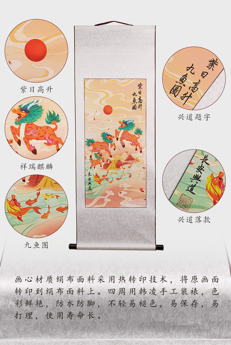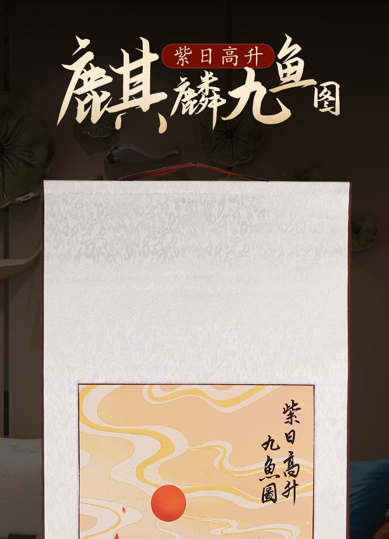 紫日麒麟九鱼图挂画