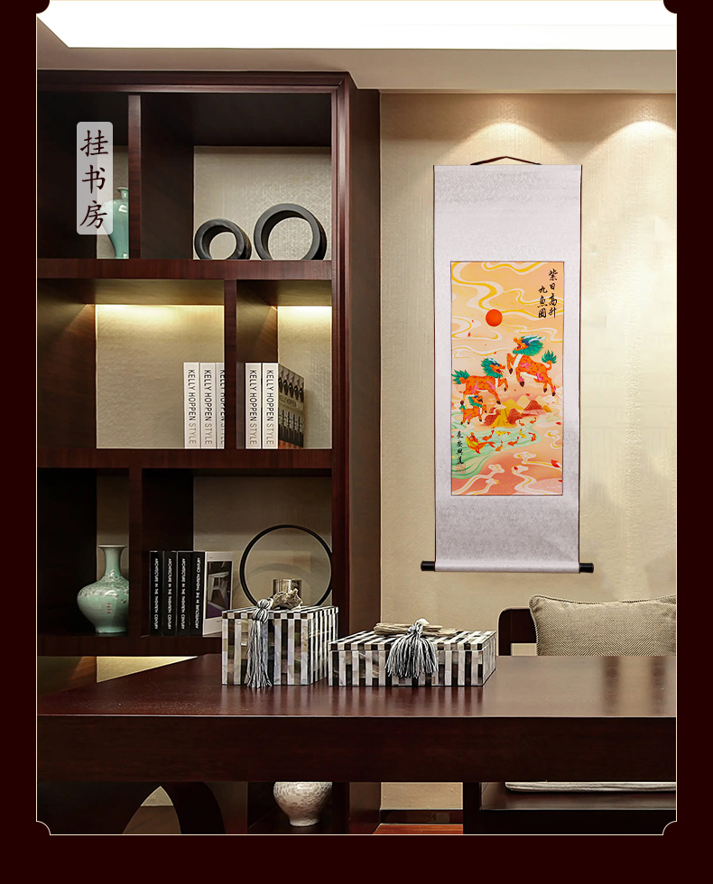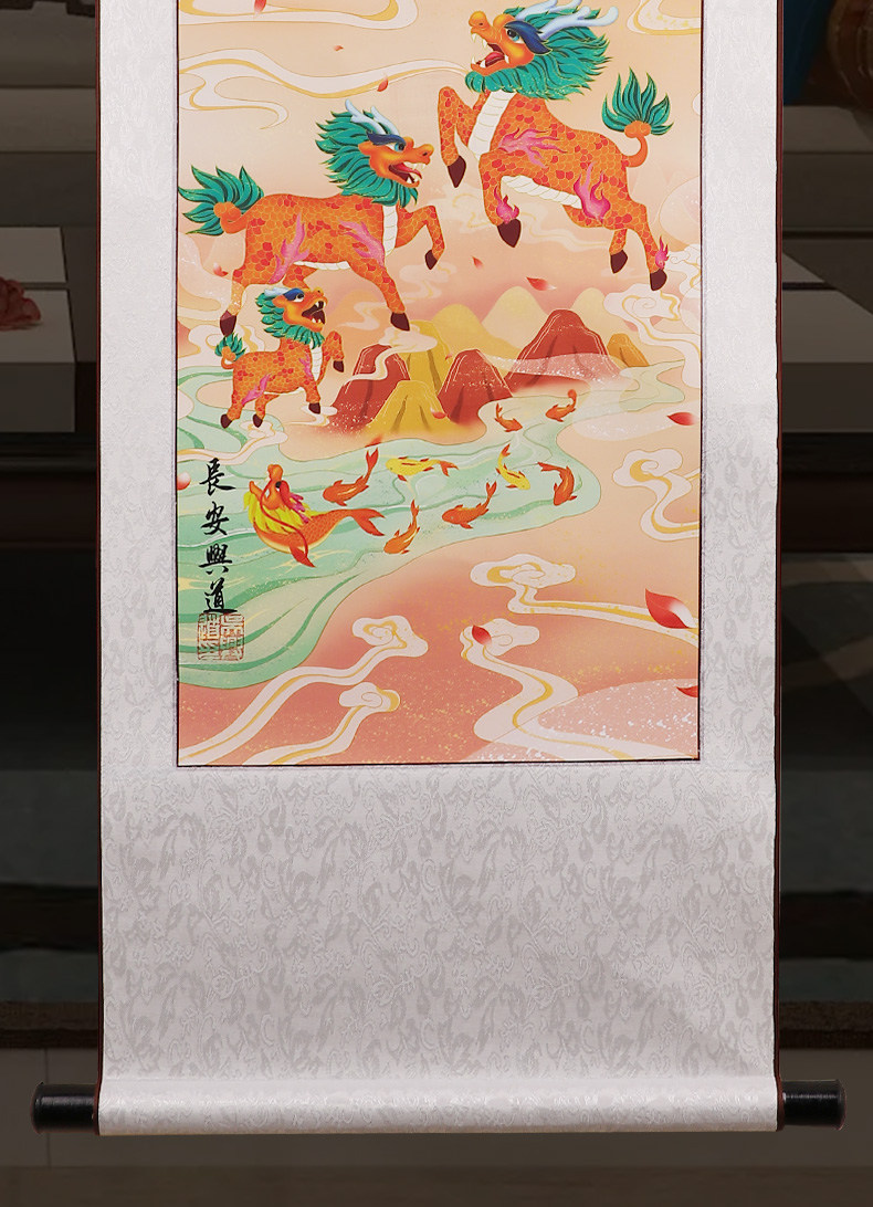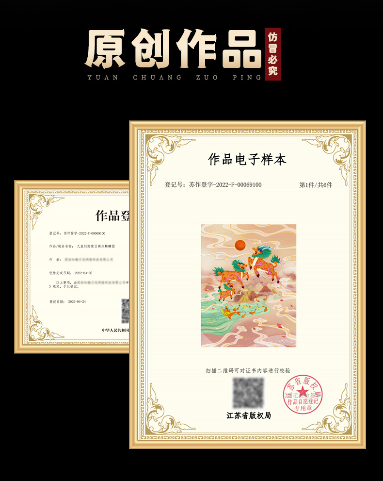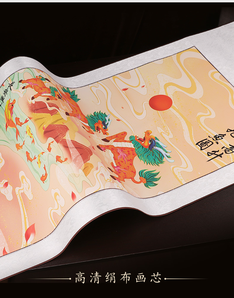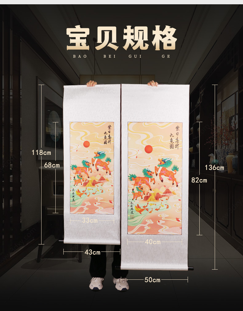 紫日麒麟九鱼图挂画