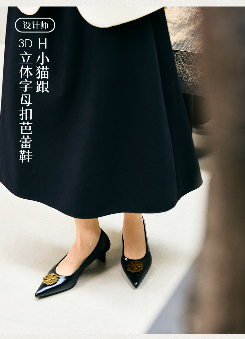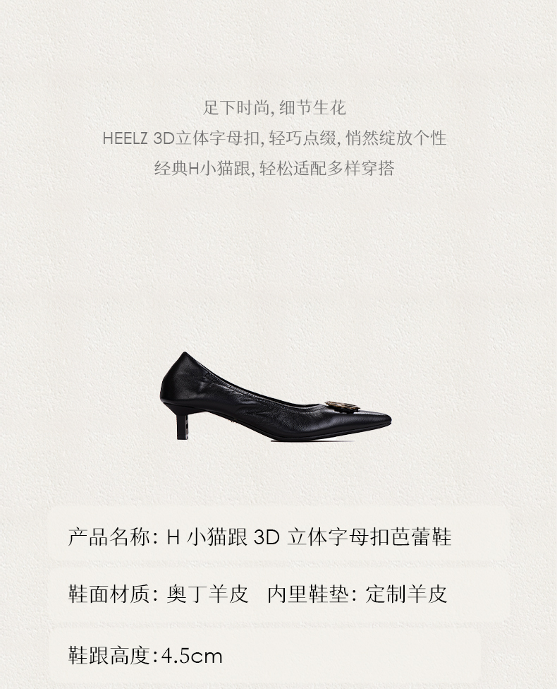 heelz设计师手工鞋履 |H小猫跟3D立体字母扣芭蕾鞋 4.5公分