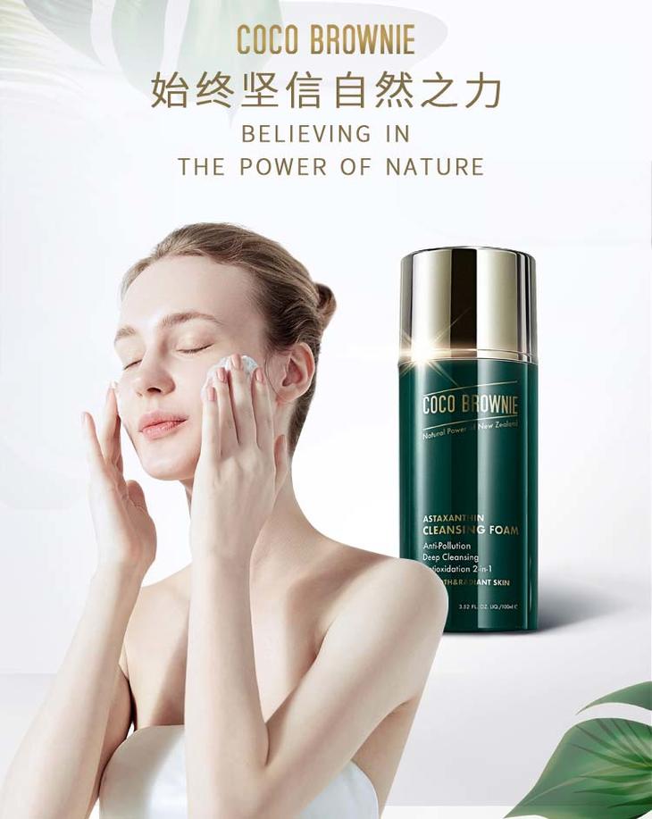 【自动起泡 抗初老】新西兰小绿瓶coco brownie虾青素氨基酸抗氧化洁面乳 自发起泡深层清洁保湿抗衰老
