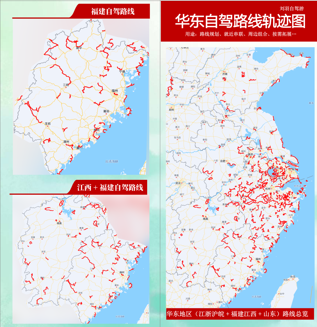 有!我把华东地区的自驾游路线,做成了折页,上面既有华东地区路线全图,也有各省的路线图。有需要可以直接下单。