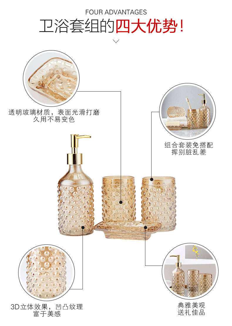 【6F】多样屋卫浴玻璃套装四件套玻璃瓶礼盒组卫浴套装洗漱套装鎏金 鎏金