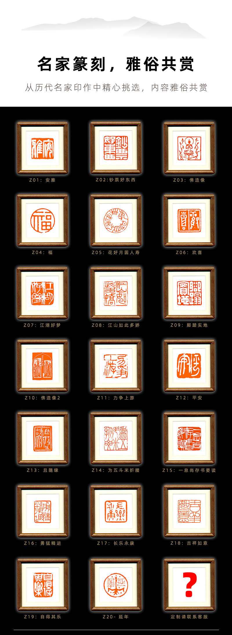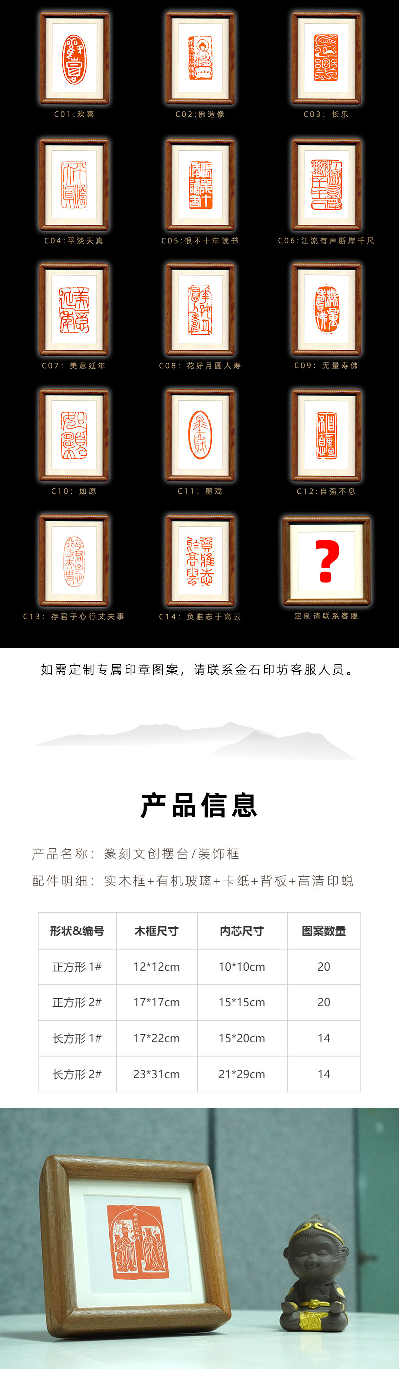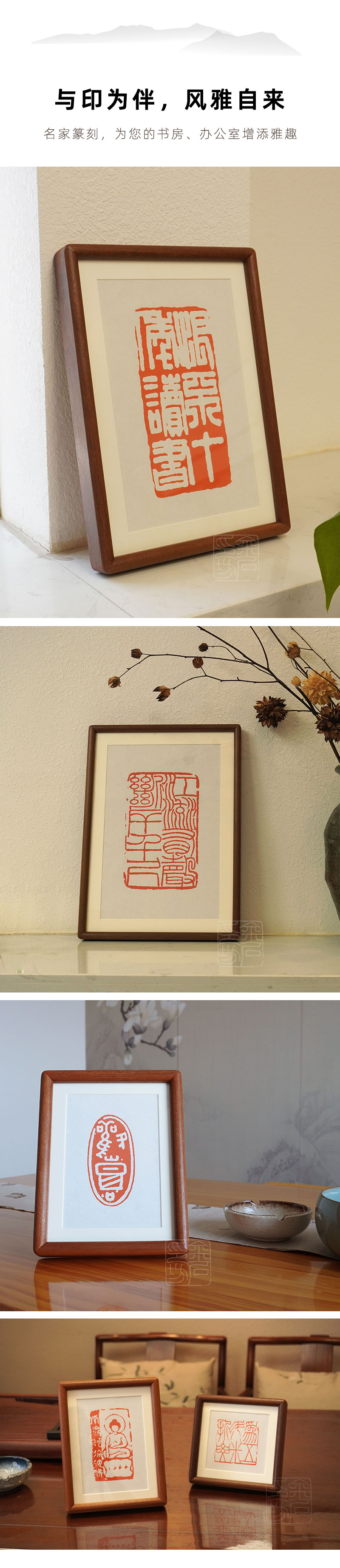 【金石印坊】篆刻文创摆台实木装饰画相框印屏印章印蜕放大