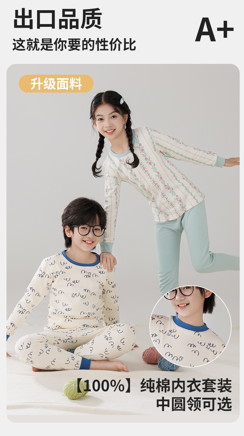 【A类纯棉❗️儿童保暖内衣套装】甄选新疆精梳棉,0荧光剂0甲醛,轻盈软糯,超舒服!男童秋衣秋裤女童春秋全棉中大童女孩睡衣棉毛衫睡衣睡裤