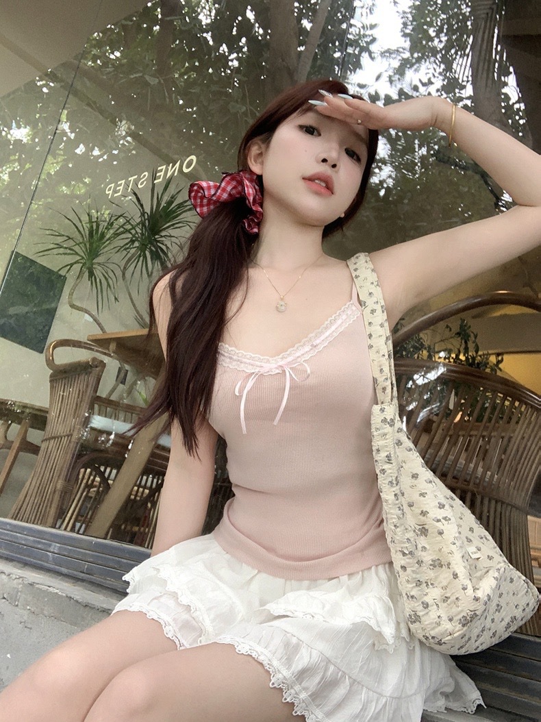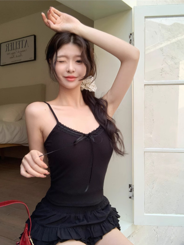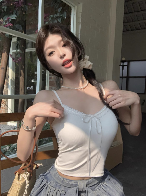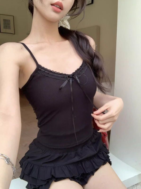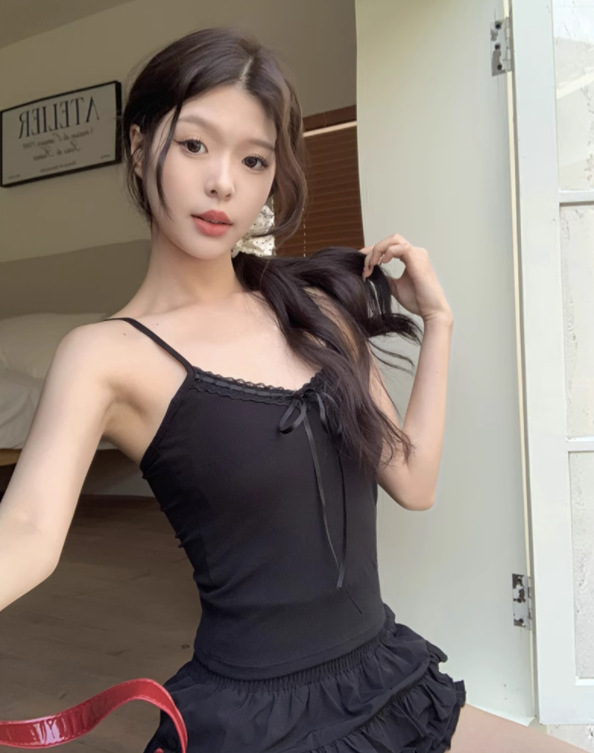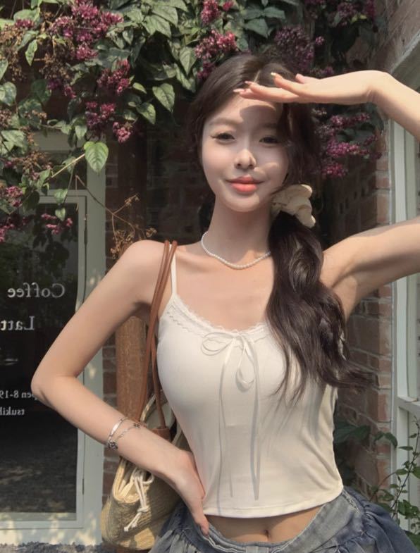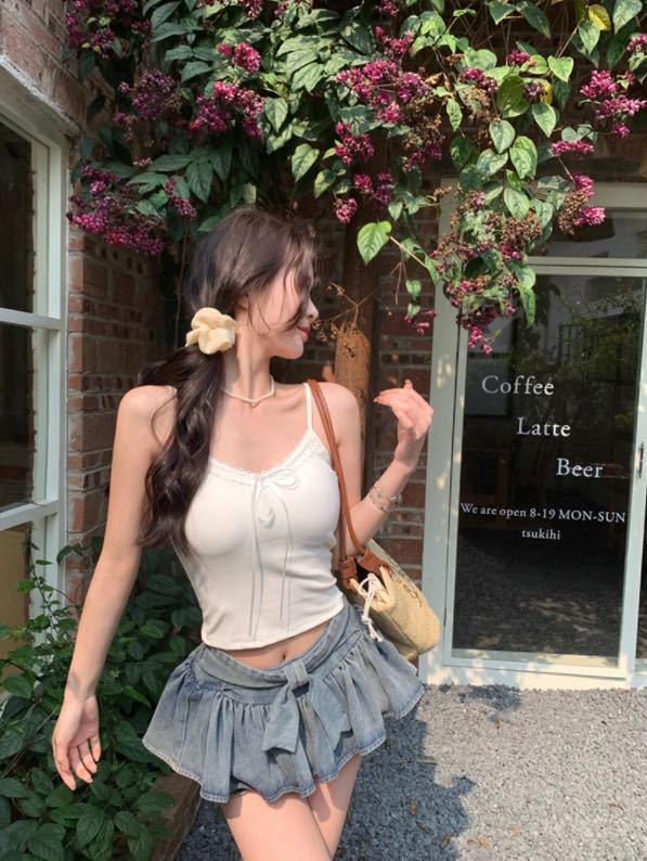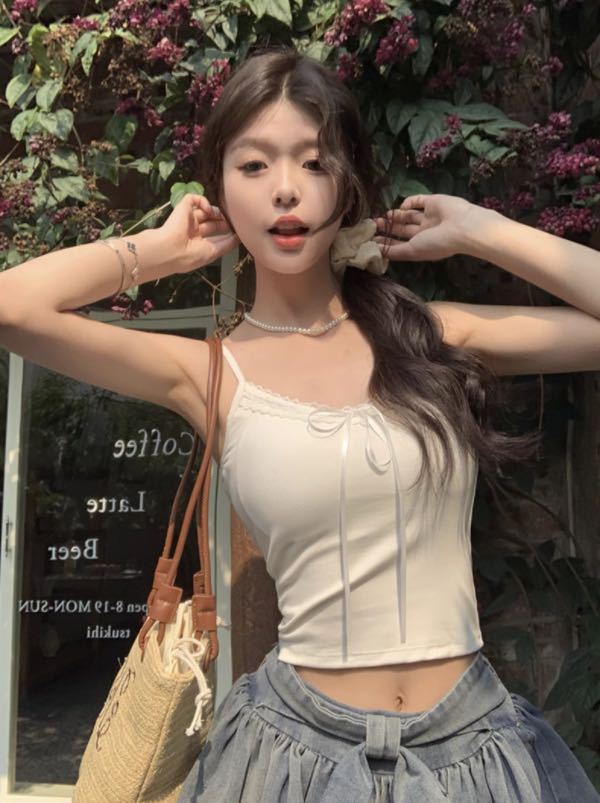 【夏季纯欲风❗️短款辣妹吊带】出街秒变“C位”,内搭外穿都绝美,绑带蝴蝶结荷叶边短款,露肚脐吊带背心上衣女L