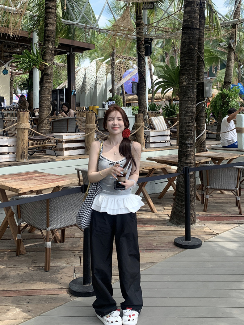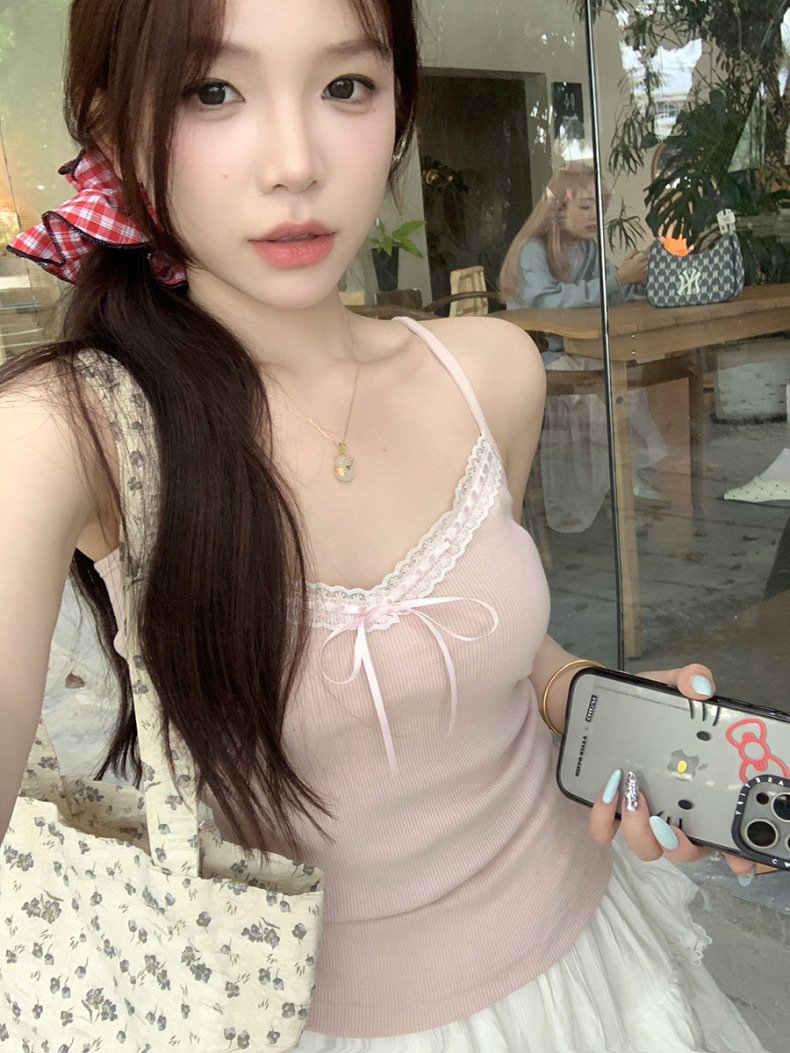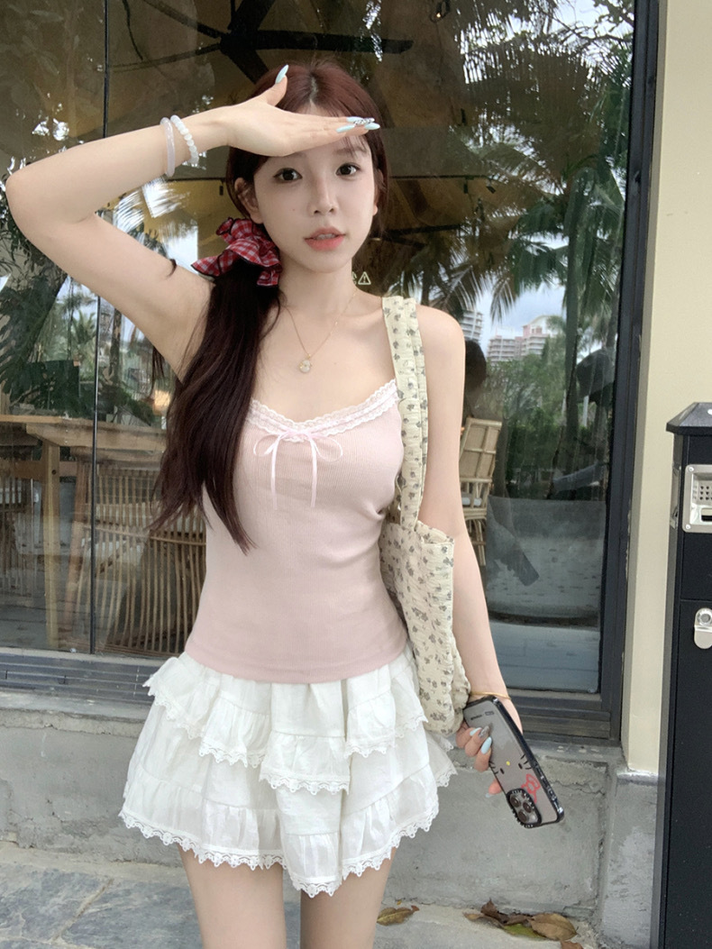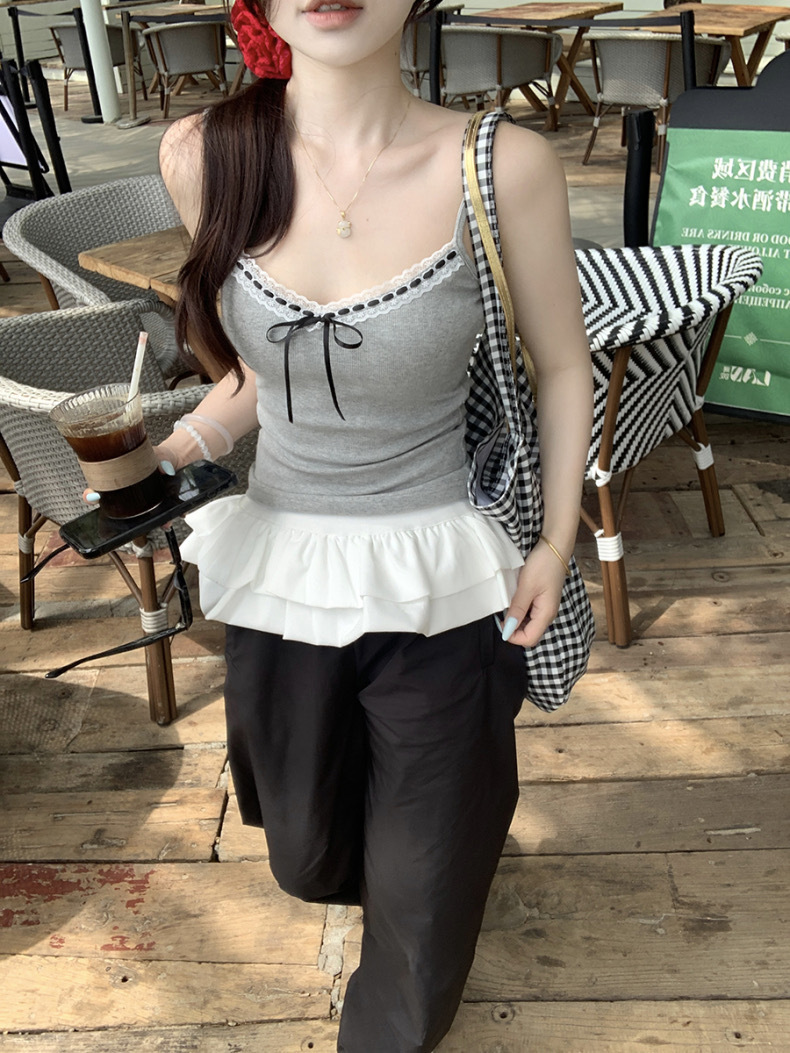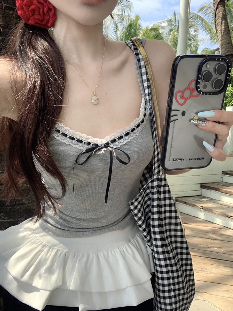 【夏季纯欲风❗️短款辣妹吊带】出街秒变“C位”,内搭外穿都绝美,绑带蝴蝶结荷叶边短款,露肚脐吊带背心上衣女L