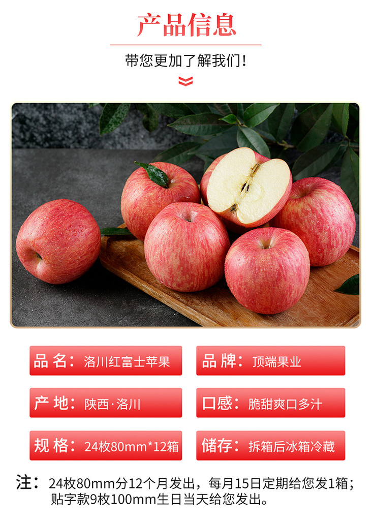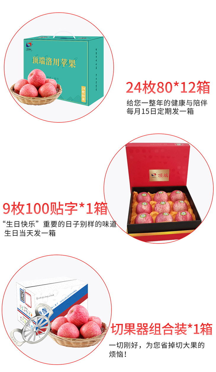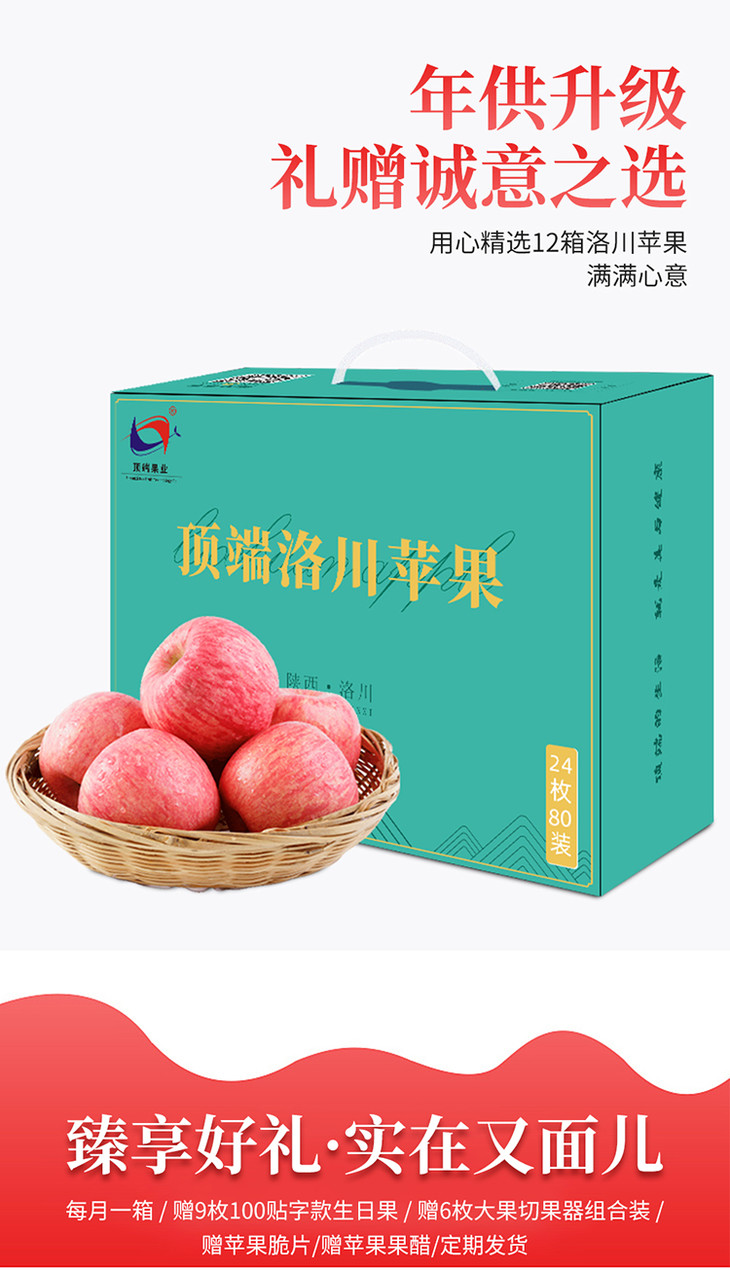 【年供款】陕西洛川红富士苹果24枚80mm精品中大果便捷手提装 全年供12箱苹果 每日一苹果健康陪伴
