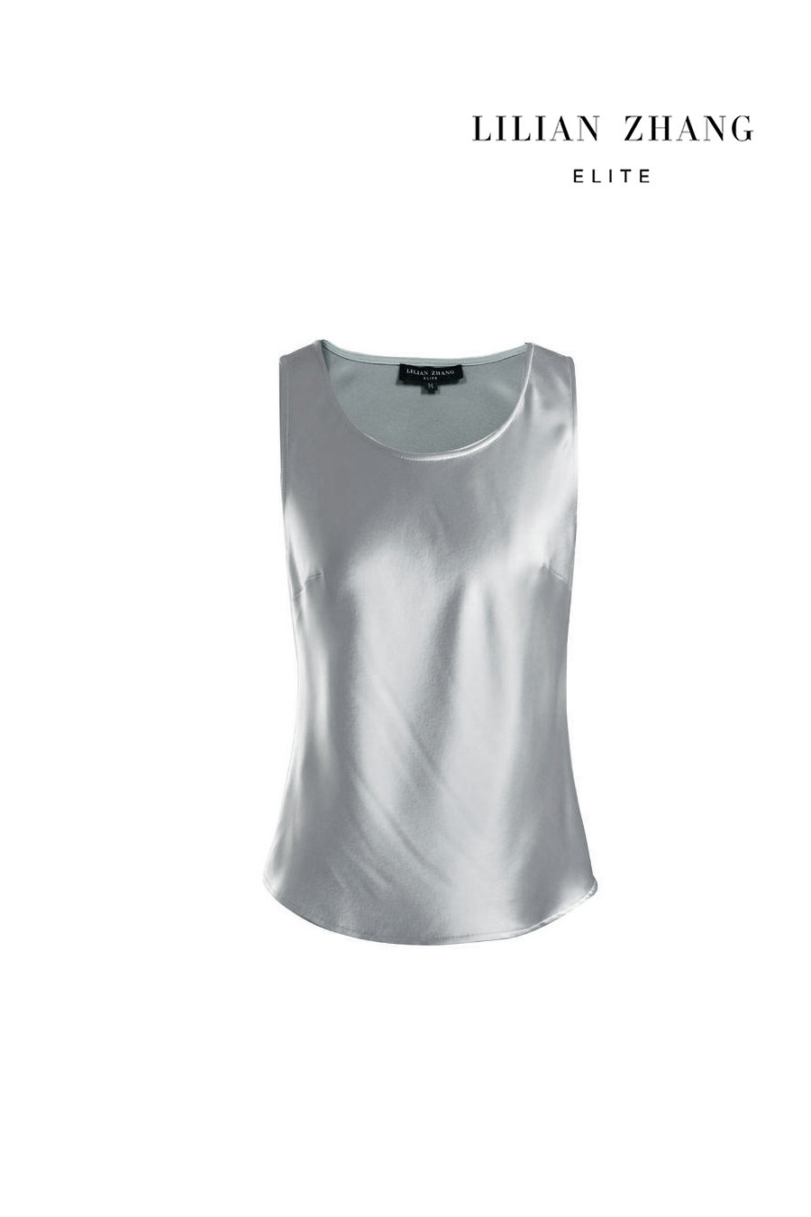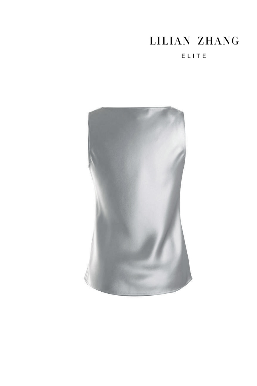 醋酸缎面纯色圆领背心、宽松黑色白色灰色绿色浅蓝色粉色2102004