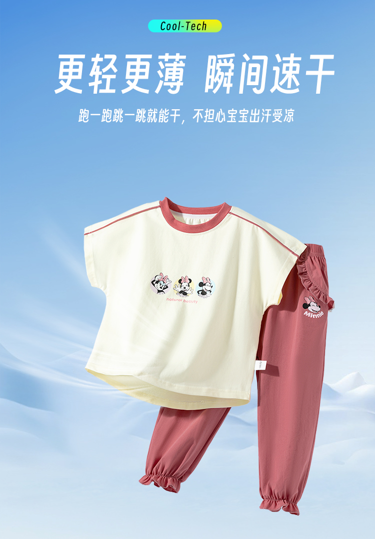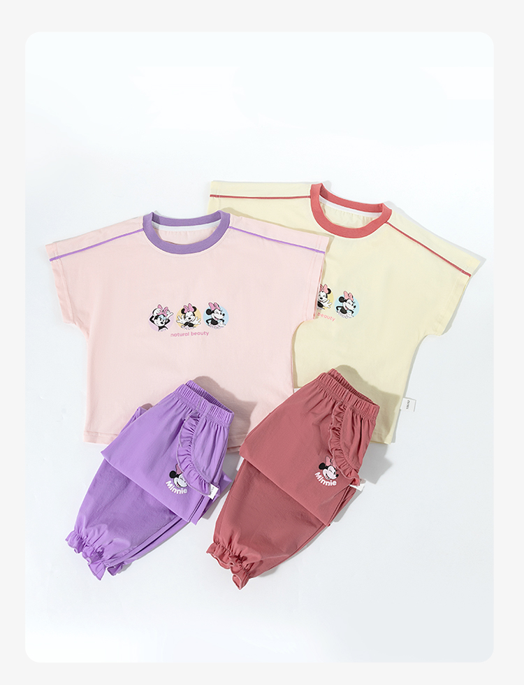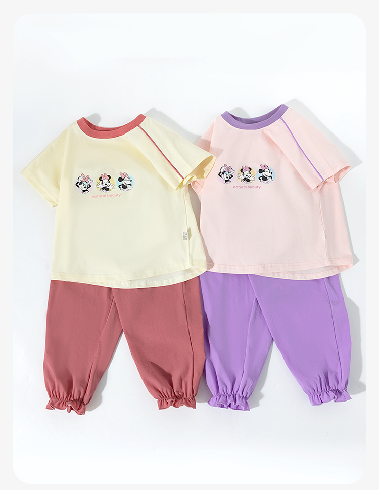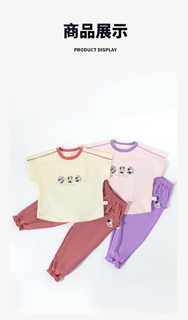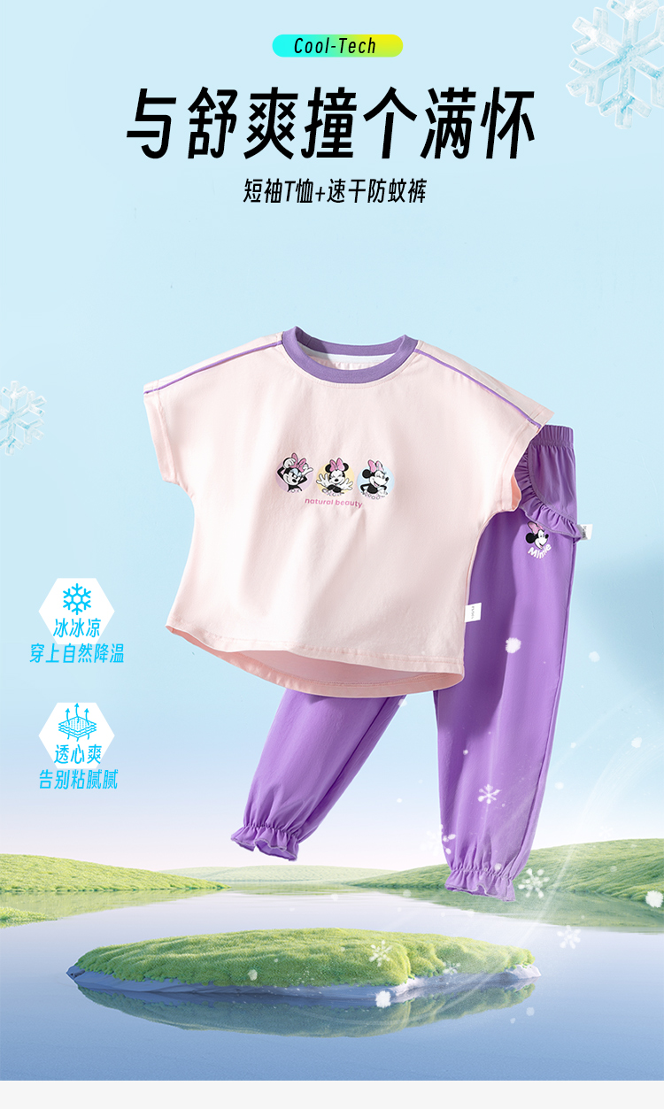 迪士尼【清爽短袖防蚊长裤套装】25夏季新款女童时尚百搭凉感休闲两件套ZD2ET006
