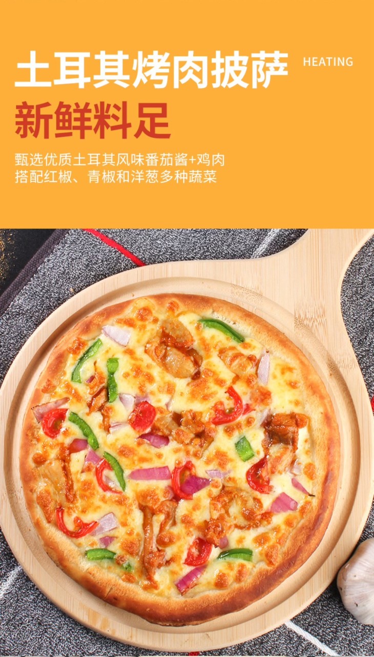 土耳其烤肉披萨:披萨酱、烧烤酱和马苏里拉芝士的完美结合,酸甜咸香渗入烤肉,一口满足多重味觉享受。