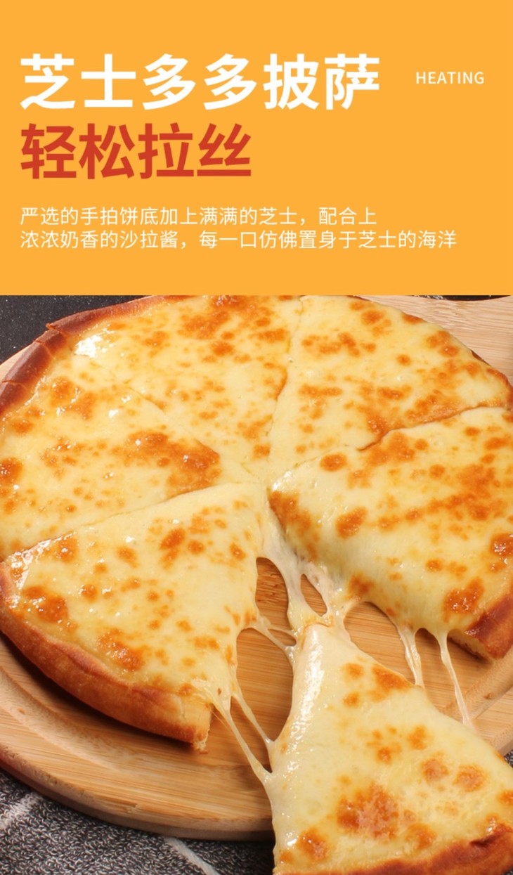 芝士多多披萨:汉帝家的人气爆款,加倍的天然芝士,奶香浓郁,表皮酥软,每一口都是爆炸性的美味体验。