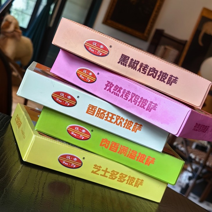 汉帝全家福披萨,想想还是上架吧,虽称不上惊艳的好吃,但在速食里还是水准之上的!夏天不想开火懒得点外卖,就随手取一盒,扔进微波炉或空气炸锅来个几分钟,香甜酥脆,拉丝开吃!