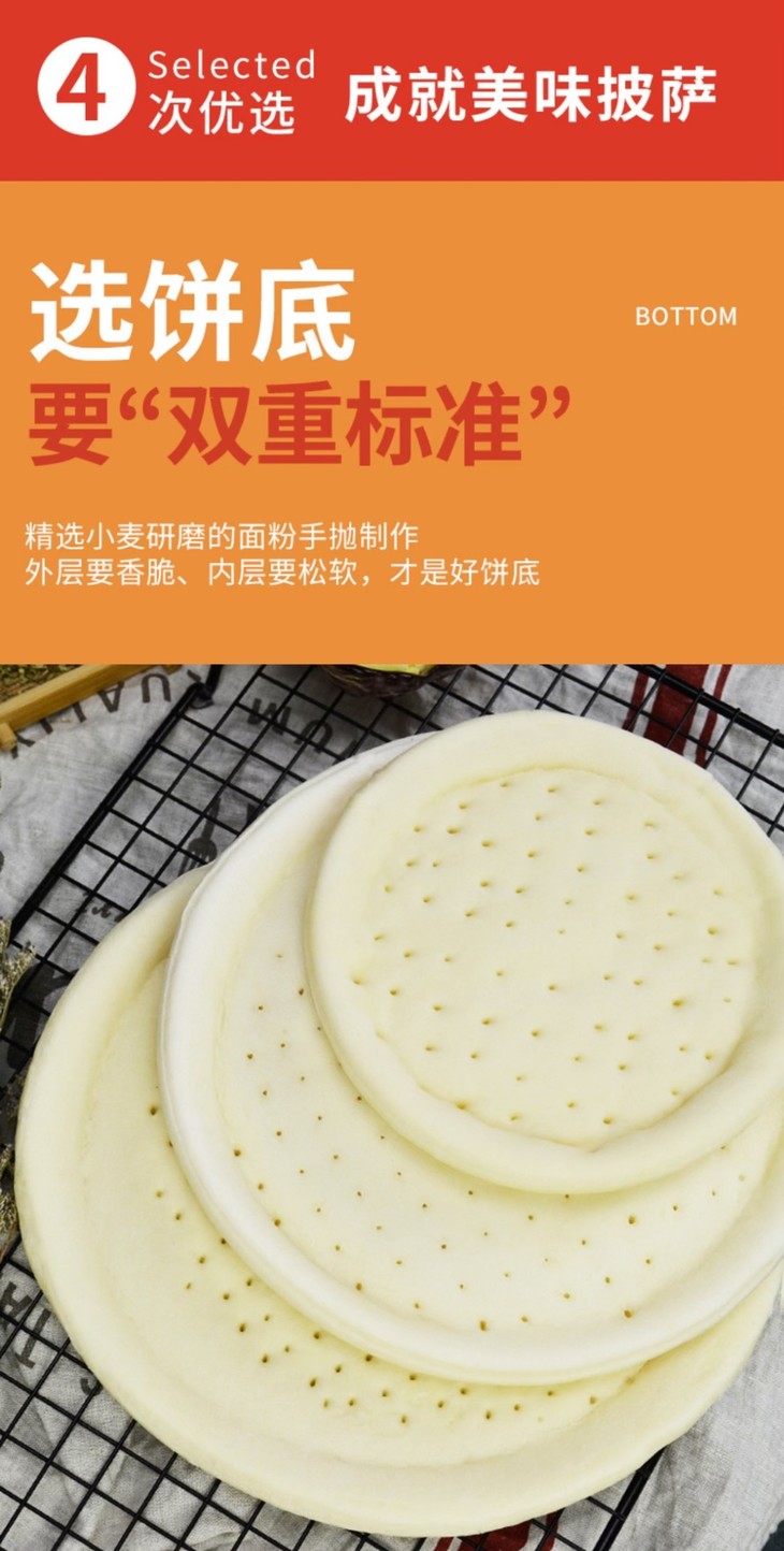 披萨饼底精选小麦面粉,通过手抛制作,使得饼底薄脆可口,外层金黄酥脆,内里松软。同时,为了让每一口都有满满菜肉,品牌更是精选优质牛肉、鸡肉、培根和青豆等新鲜原料,以及源自新西兰的安佳马苏里拉芝士,好食材哦!