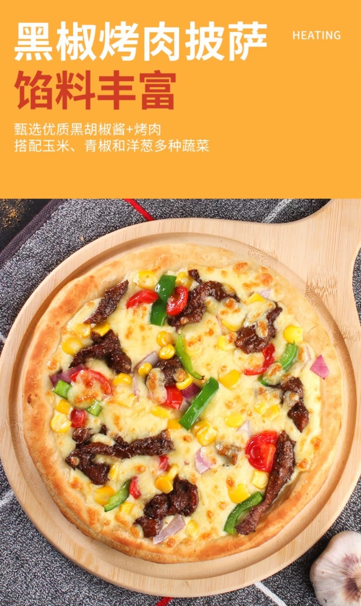 黑椒烤肉披萨:外皮金黄酥脆,内里丰满鲜嫩,闭着眼睛也能满足你的味蕾,忍不住一口接一口哦!