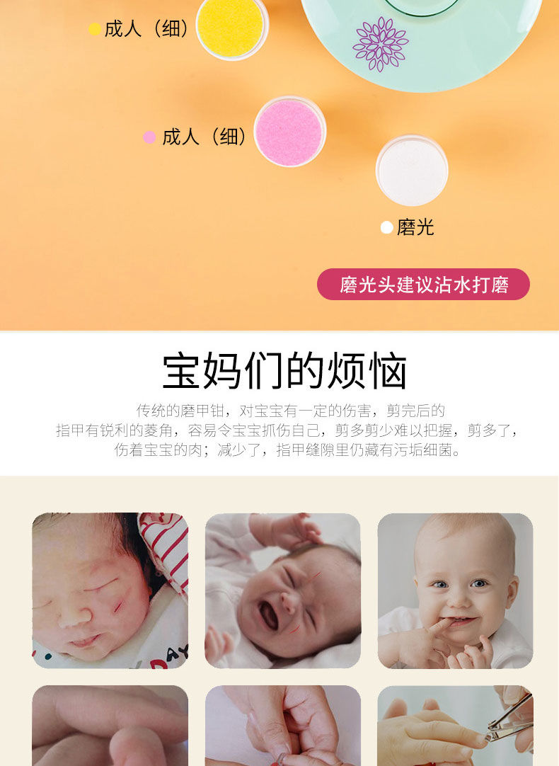 电动修甲器 婴儿儿童磨指甲器宝宝指甲钳修甲神器女士婴儿磨甲器