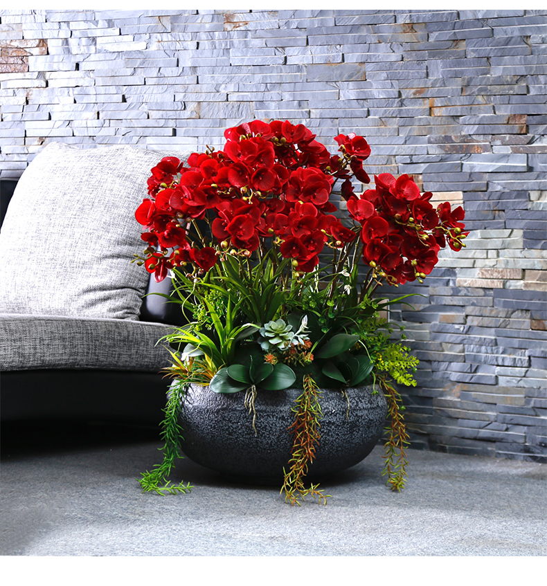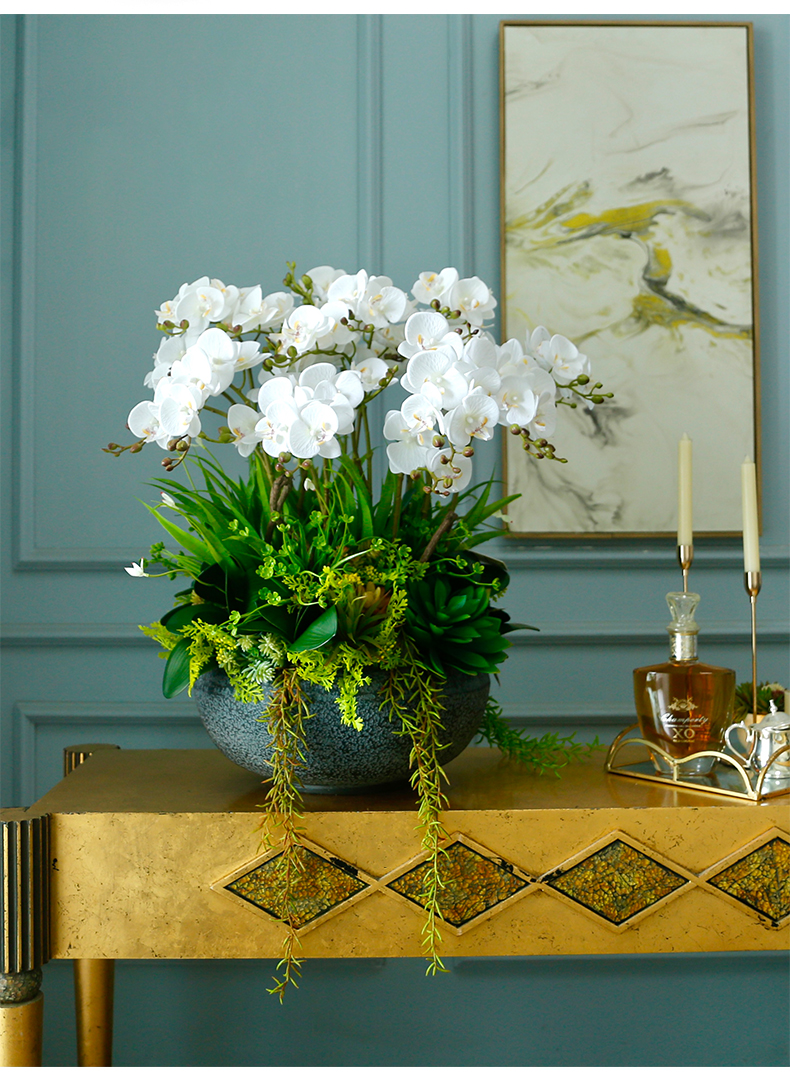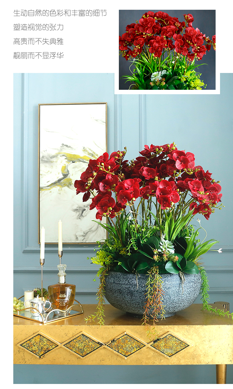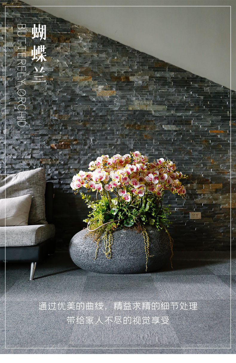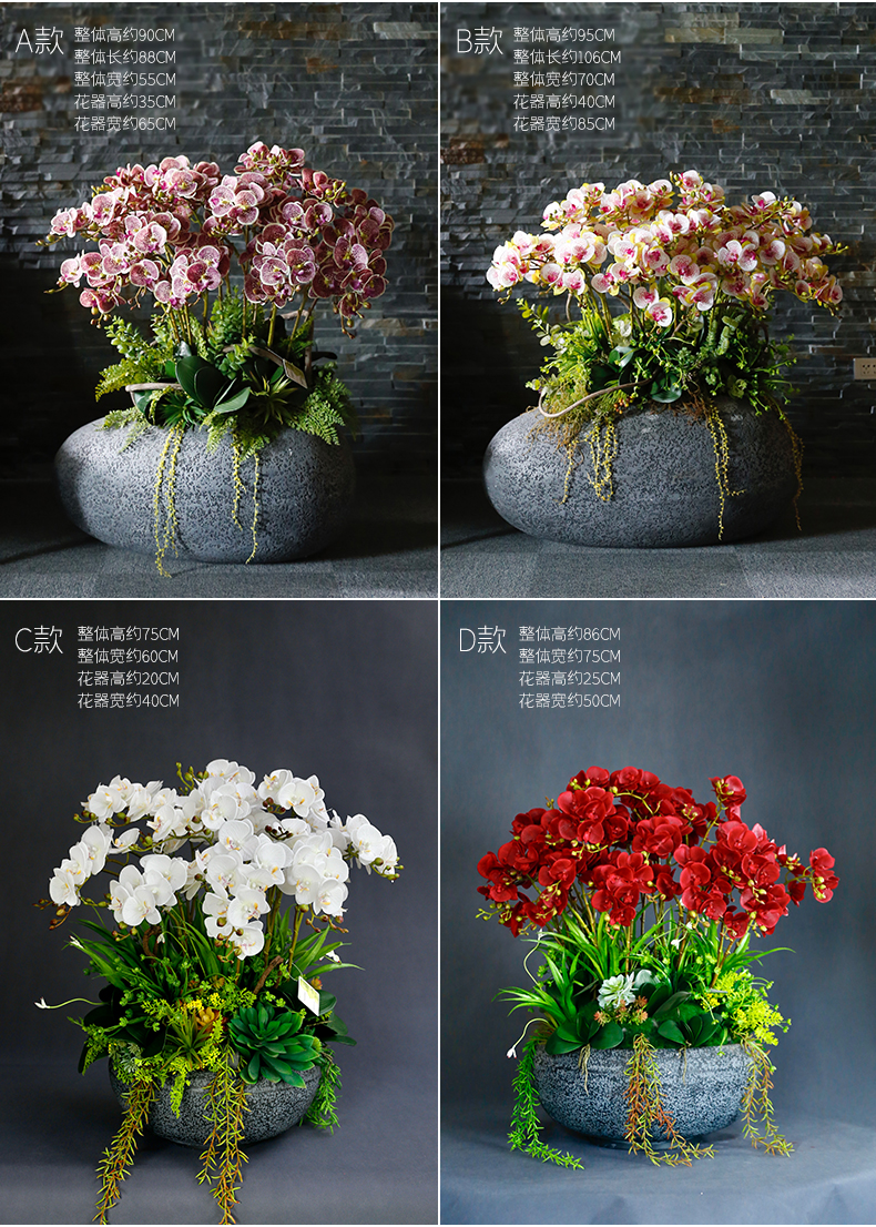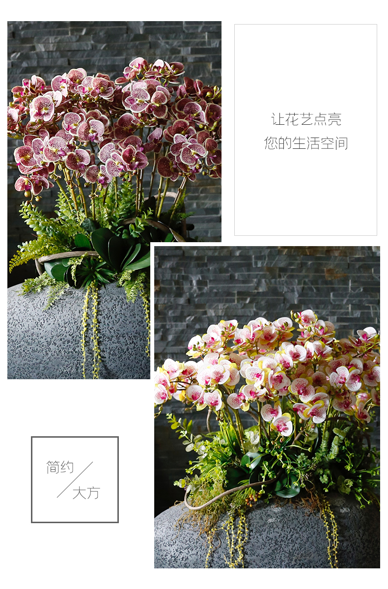 高档大型蝴蝶兰仿真花落地摆件酒店别墅大堂前台客厅装饰摆设假花