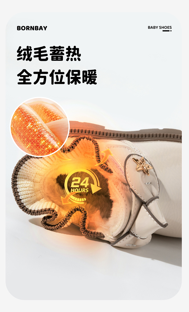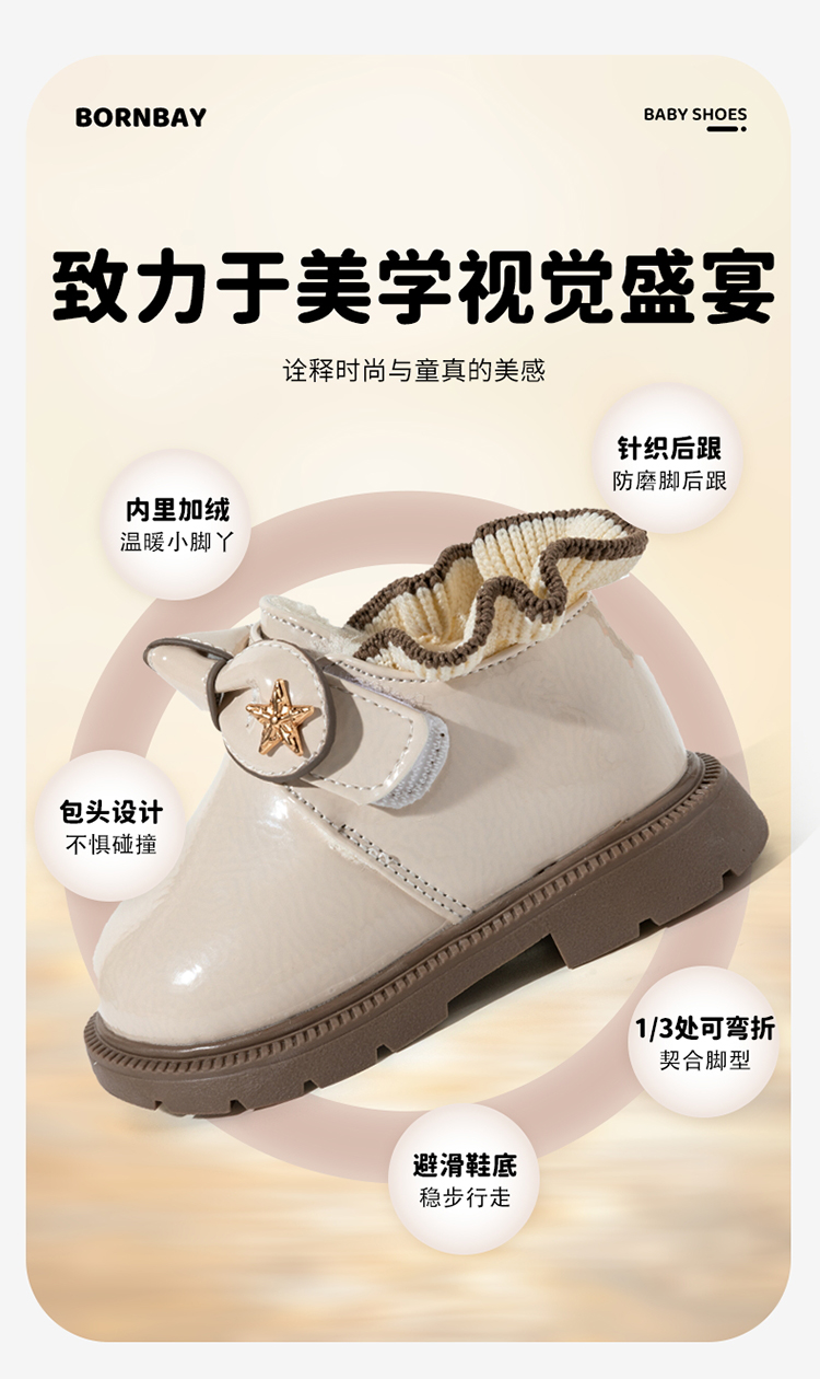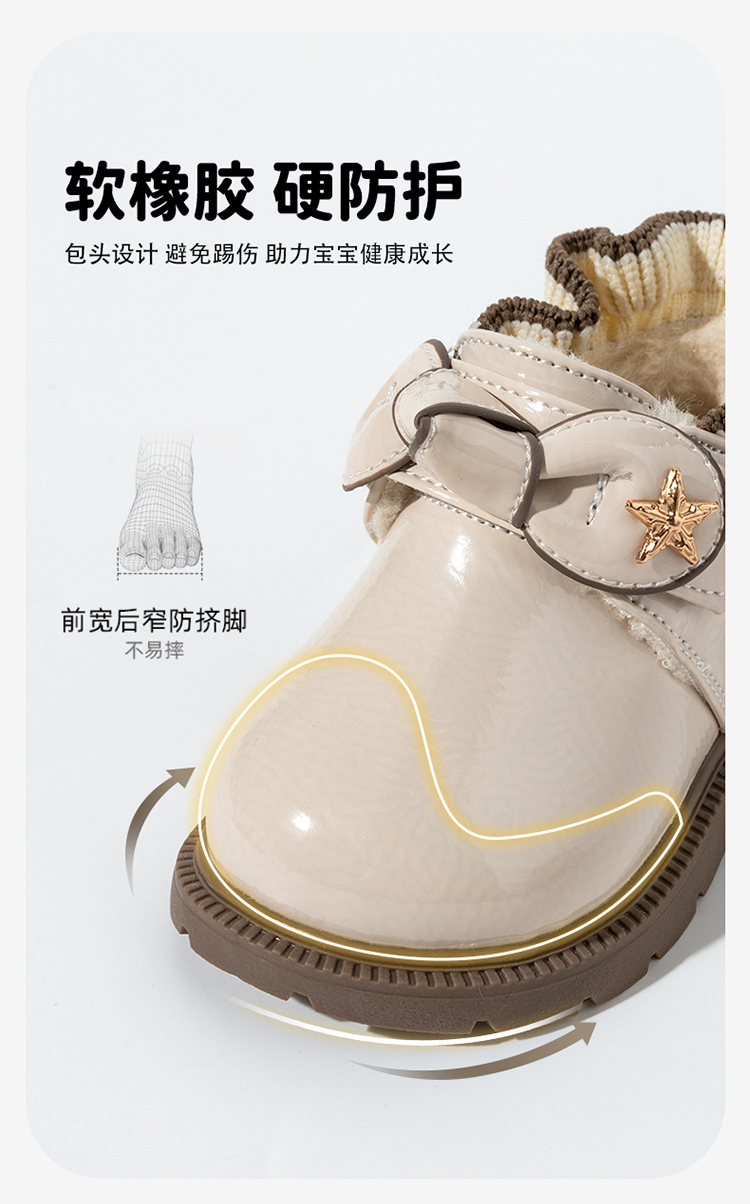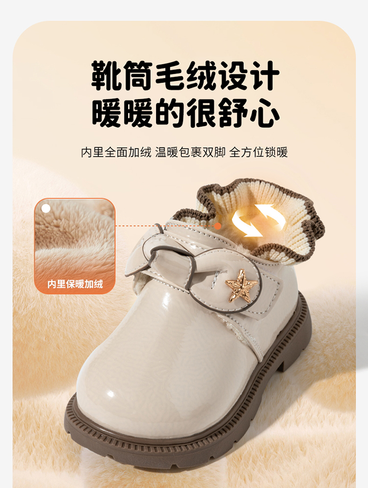 【加绒保暖】贝贝怡24秋冬新款女童皮鞋低帮学步鞋柔软轻便休闲鞋童鞋ZB4DX020