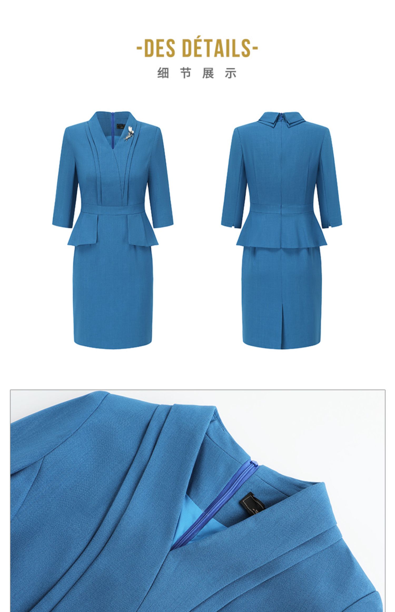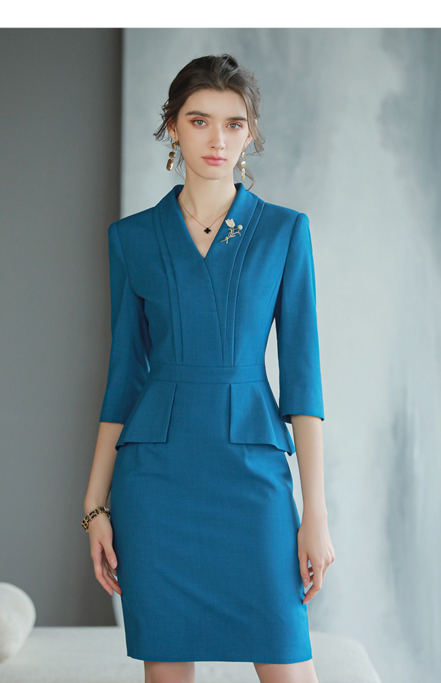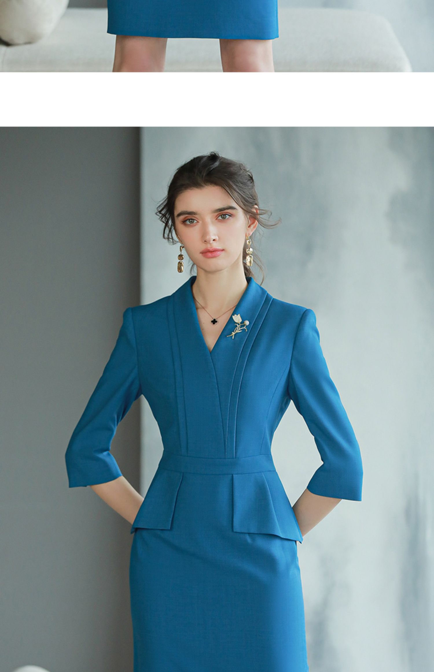 AD靛蓝色西装连衣裙新款气质工作服套装裙酒店前台经理正装