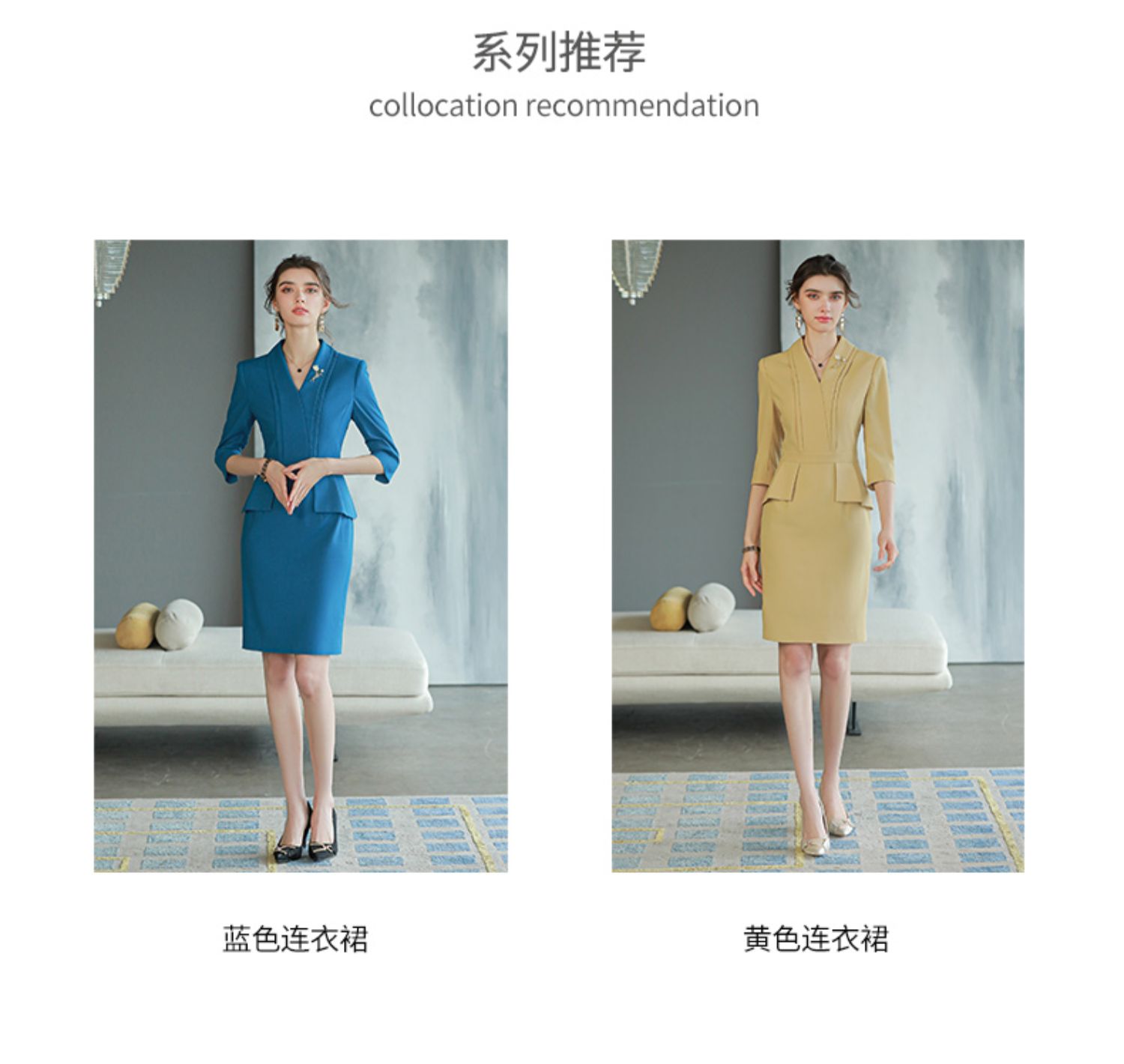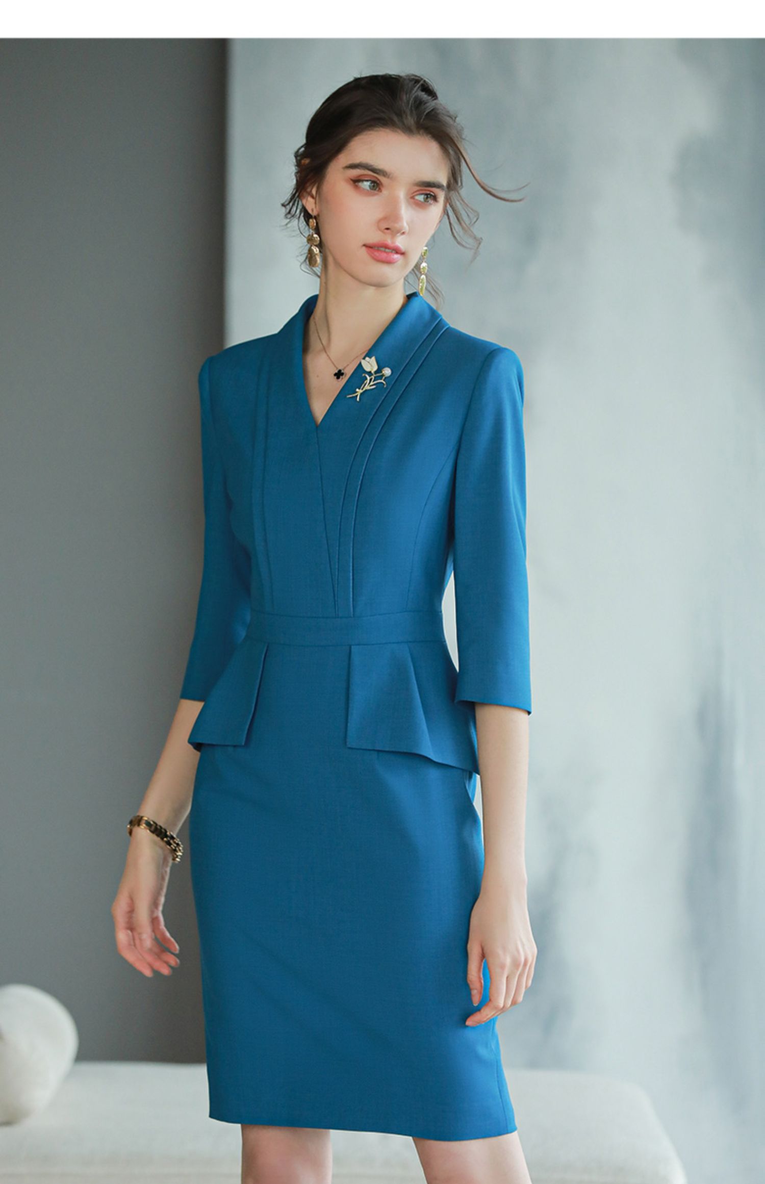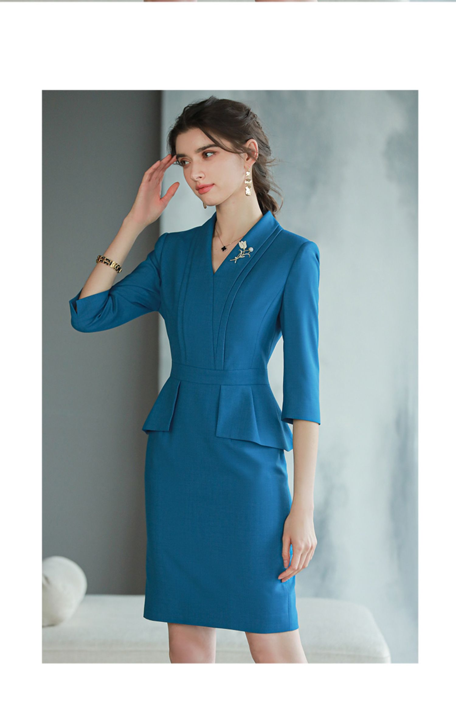 AD靛蓝色西装连衣裙新款气质工作服套装裙酒店前台经理正装