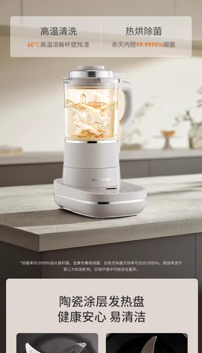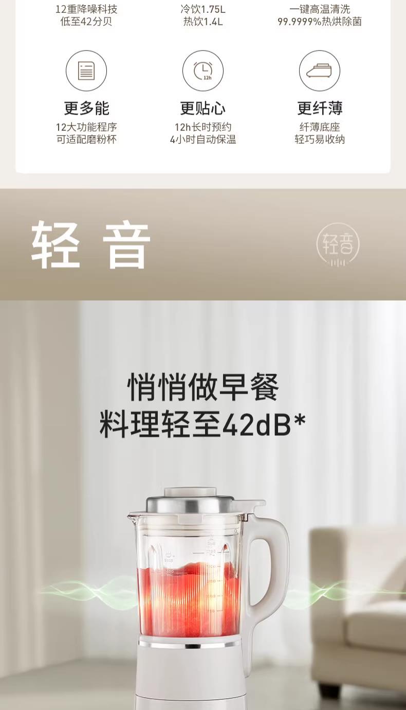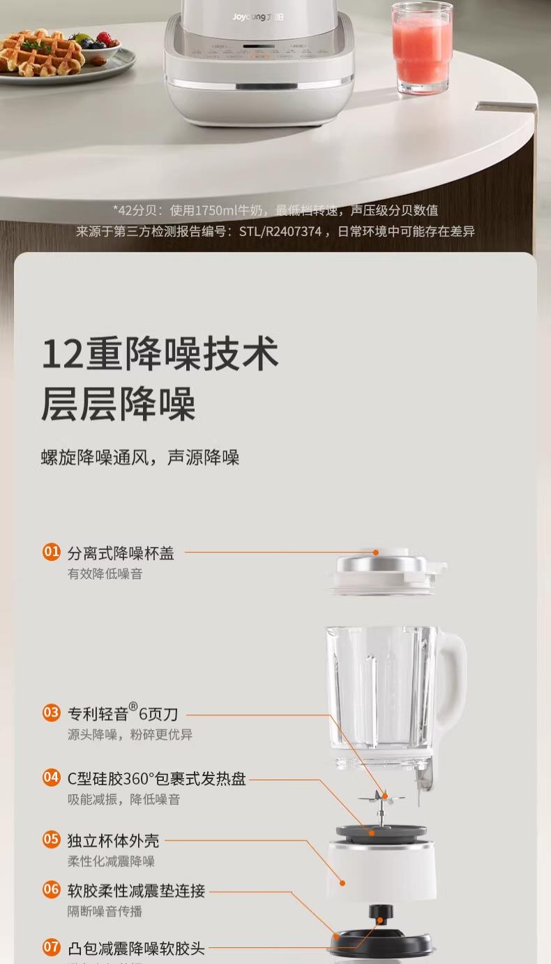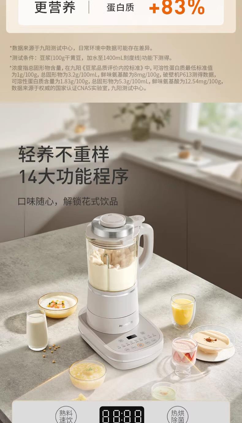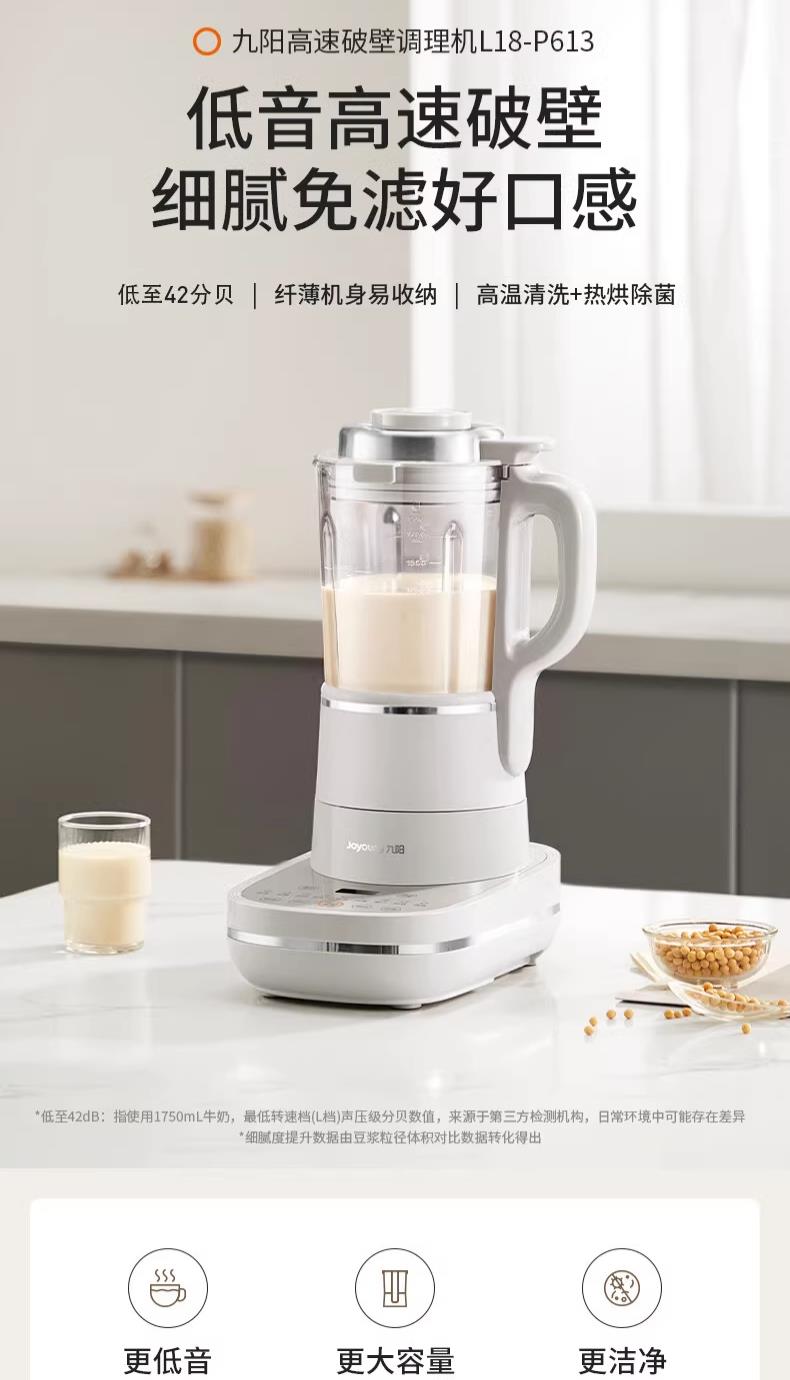 九阳低音破壁机家用免滤豆浆机1.75L大容量多功能智能预约料理机
