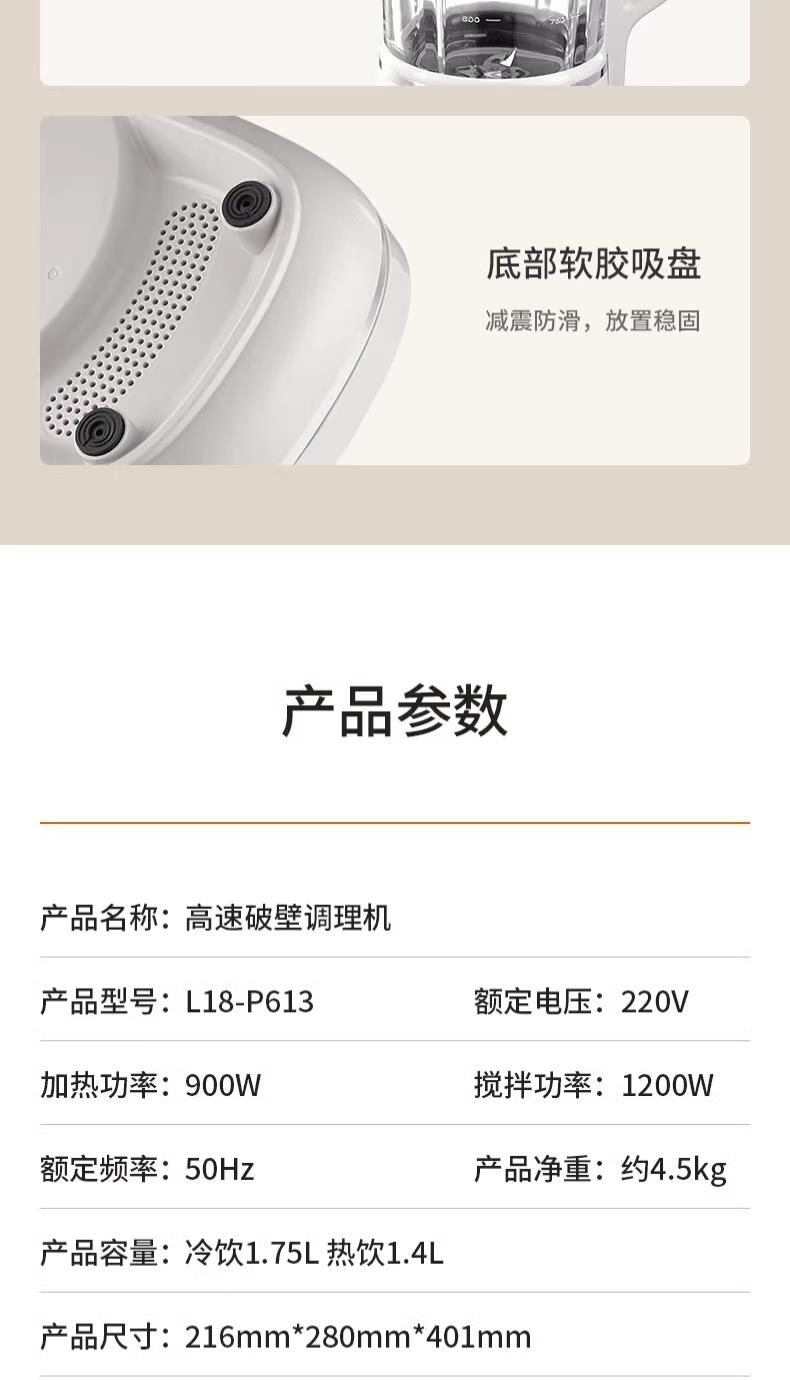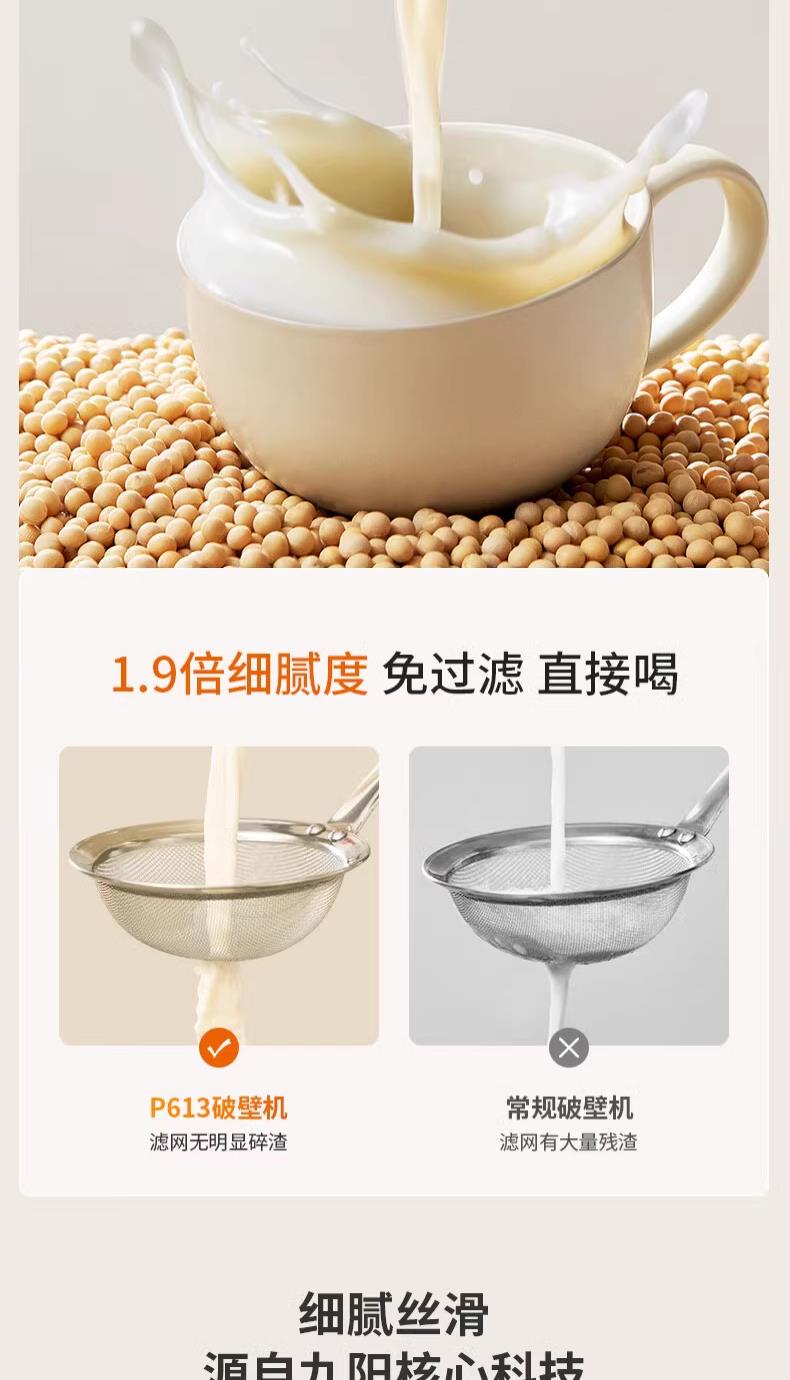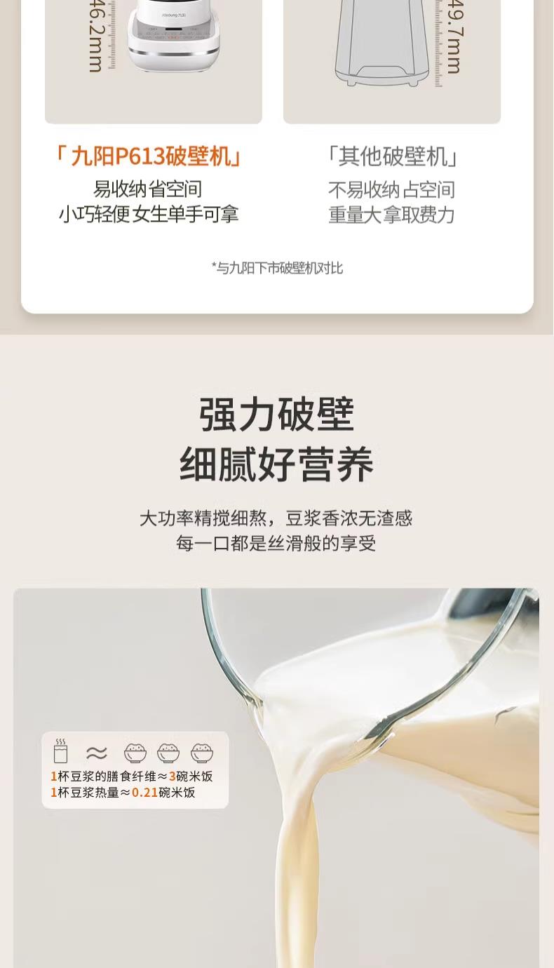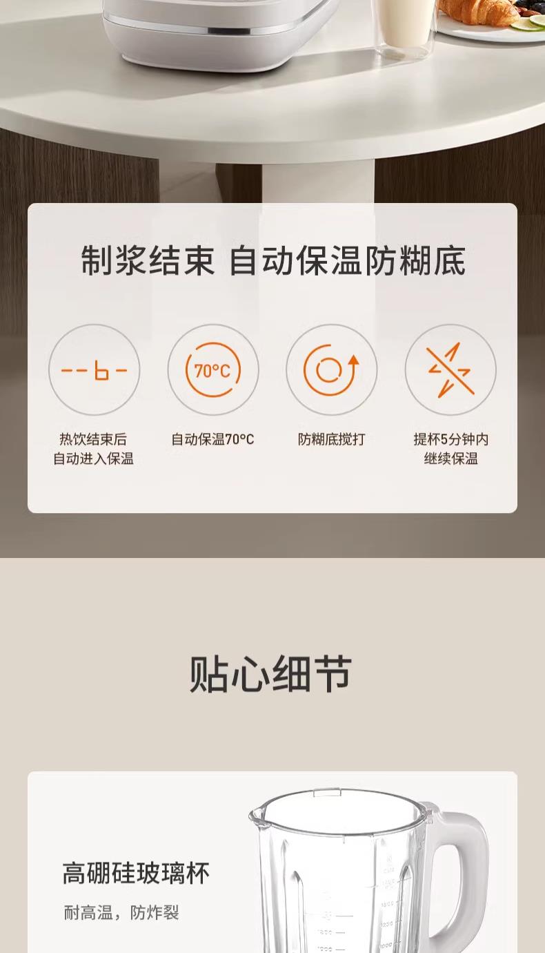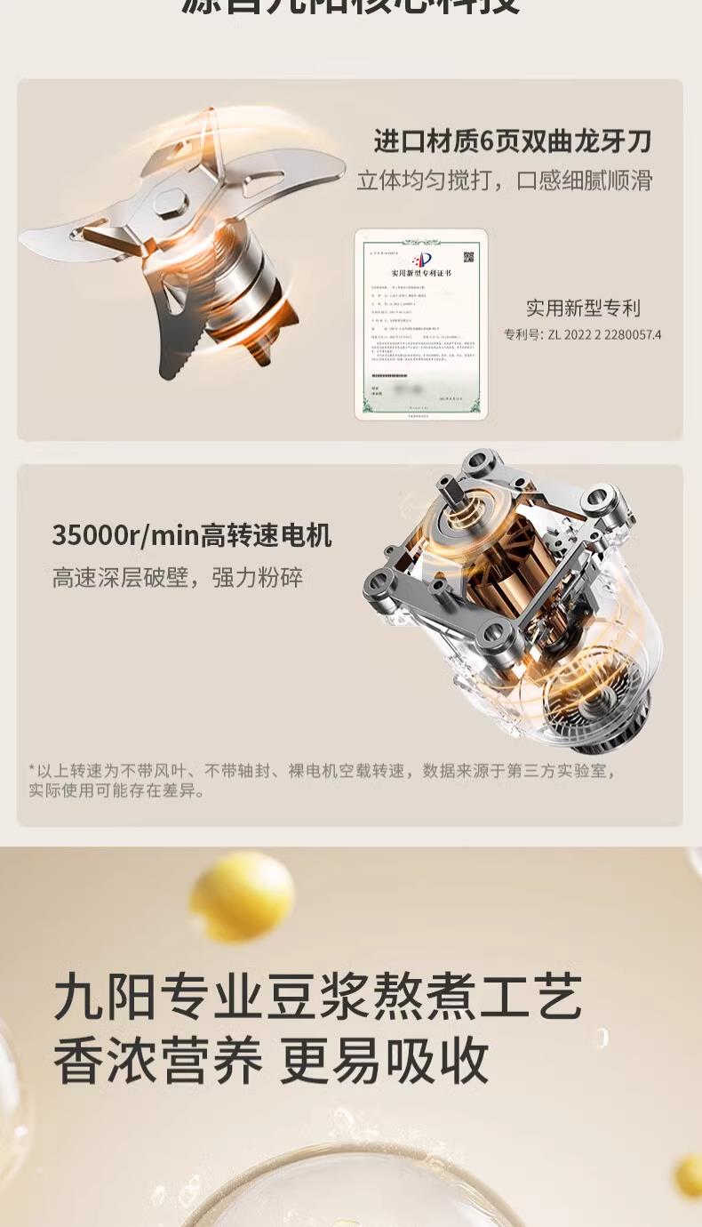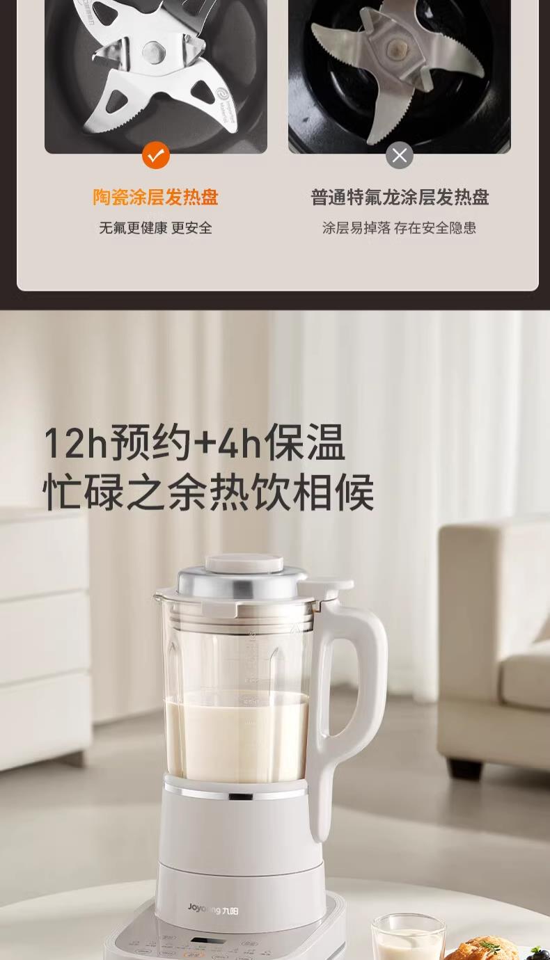 九阳低音破壁机家用免滤豆浆机1.75L大容量多功能智能预约料理机