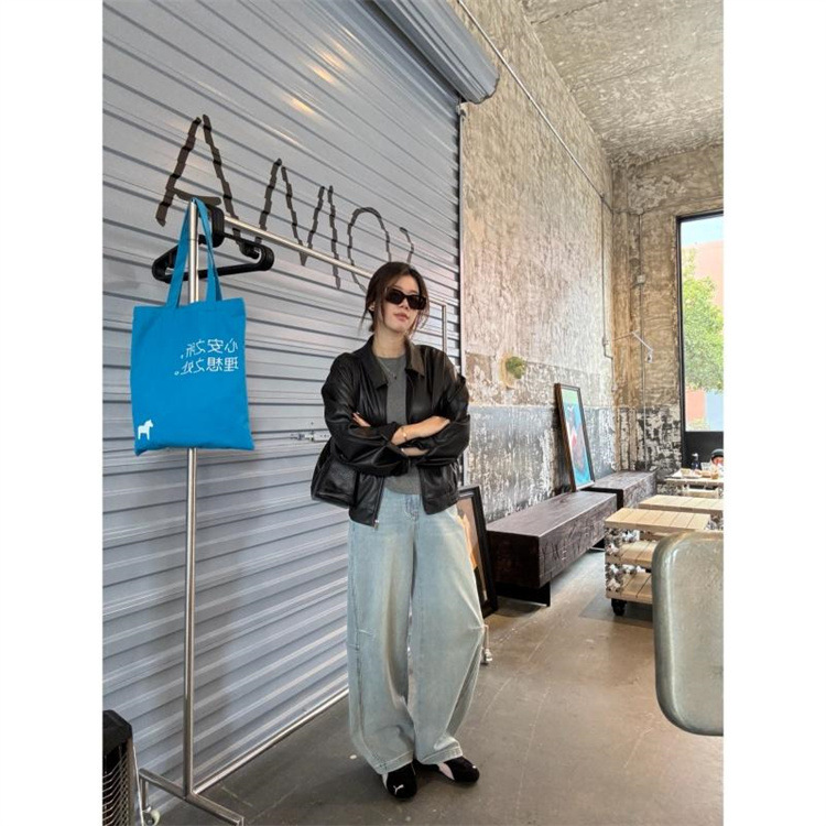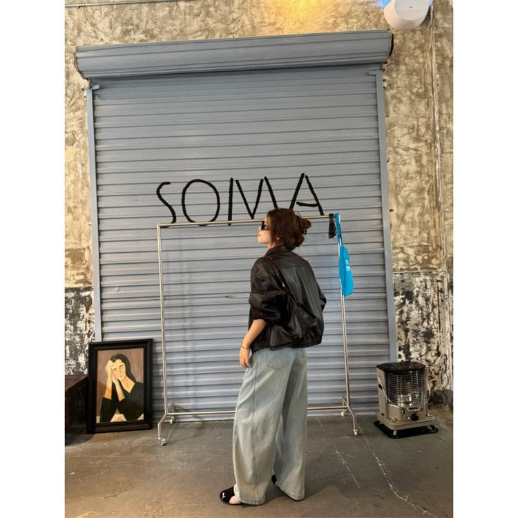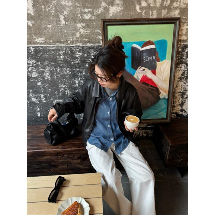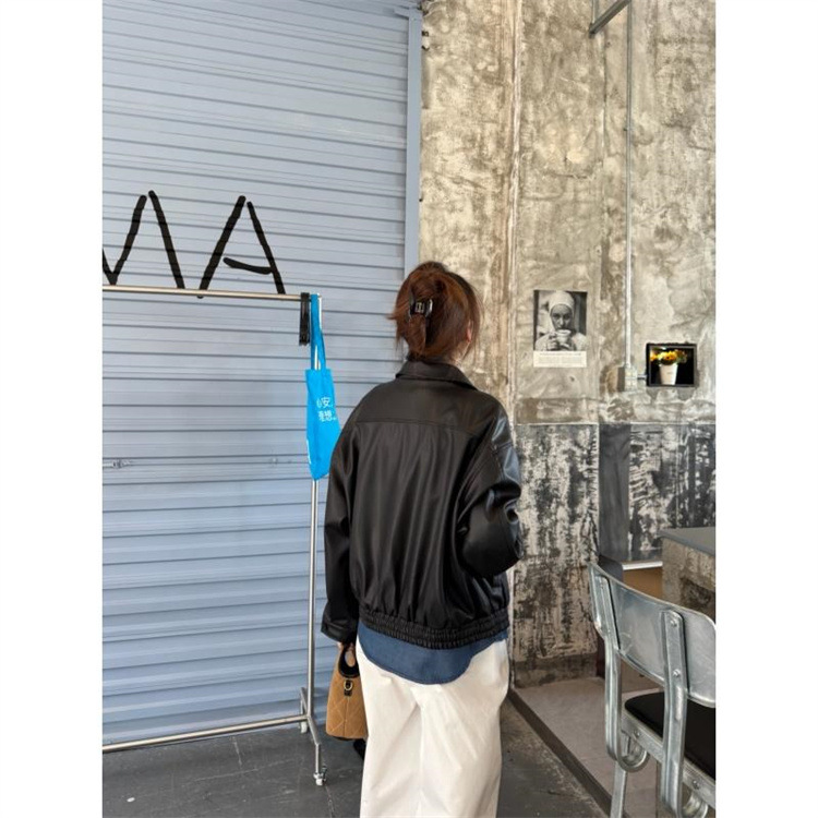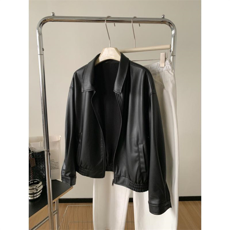 复古黑色酷飒风休闲皮衣!女款2026新款显瘦百搭翻领皮夹克小个子外套!